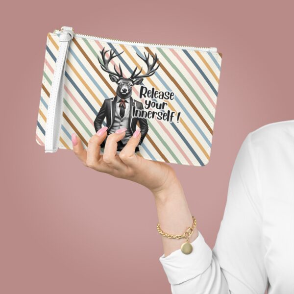 Las influencias de la bolsa de motivación y el bolso de mano de ciervo le confieren una identidad visual tranquila y reflexiva.