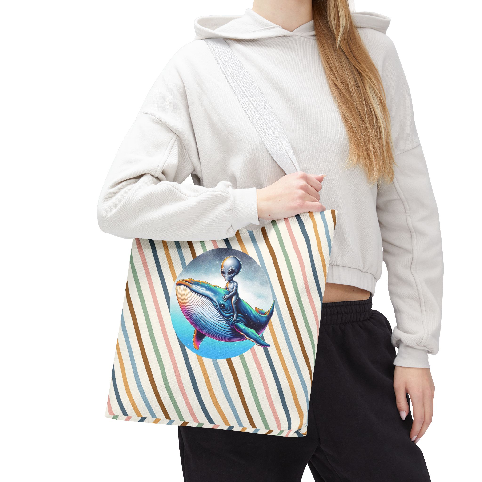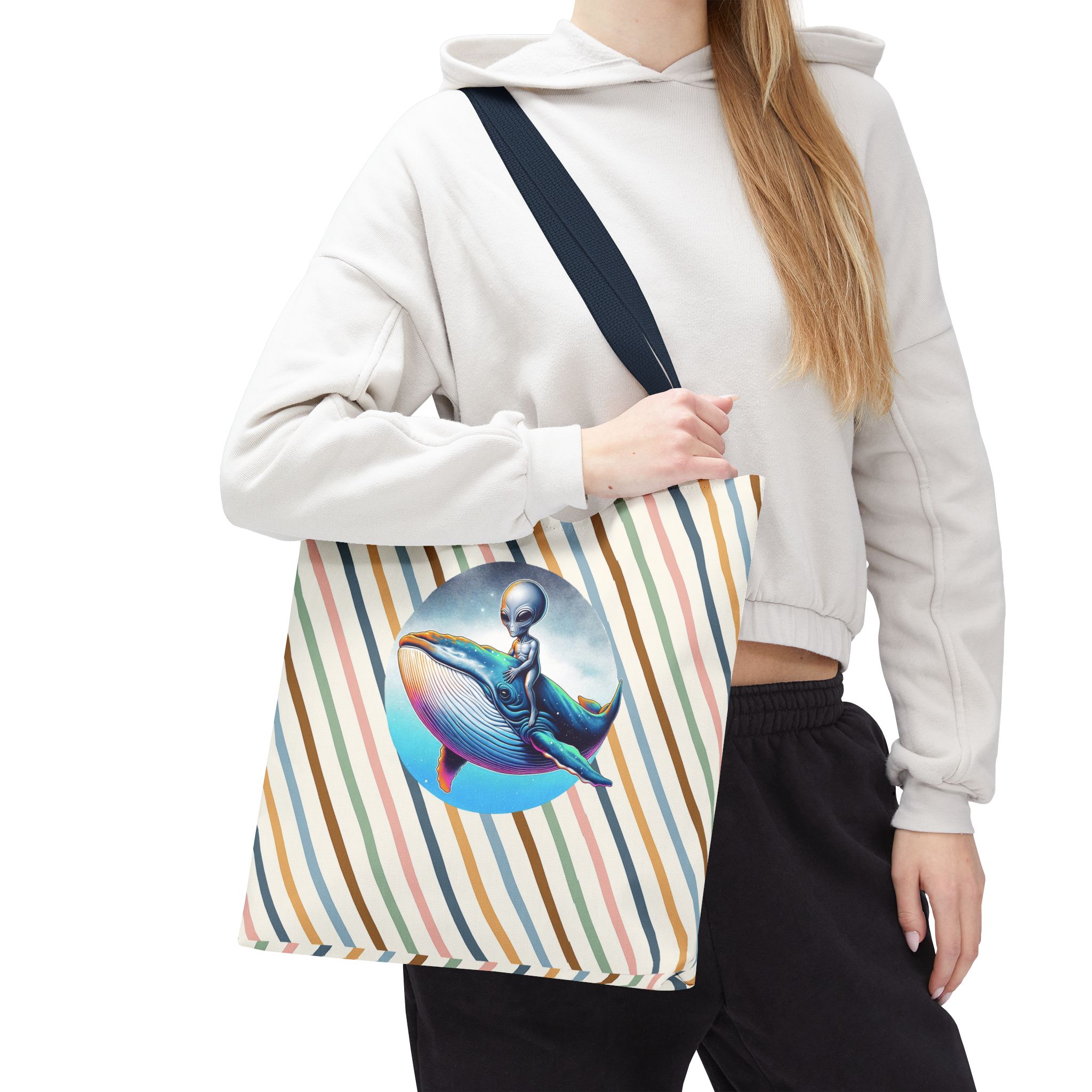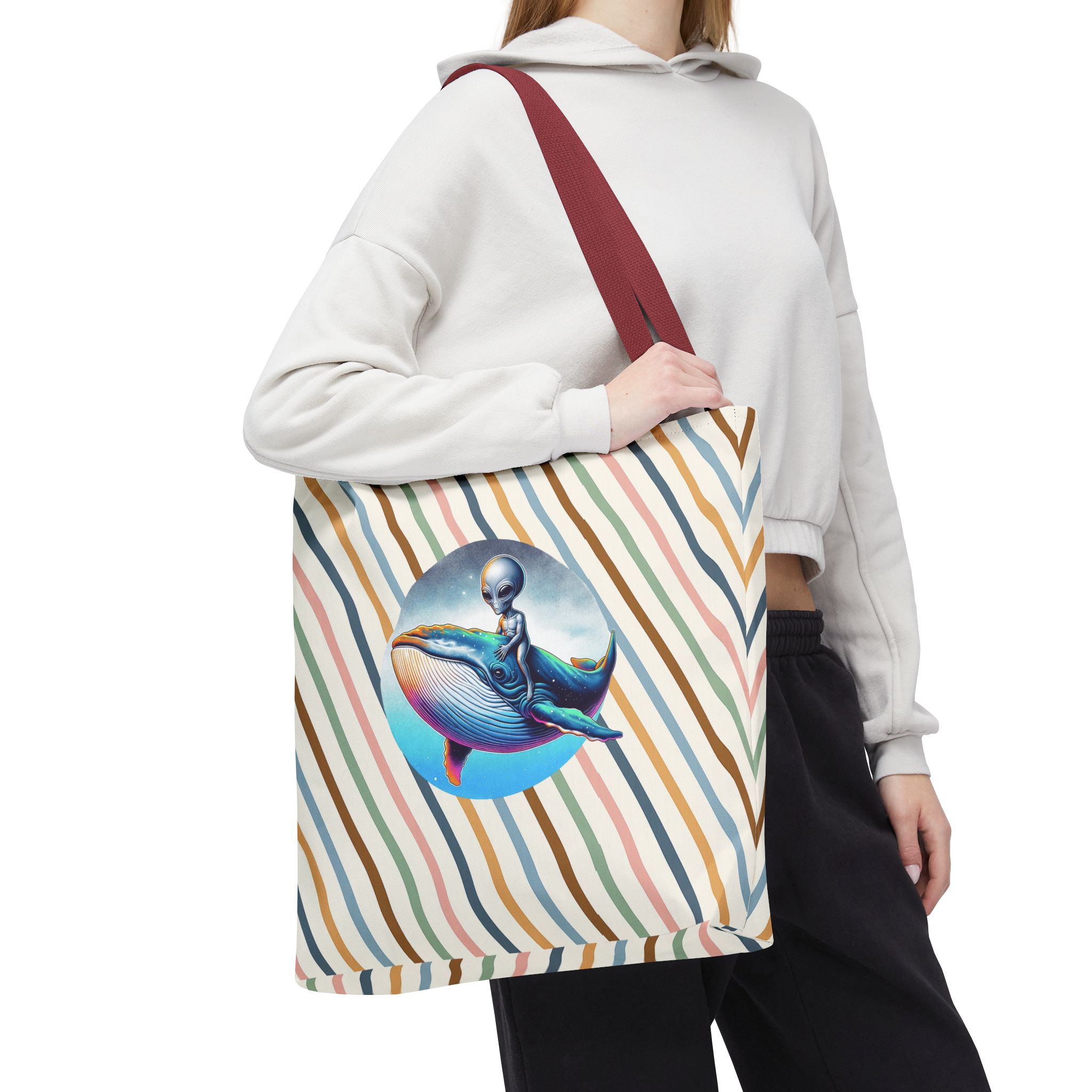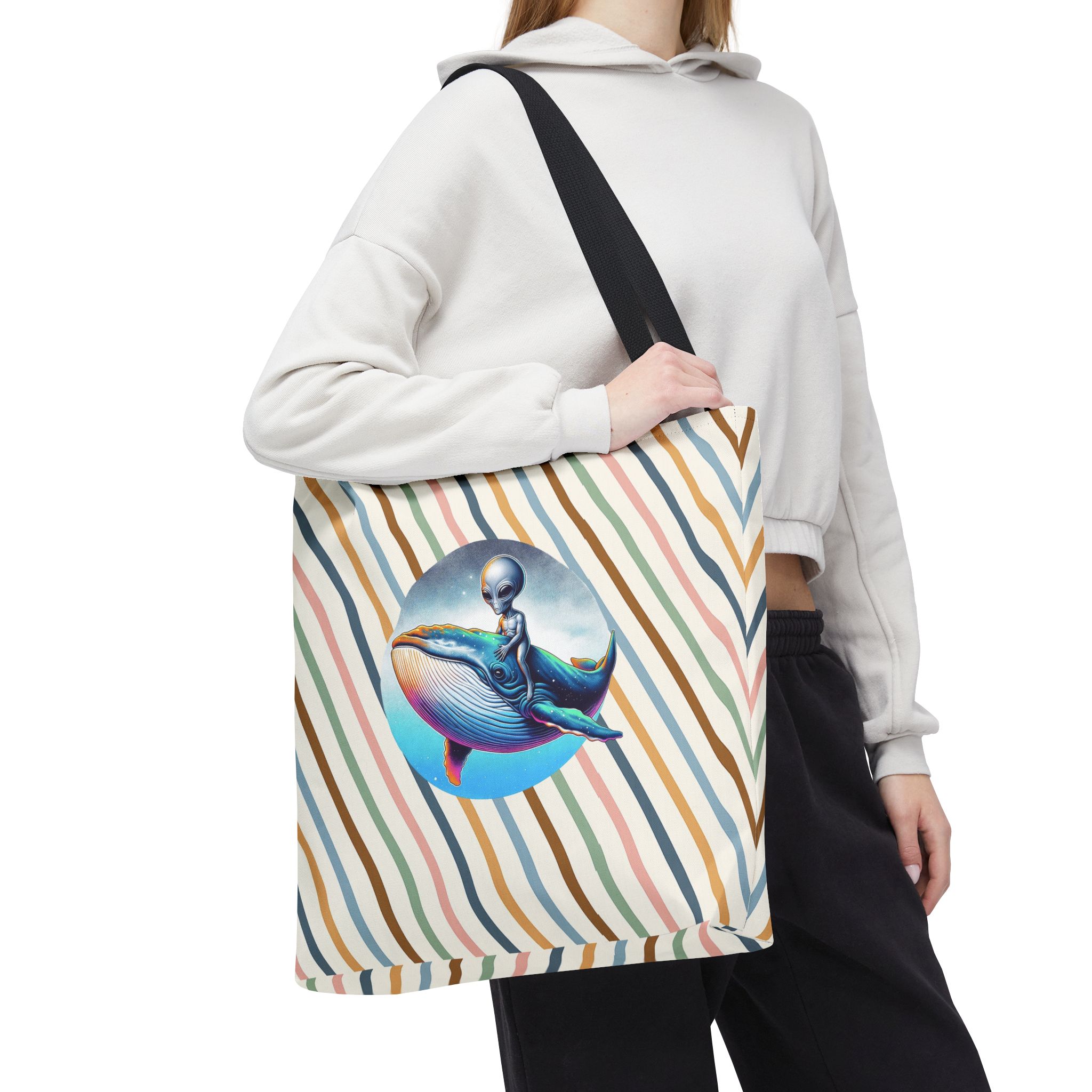 Alien shopping tote bag alien extraterrestrial whale fantasy funny retro cosmic vintage tote