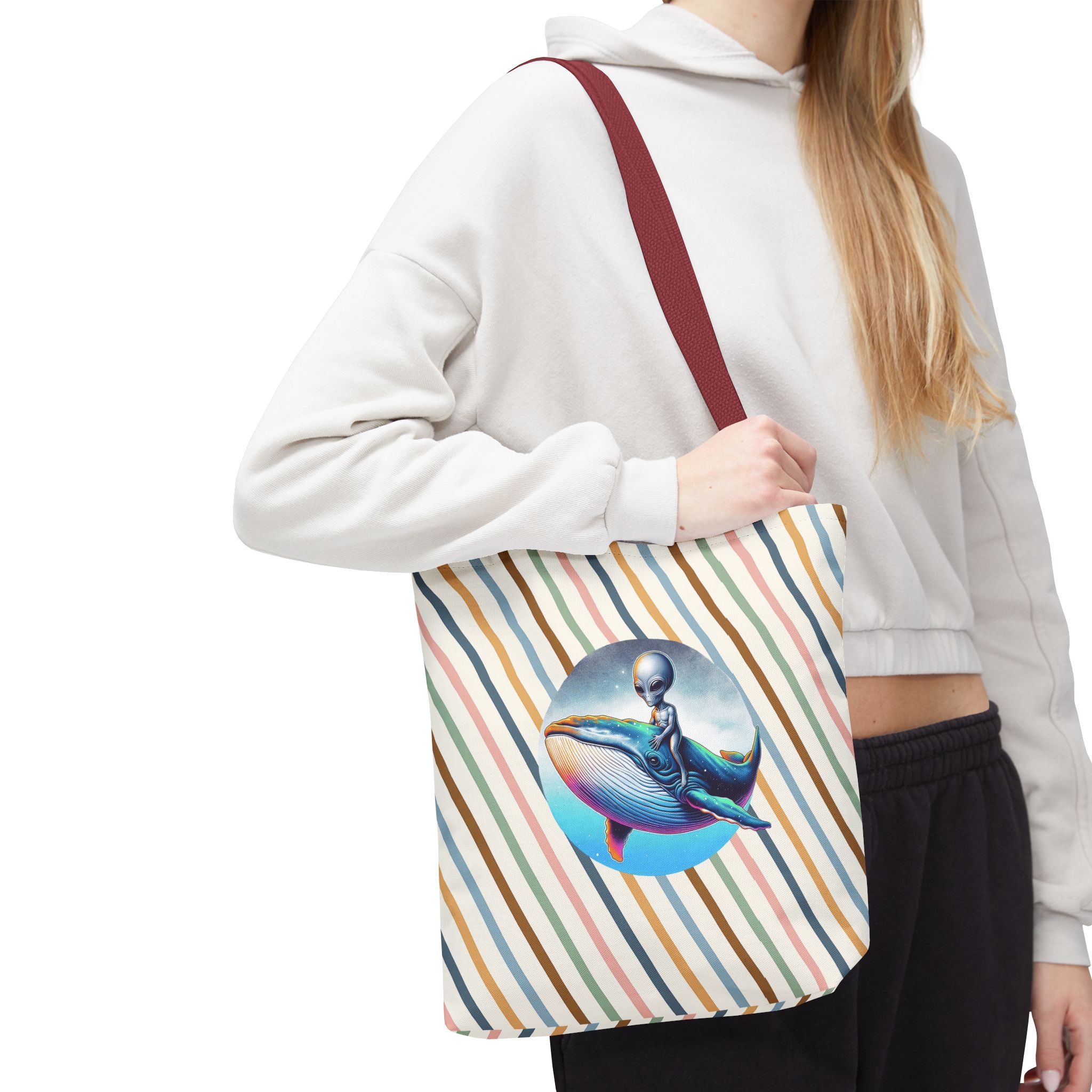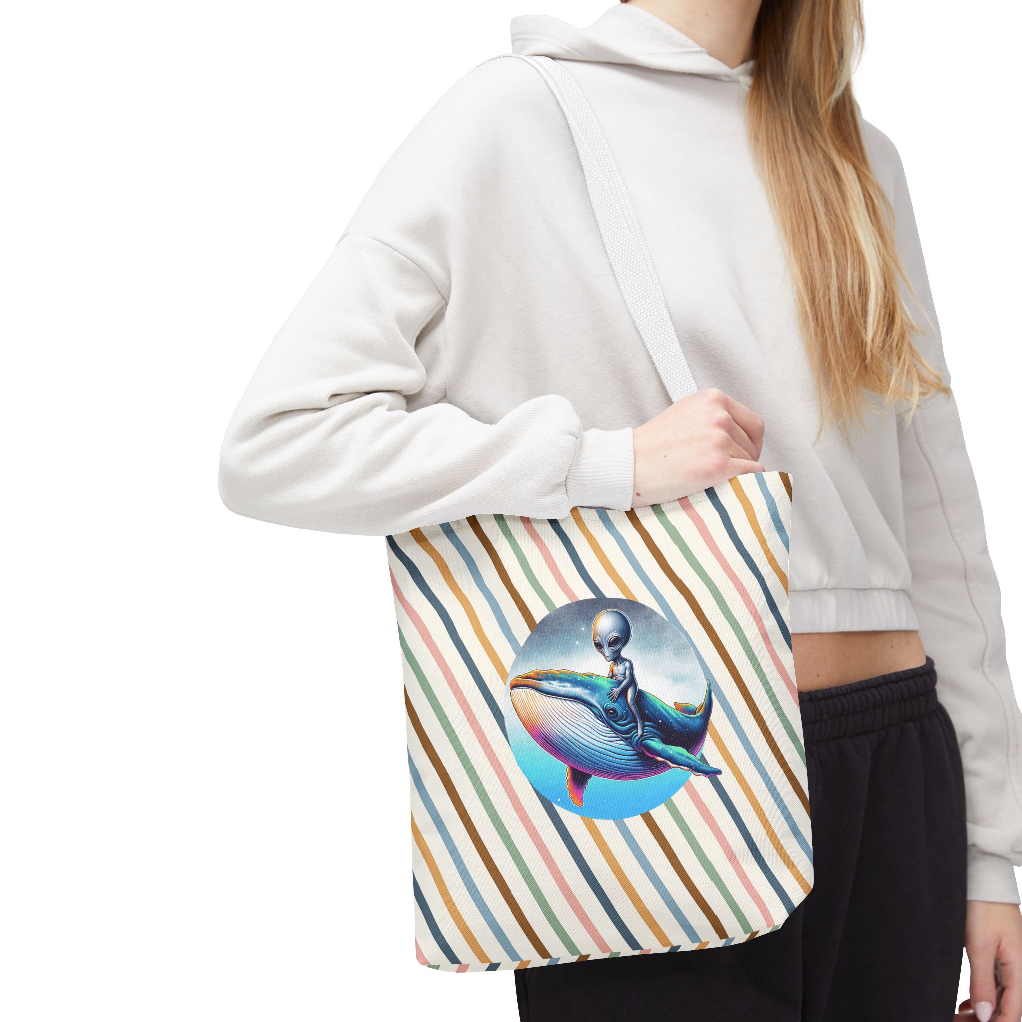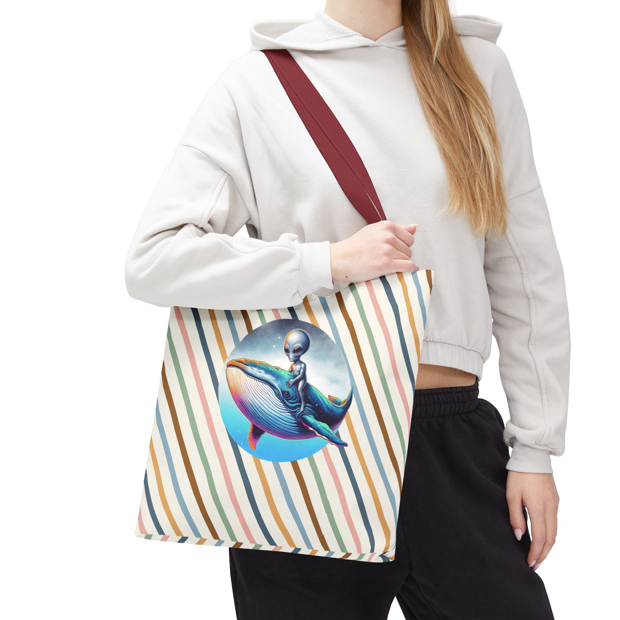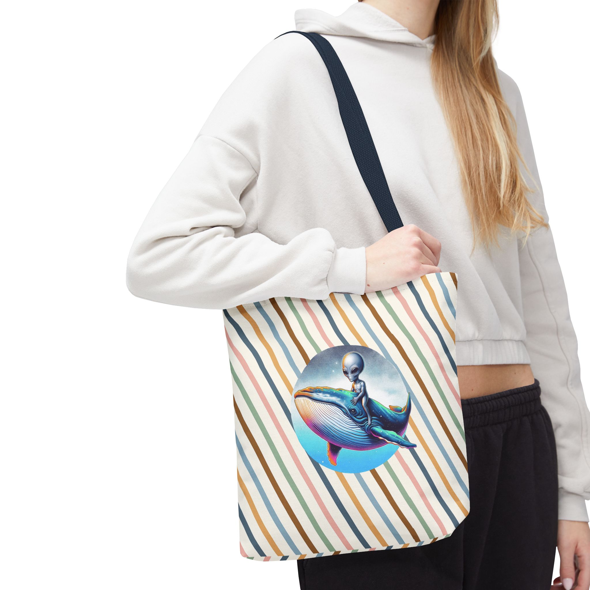 Alien shopping tote bag alien extraterrestrial whale fantasy funny retro cosmic vintage tote