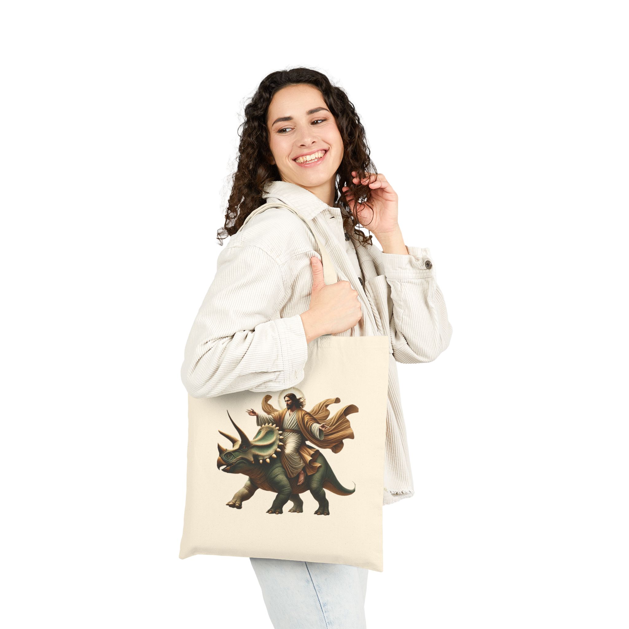 This Jesus and Dinosaur will appeal to those who see Jesus With Dinosaur and sarcastic tote bag as part of what defines their personal style.