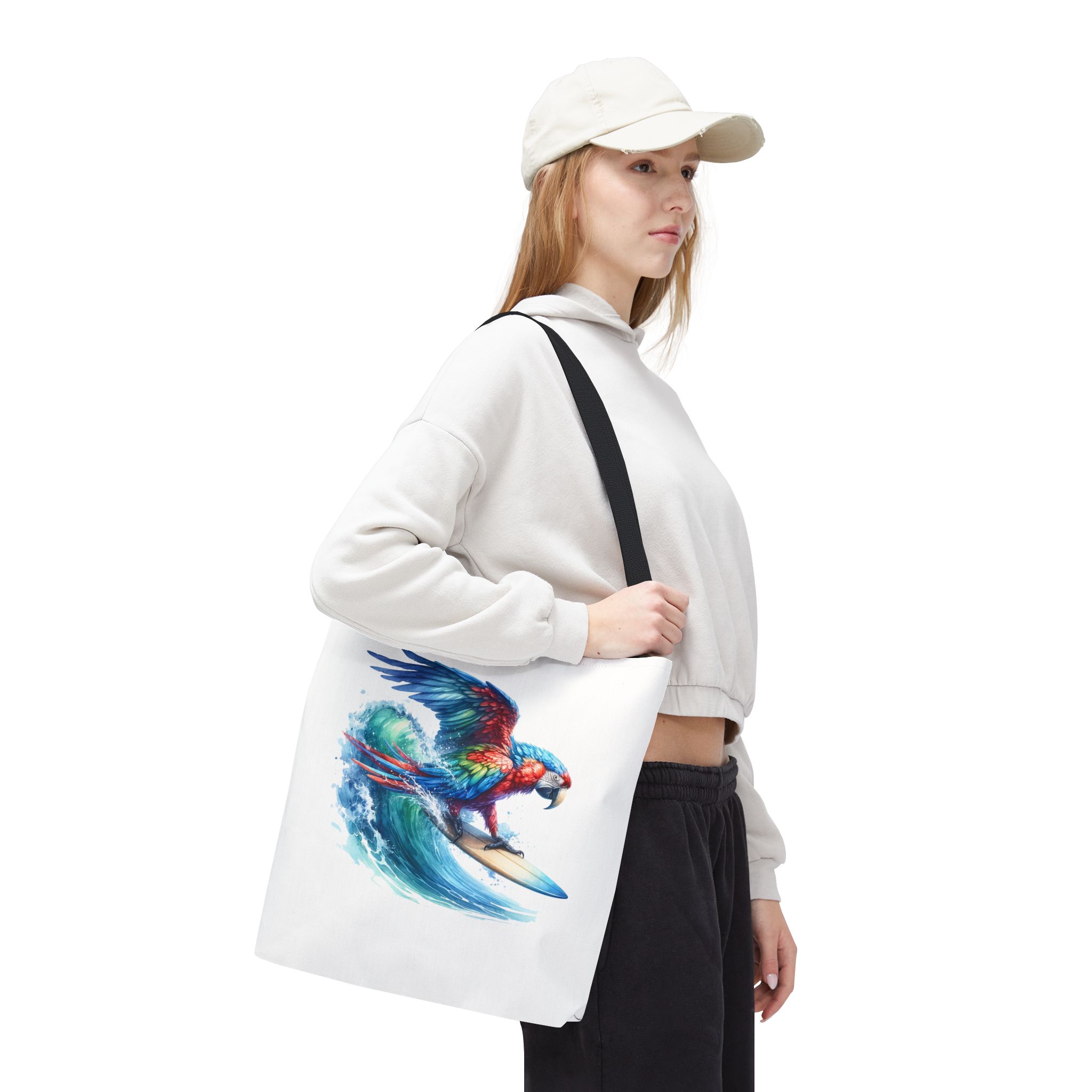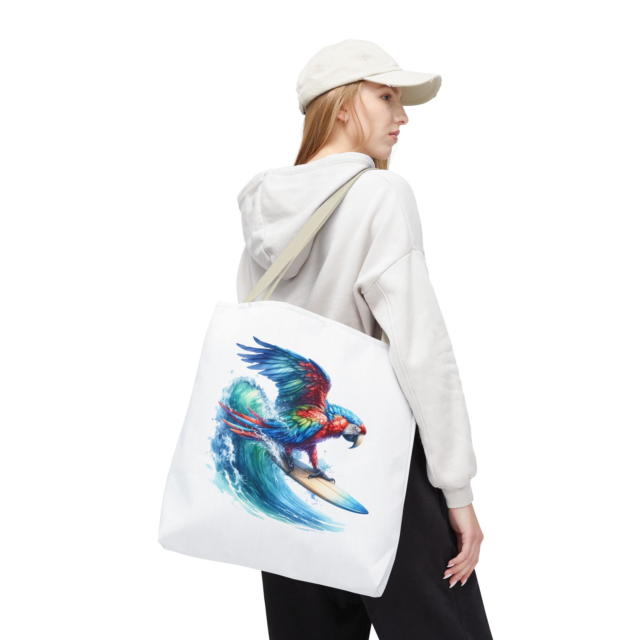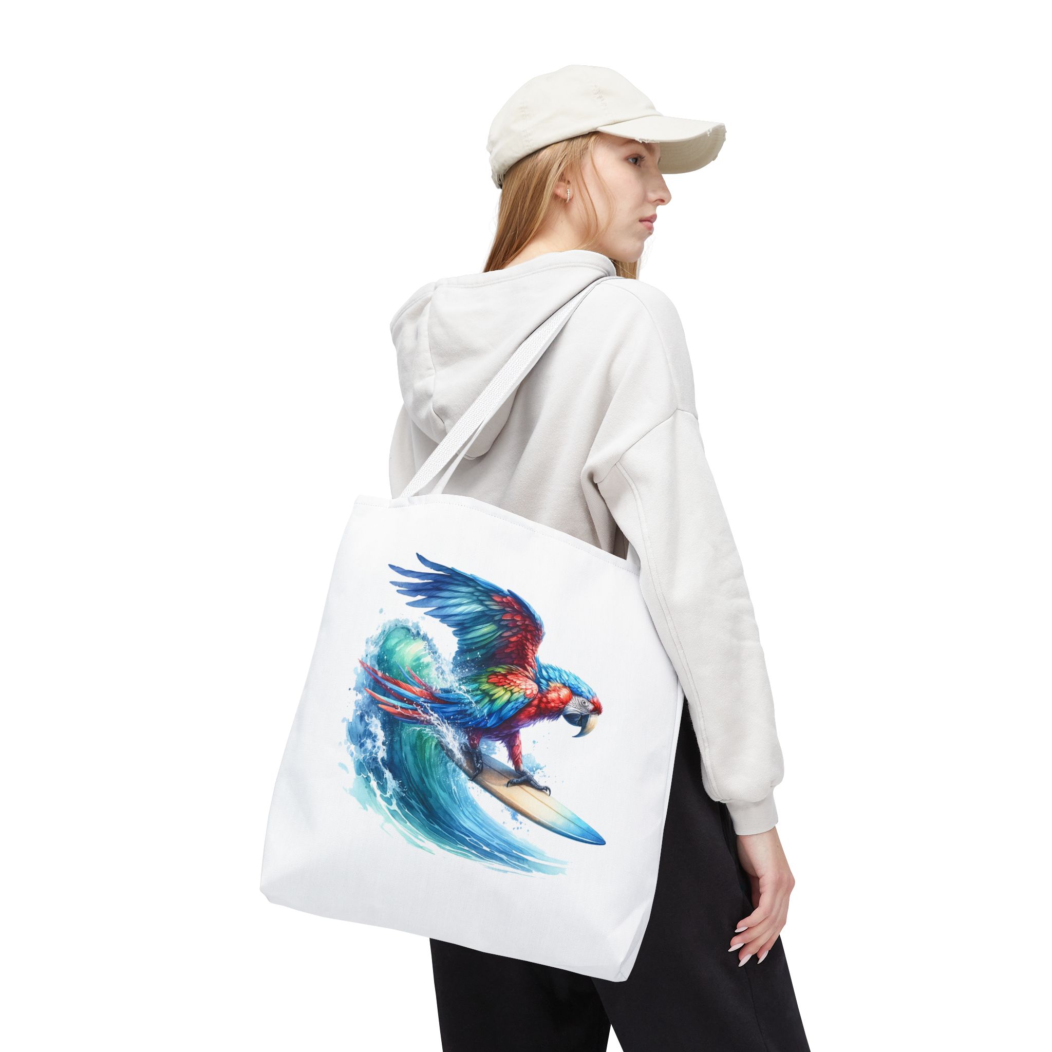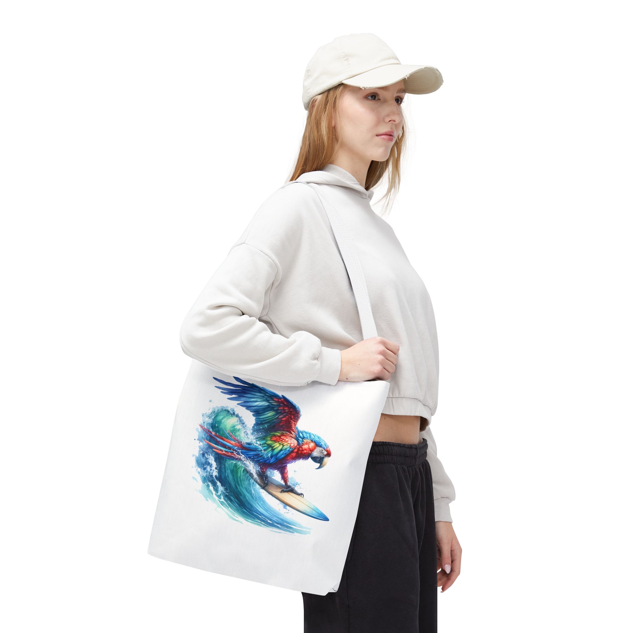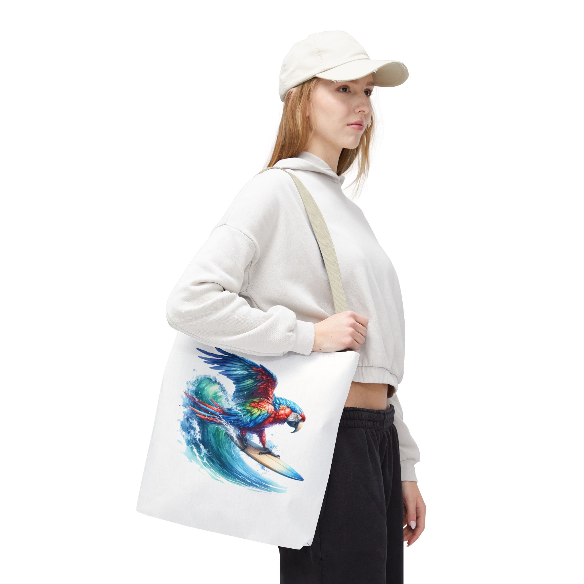 Parrot funny tote bag surf cute tote bag boho Bird surfer canvas tote bag gift for her free spirit shoulder bag cool handbag