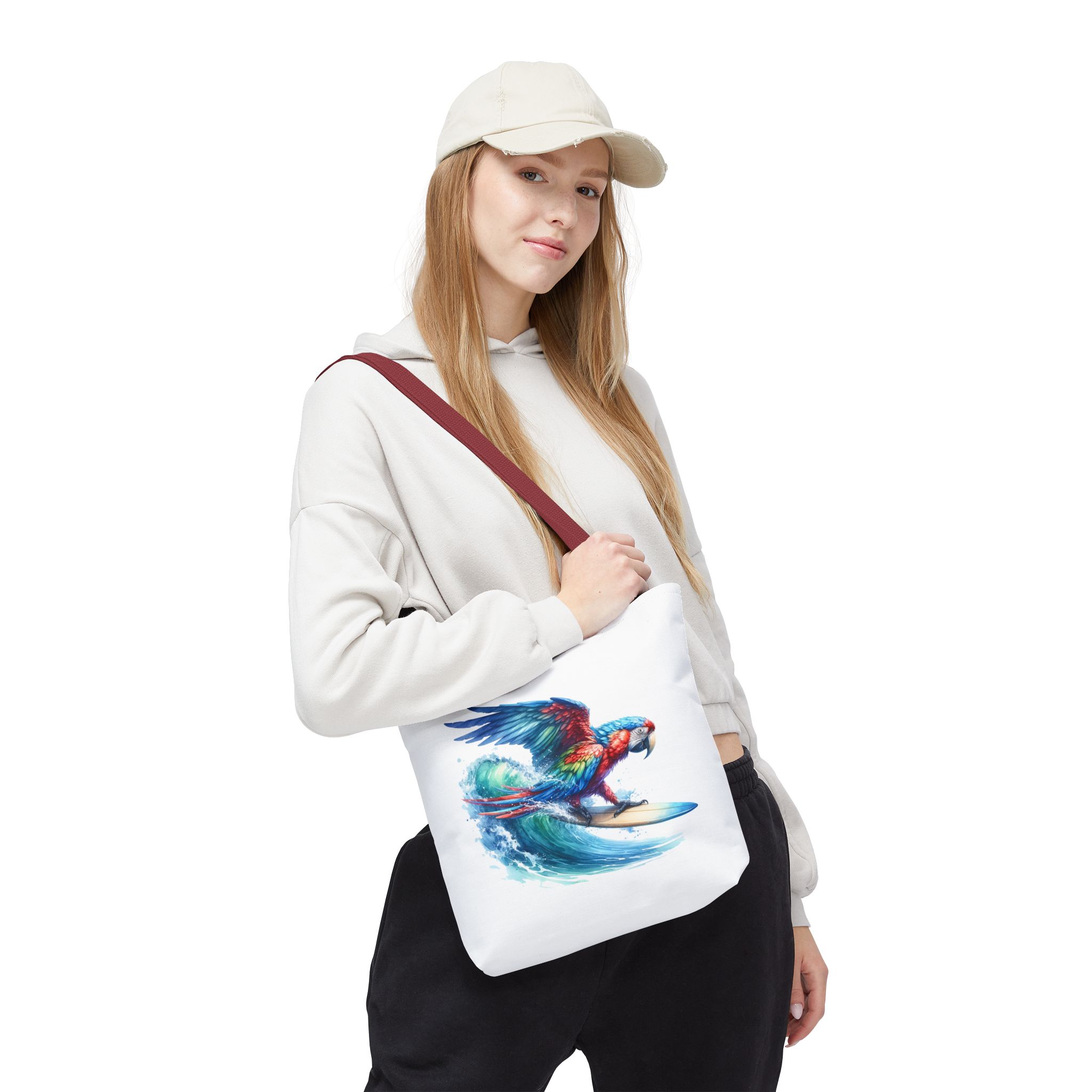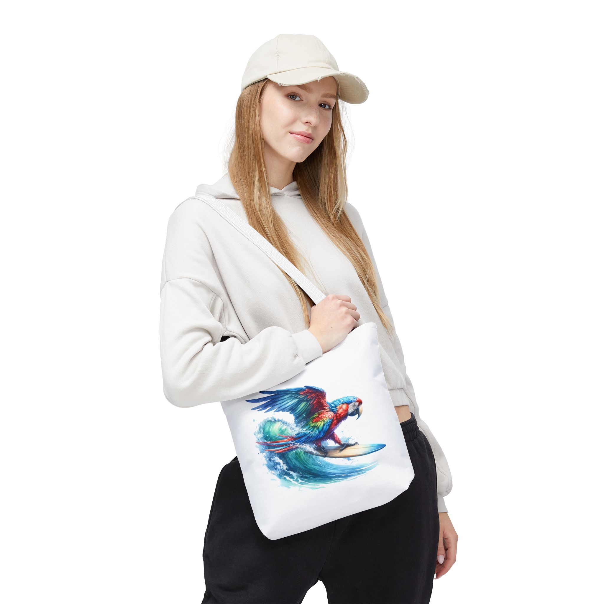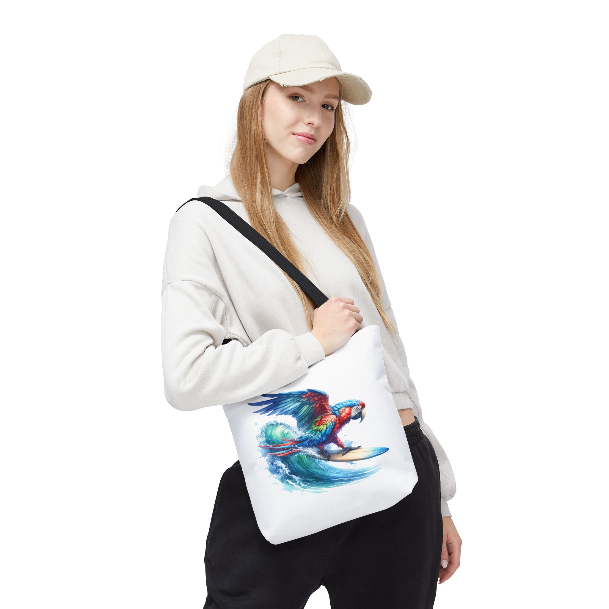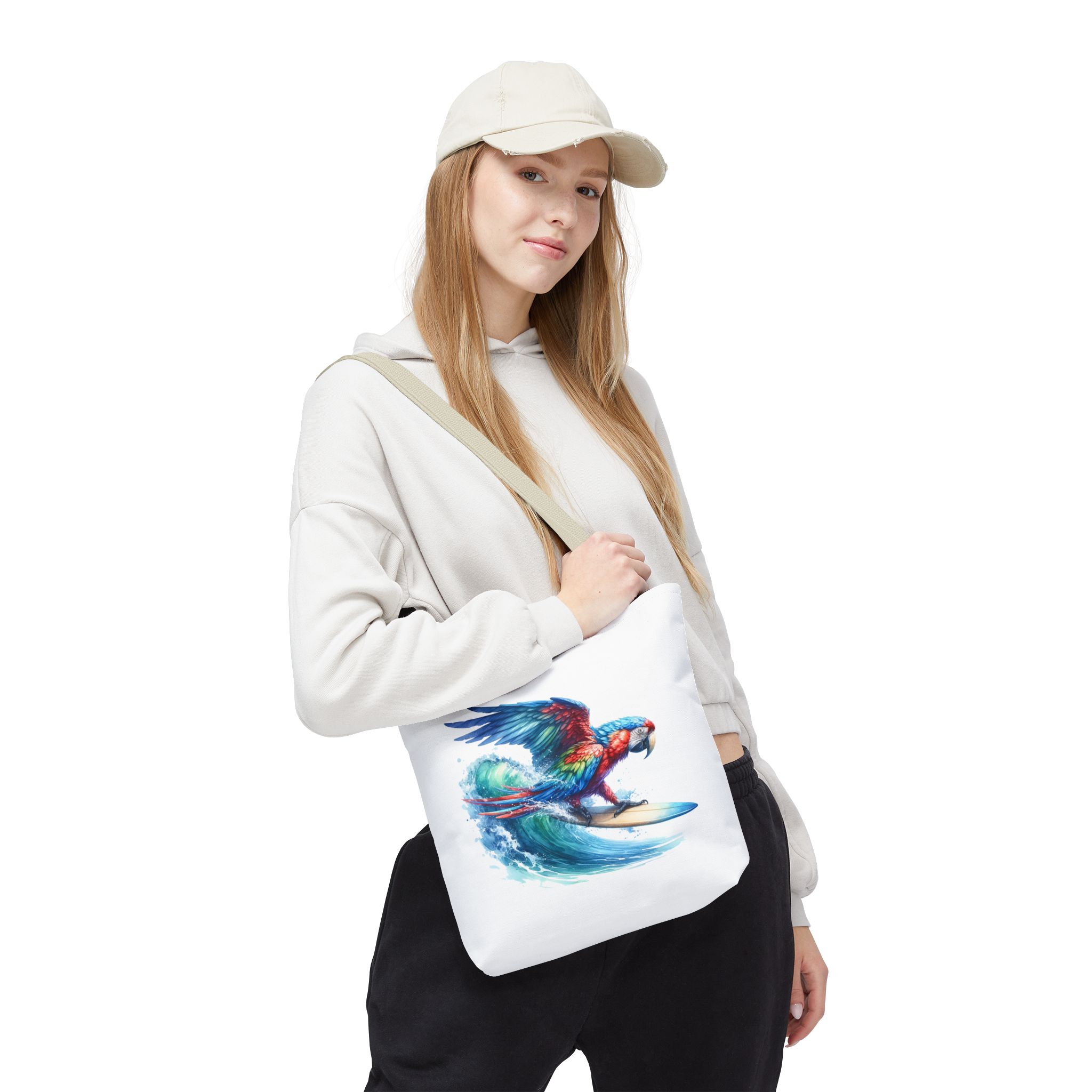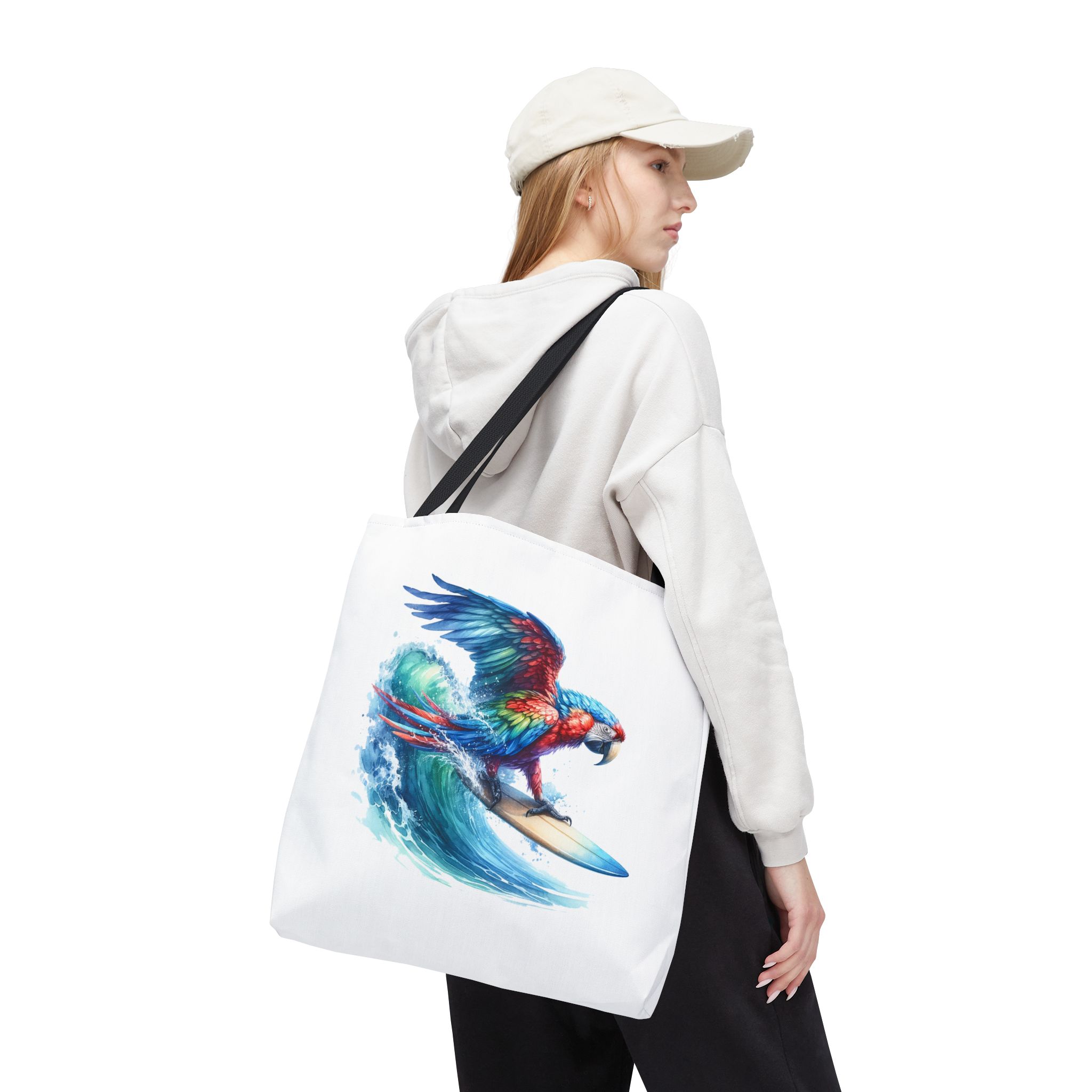 Parrot funny tote bag surf cute tote bag boho Bird surfer canvas tote bag gift for her free spirit shoulder bag cool handbag