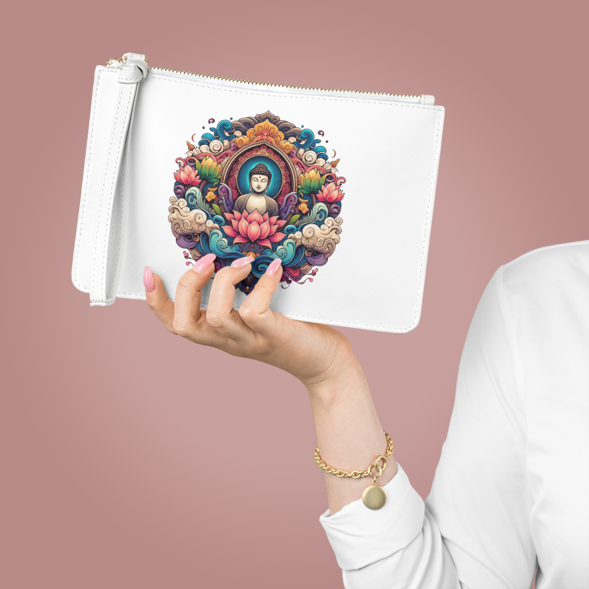 Les influences du sac à main de méditation et de la pochette de méditation lui confèrent une identité visuelle calme et réfléchie.