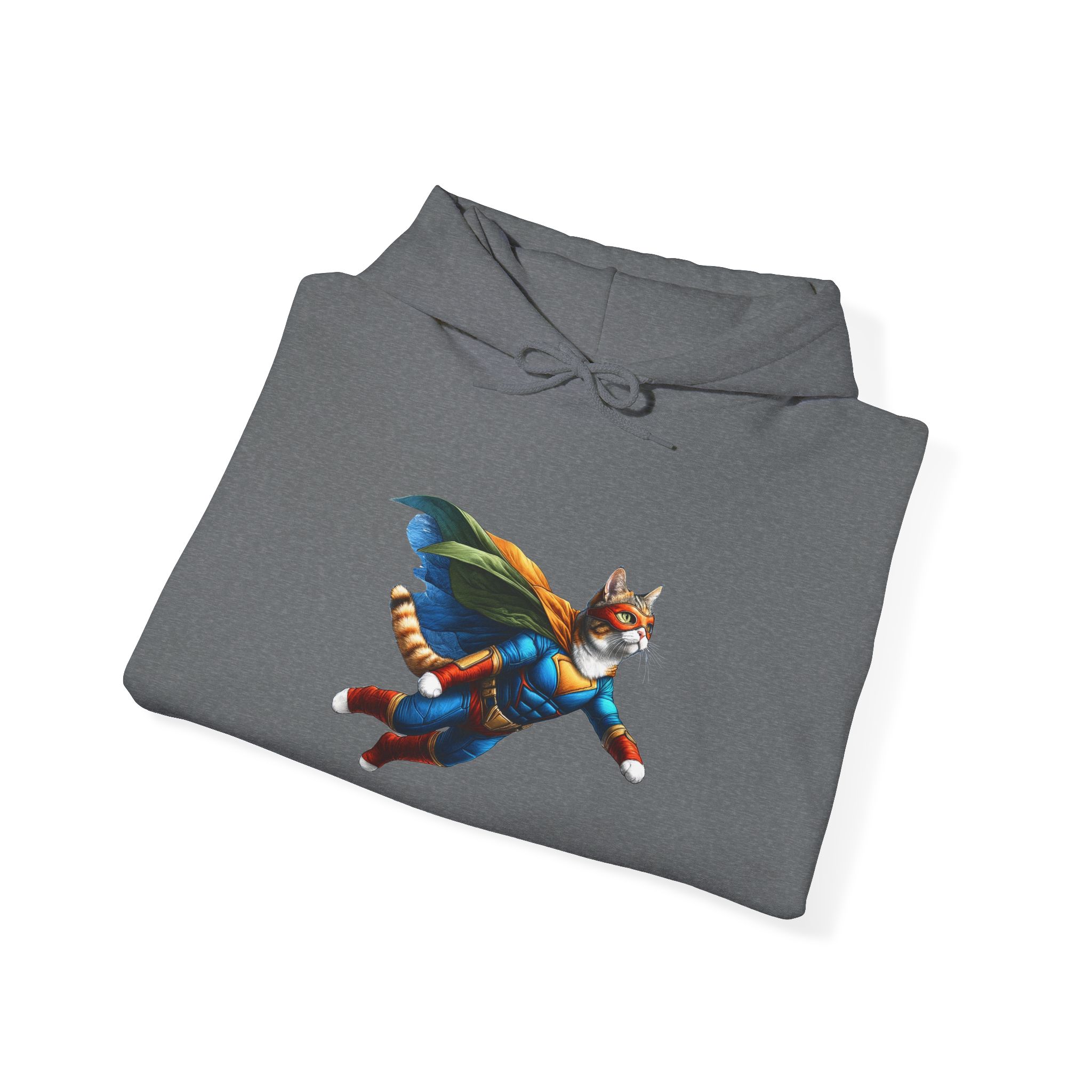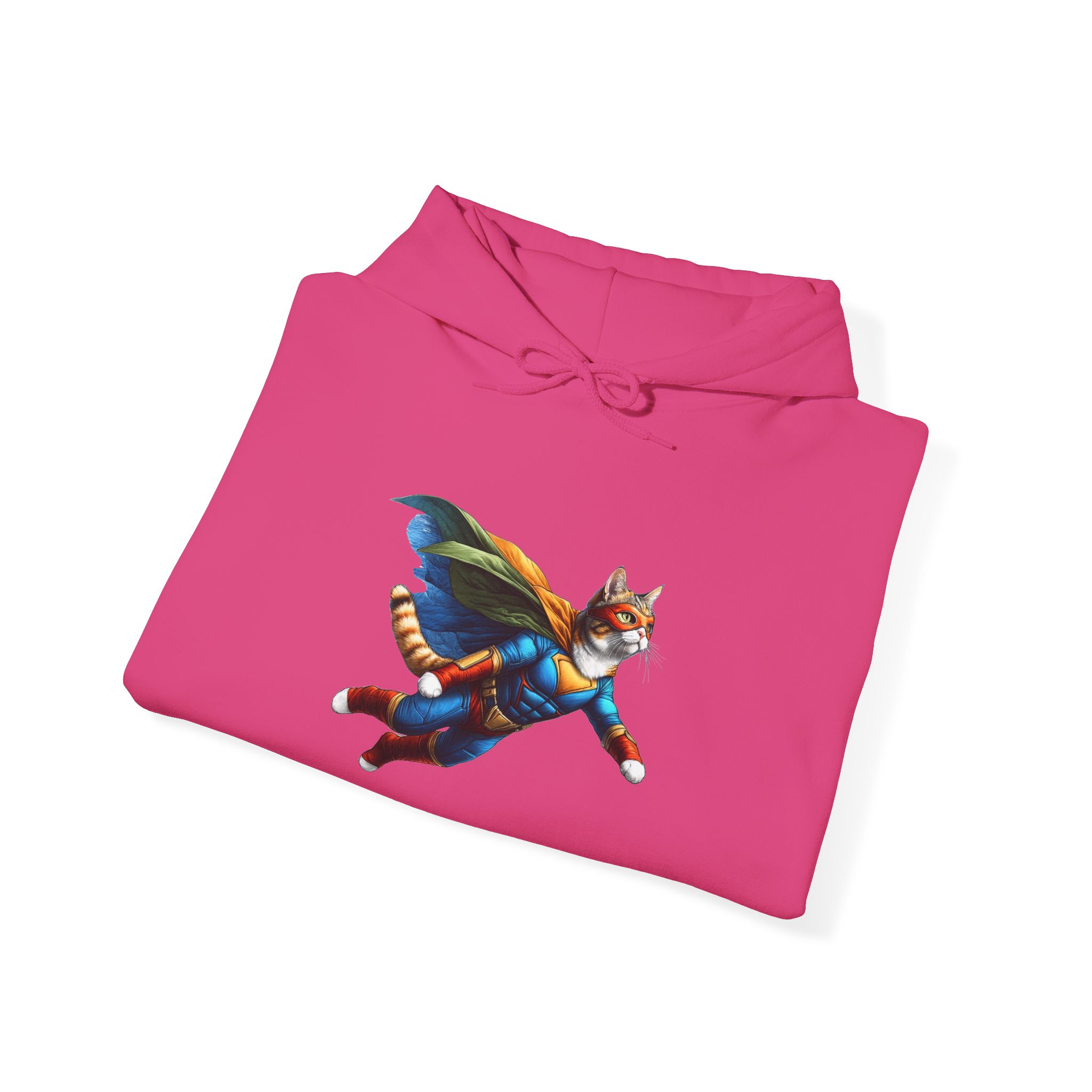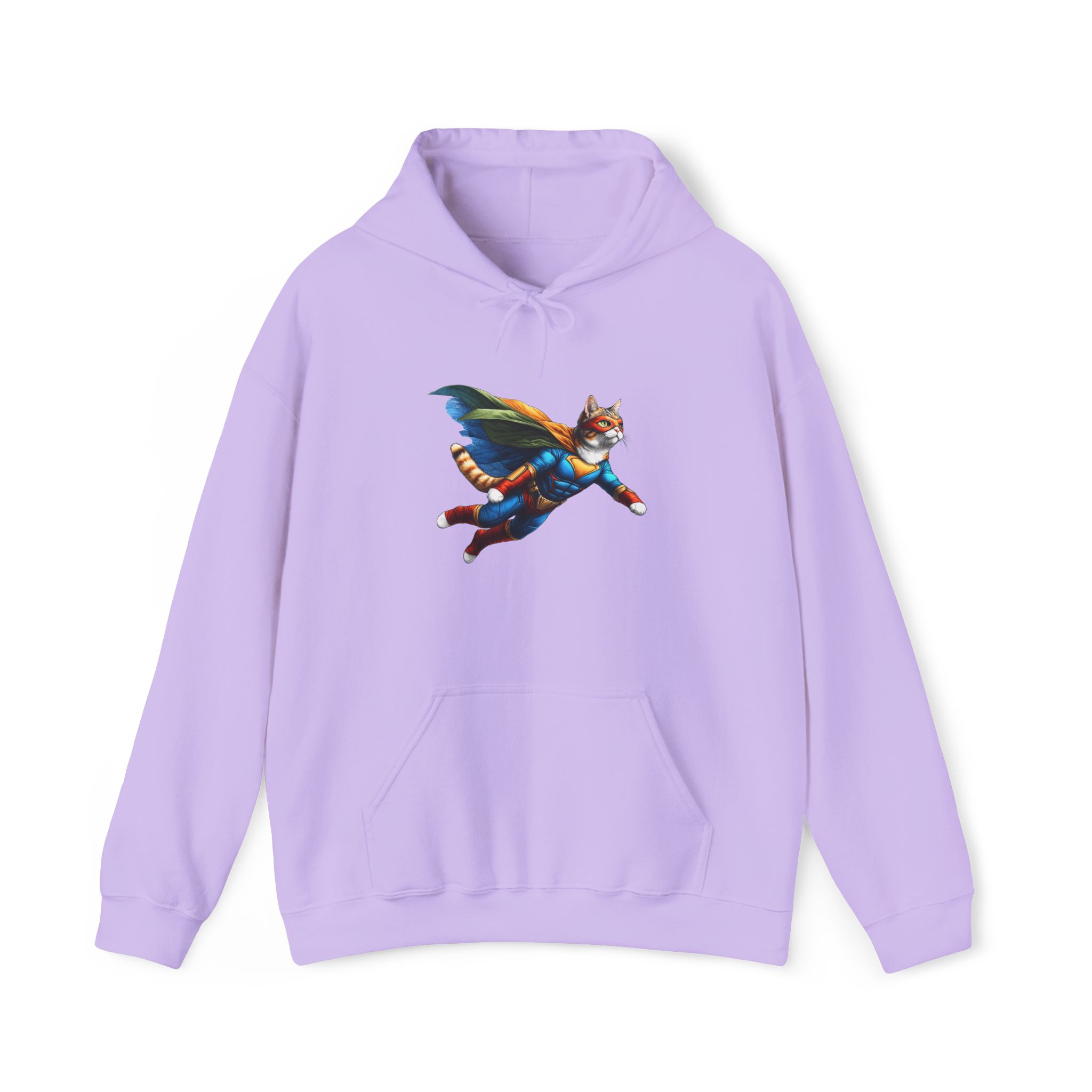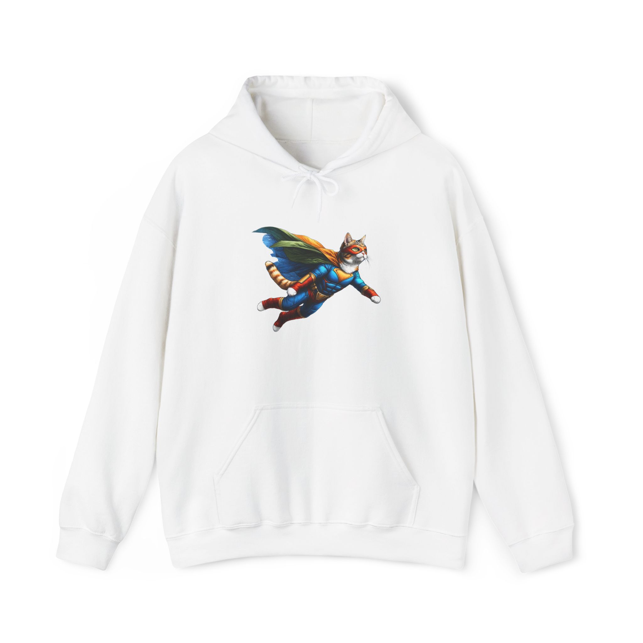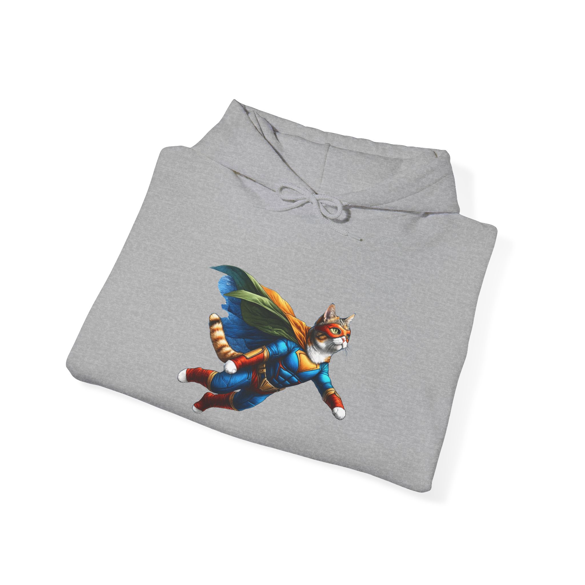 This funny cat hoodie, a mix of fantasy sweatshirt and cat hero humor, features cat super hero art in an oversized hoodie made for cat lovers.