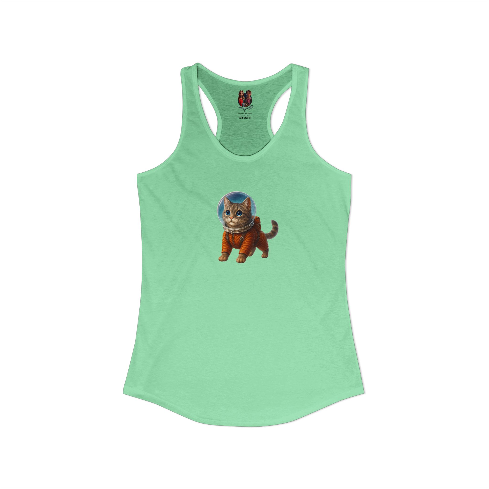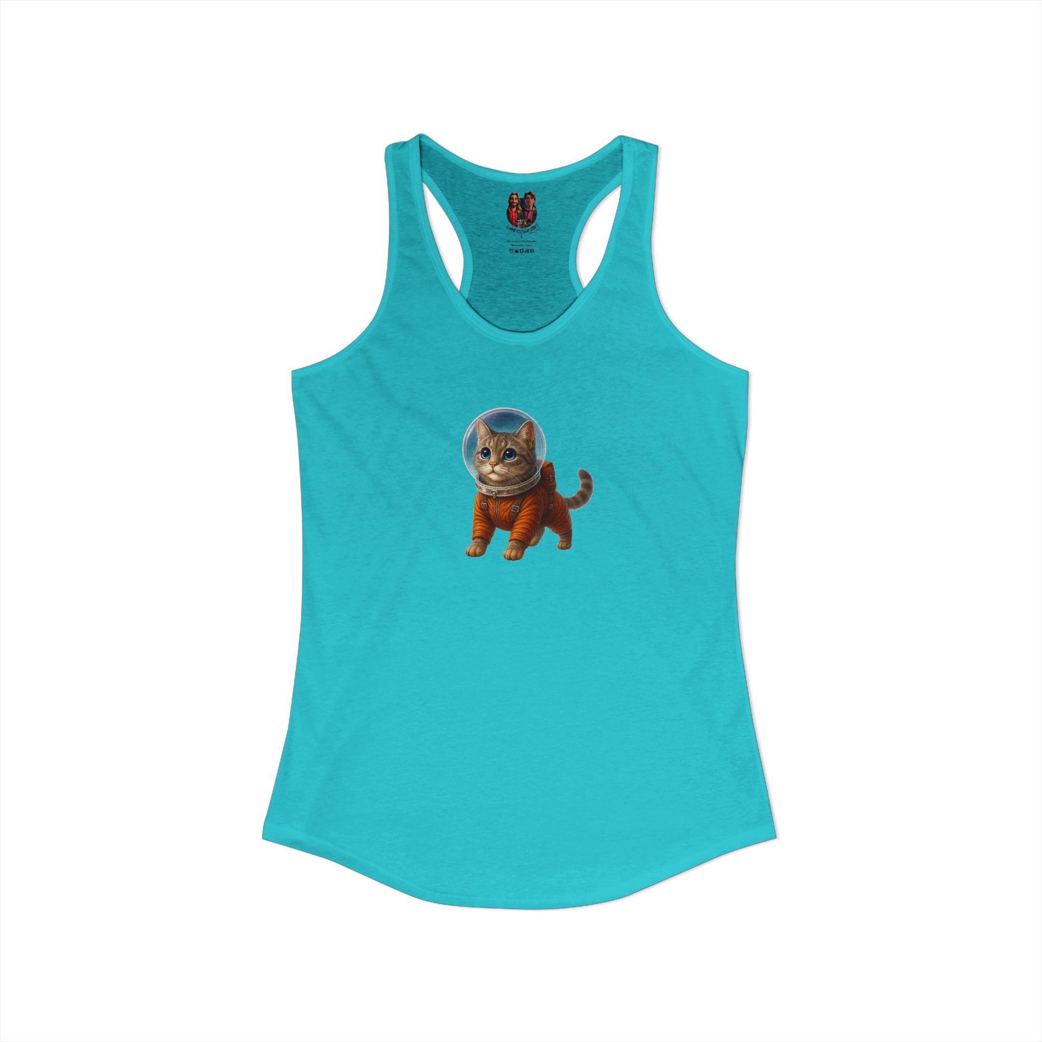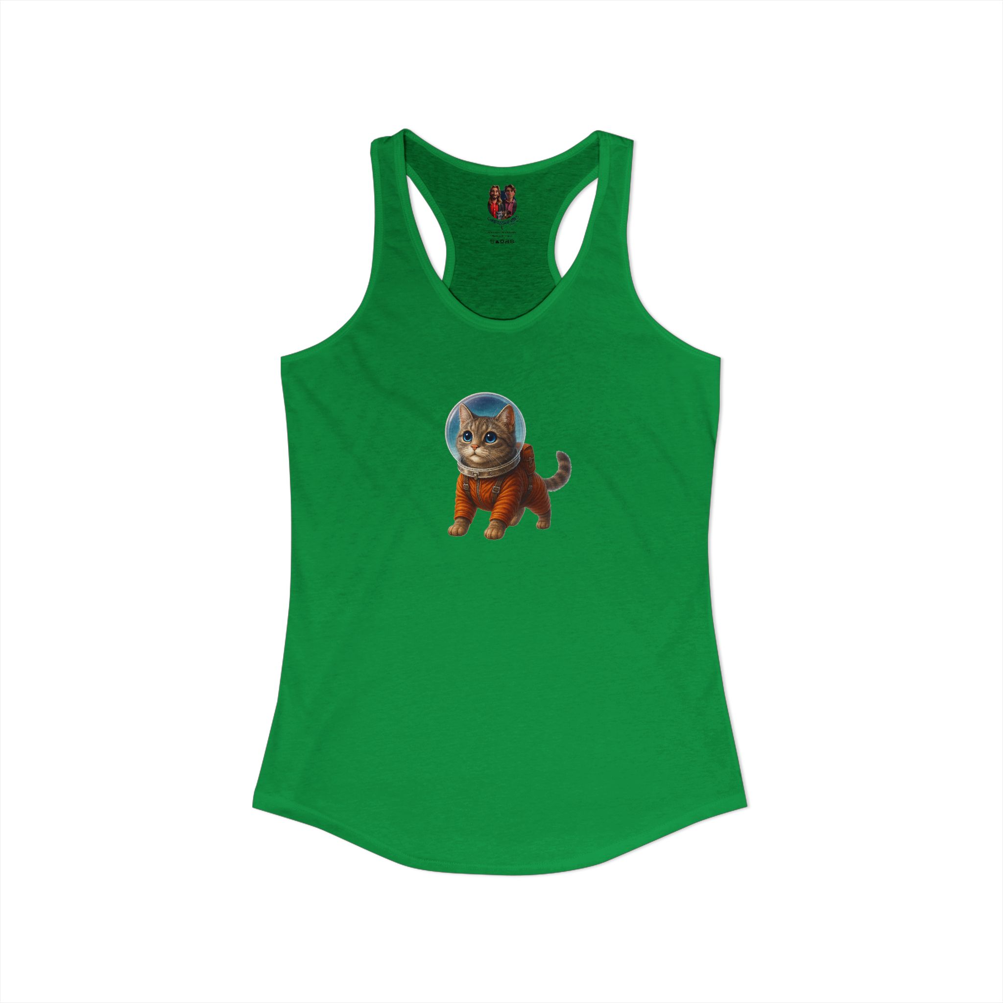 This graphic cat tank top resonates with anyone who considers cat racerback tank and space cat tank top part of their personal style.
