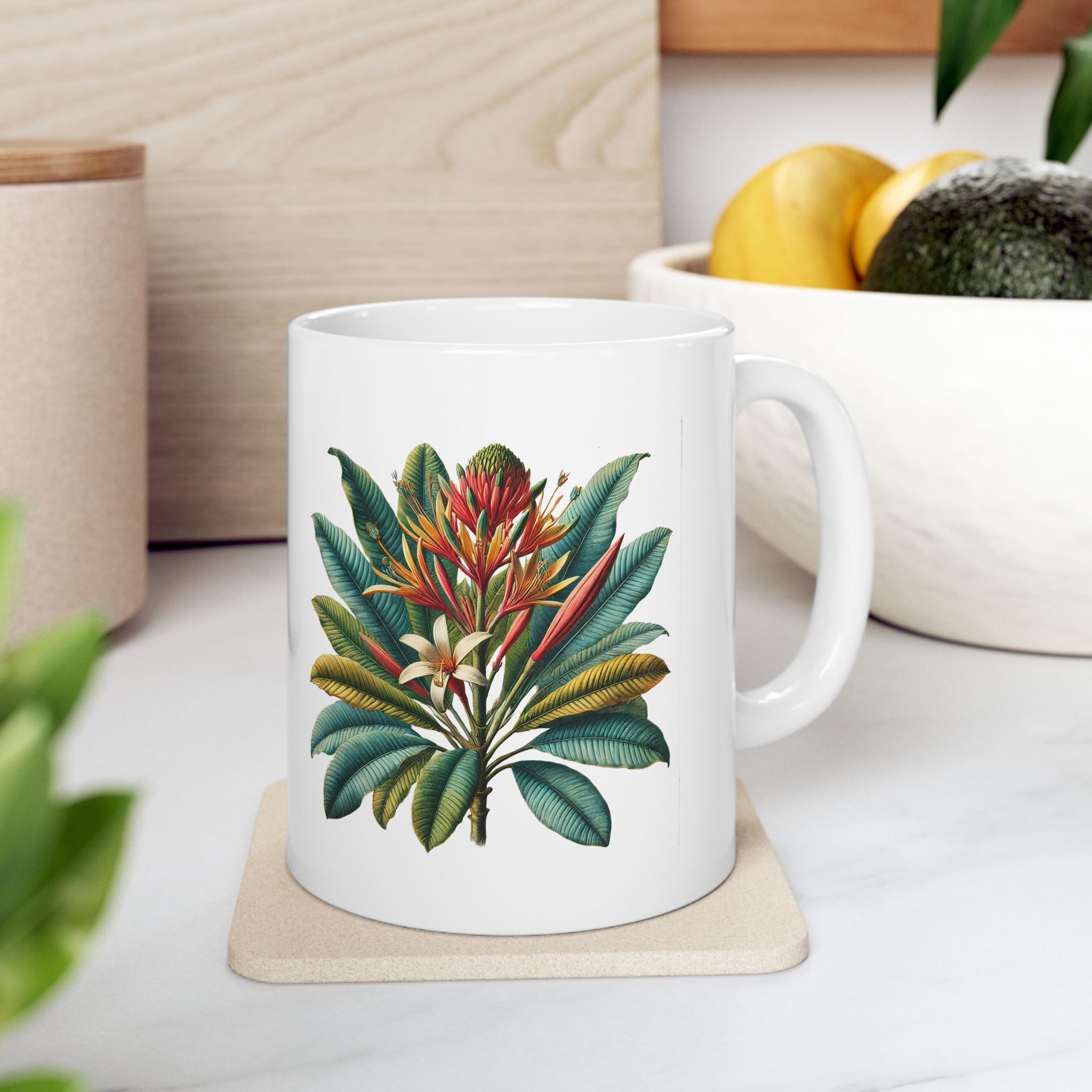 This tropical flower coffee mug will appeal to those who see cute tropical flower office mug and cute tropical flower ceramics mug as part of what defines their personal style.