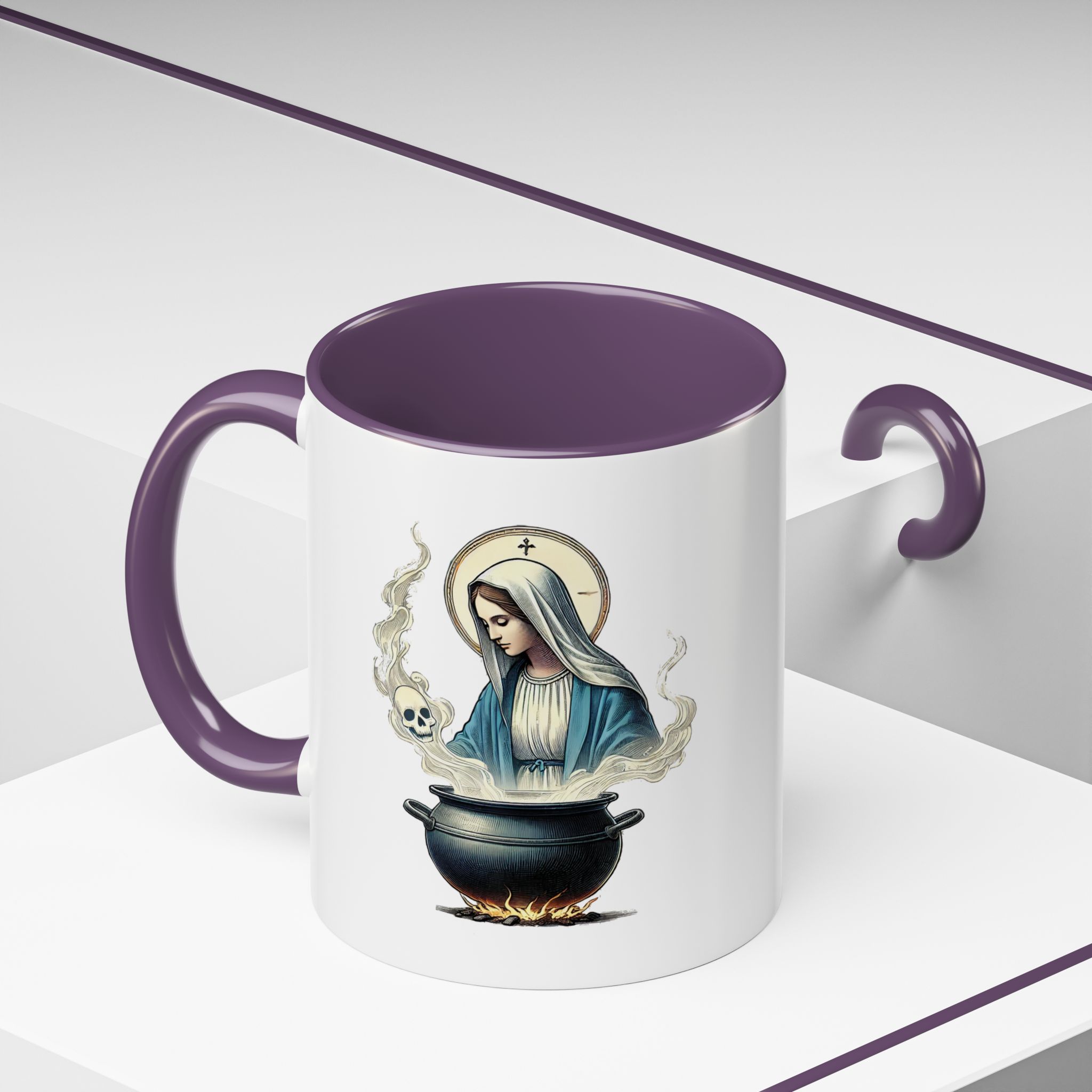 Funny Mug coffee lover gift for her Virgin Mary witch broom Sarcastic mug office accessory tea cup religious design unique