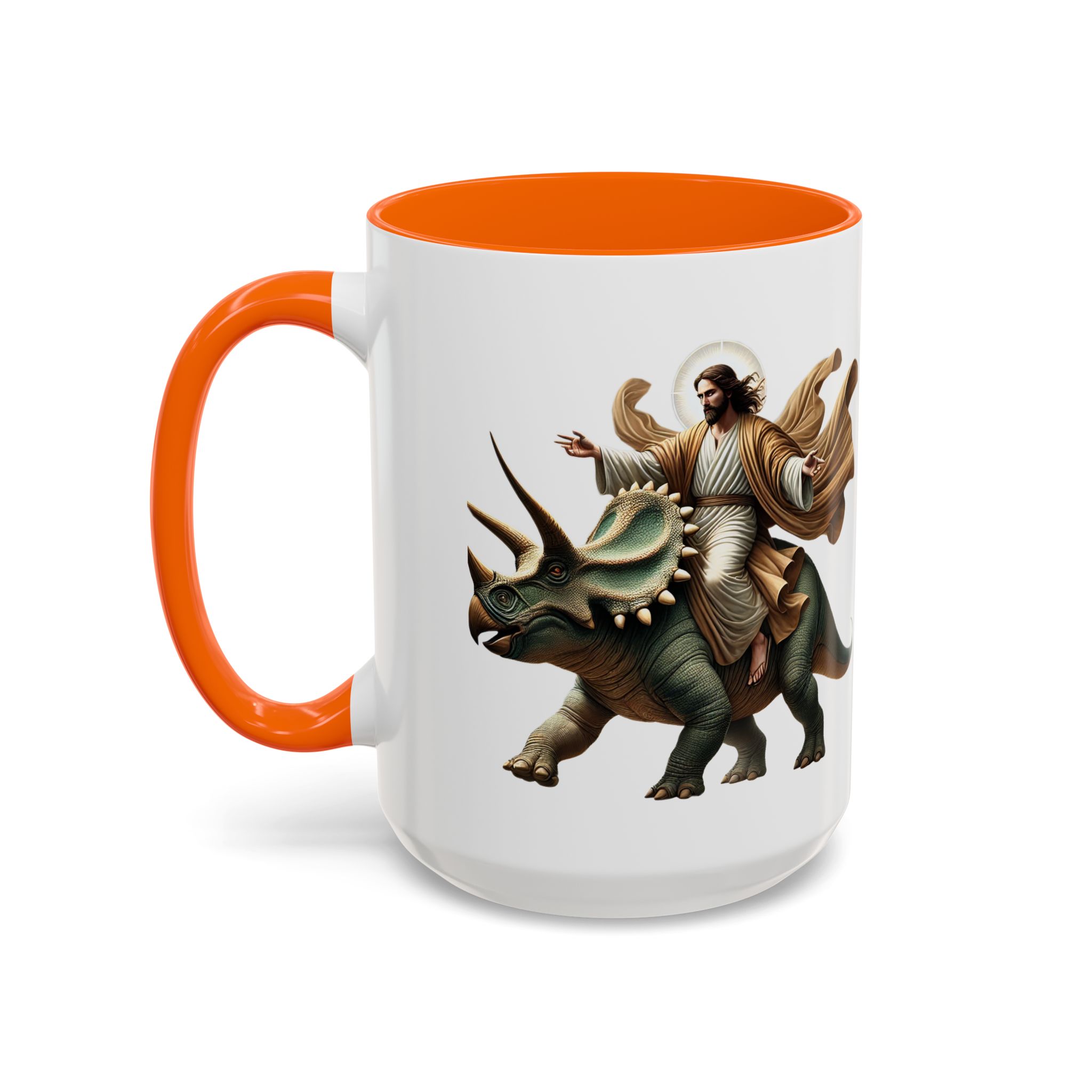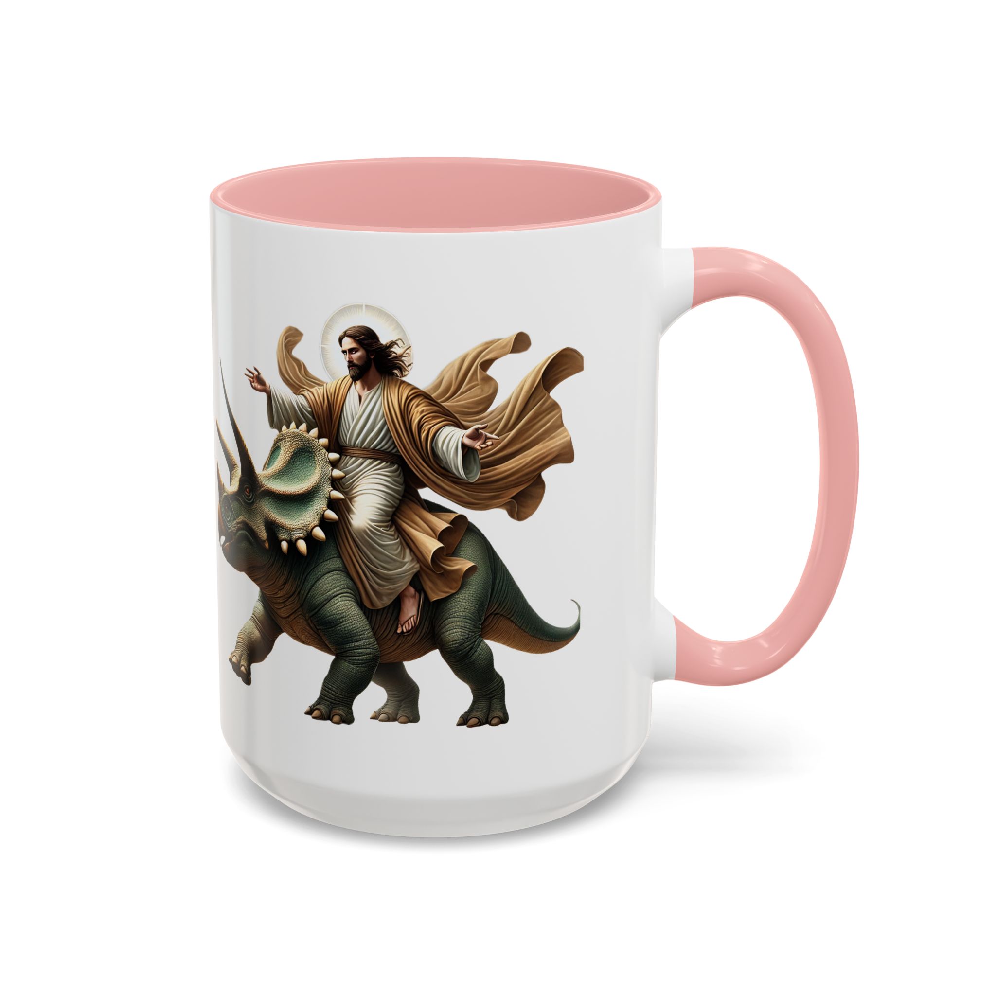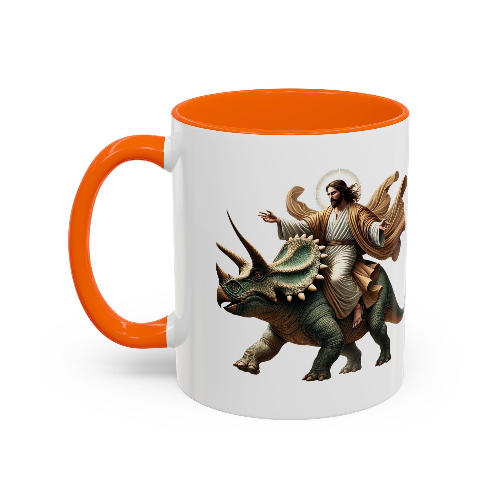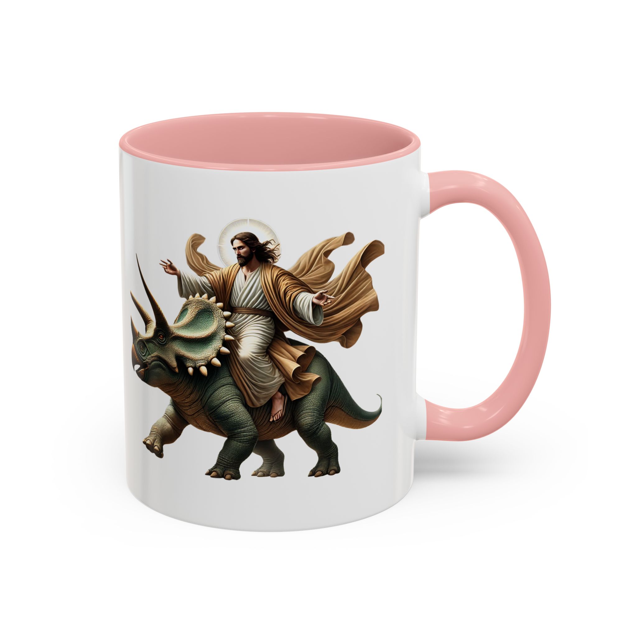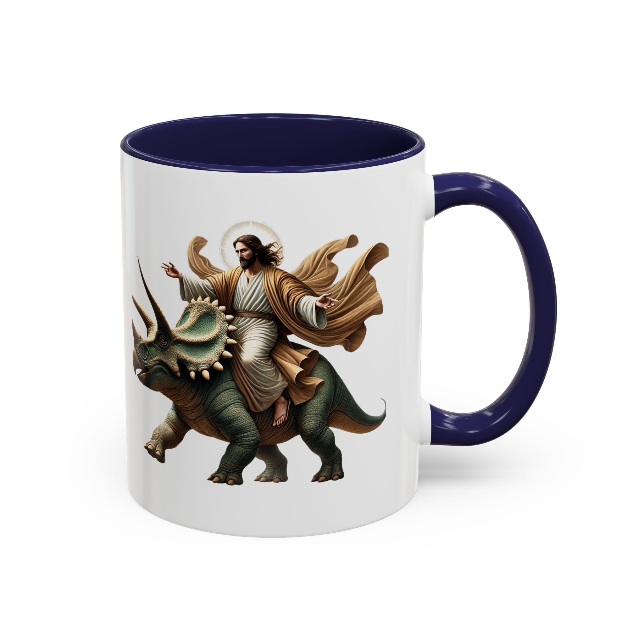 Funny Mug Jurassic gift coffee lover cup boho unique mug Jesus christ riding a triceratops office accessory dinosaure