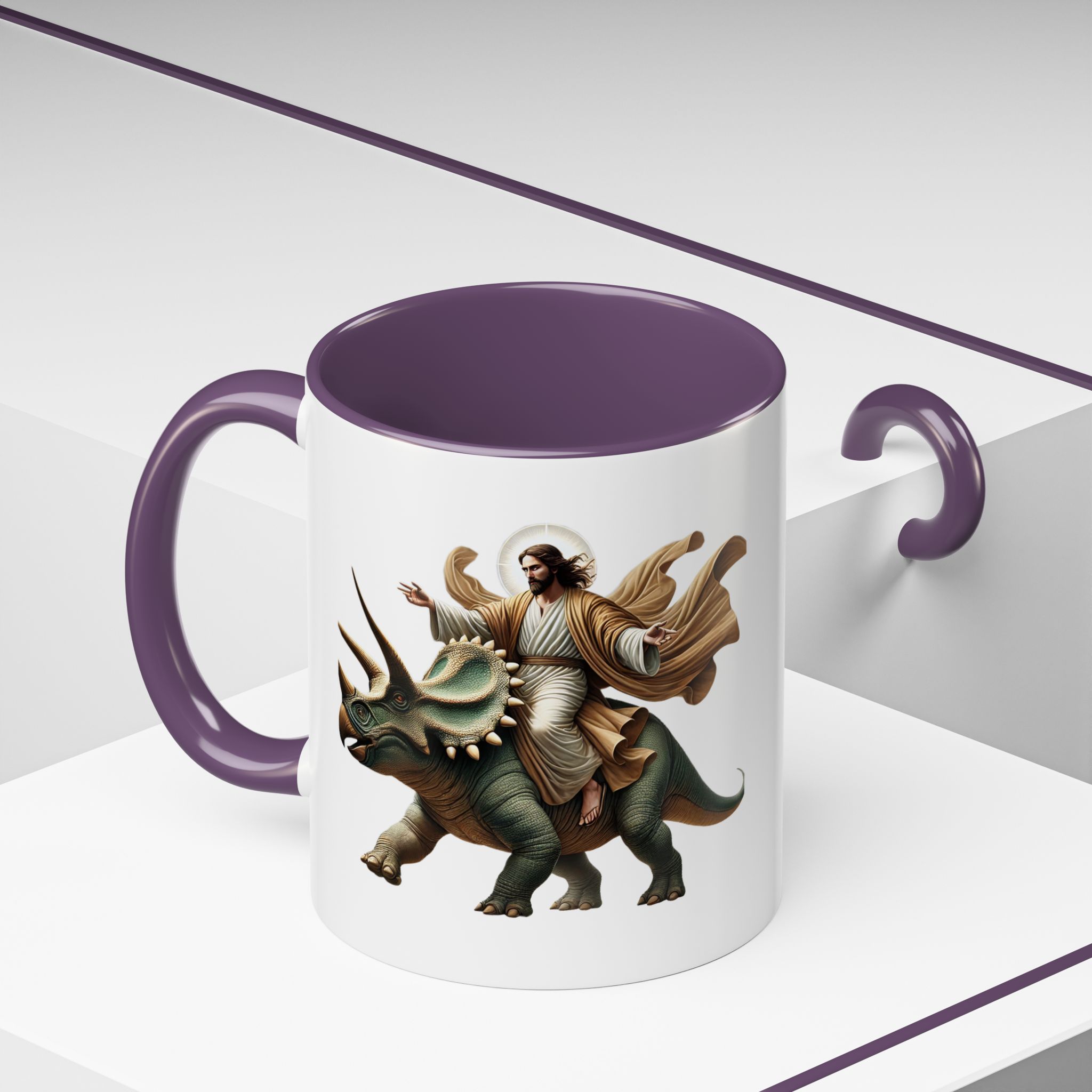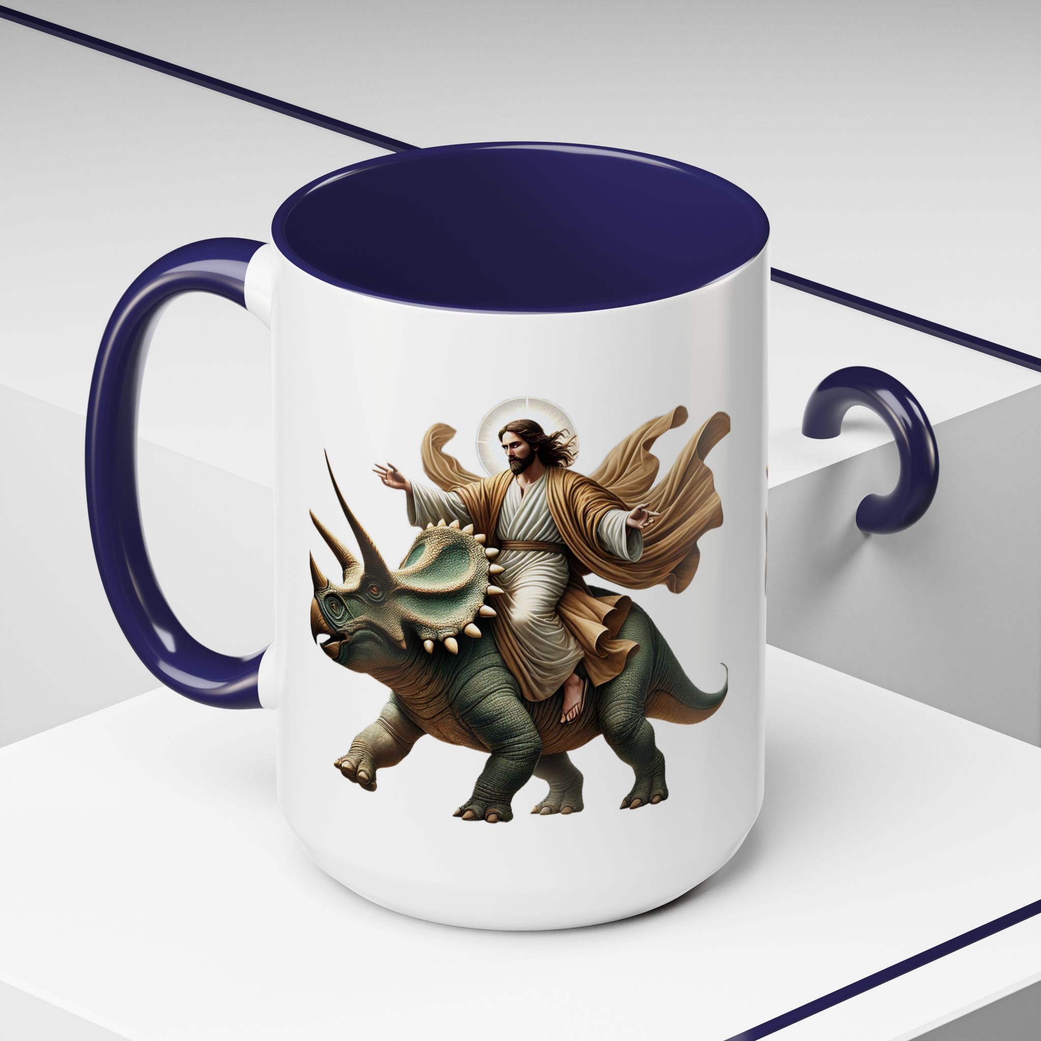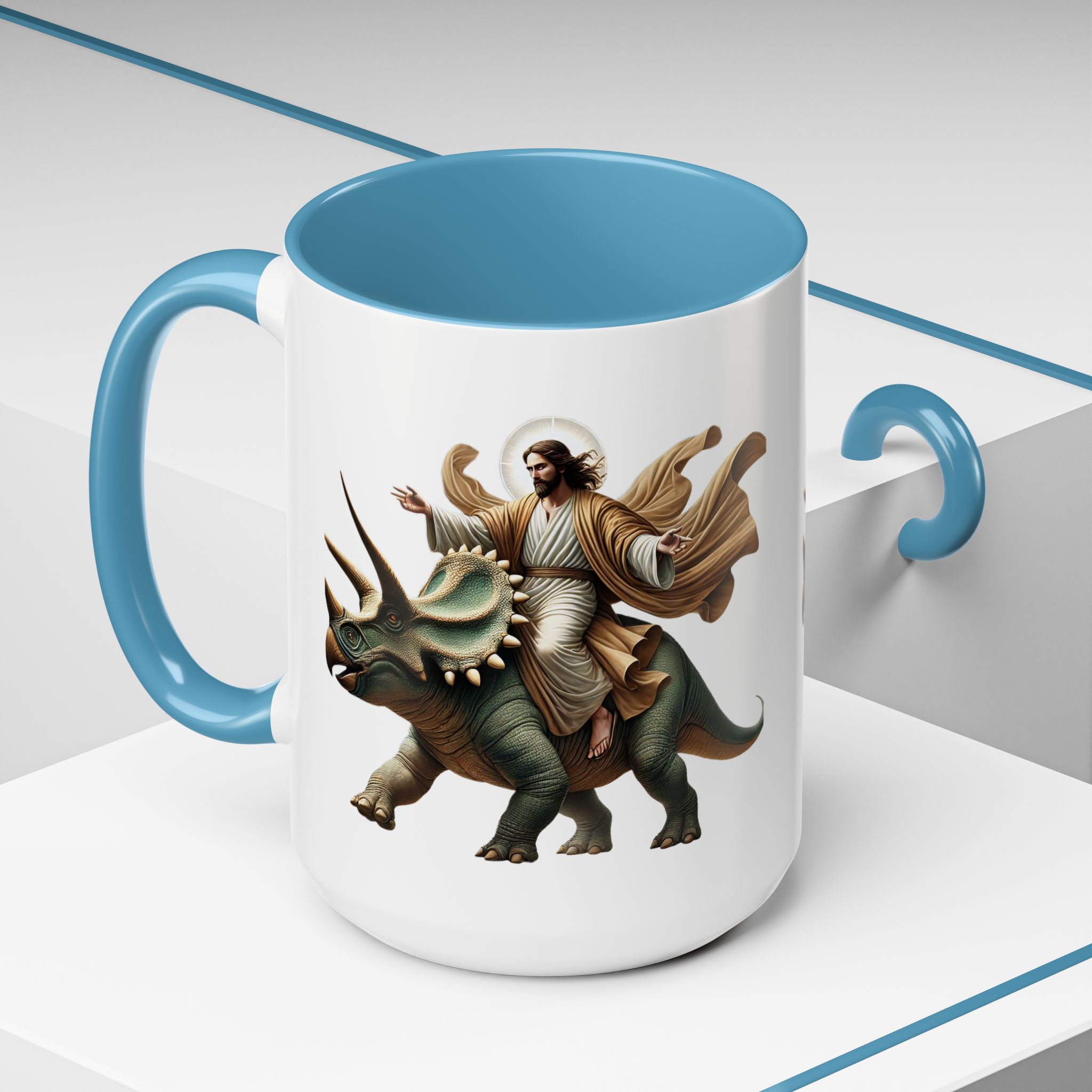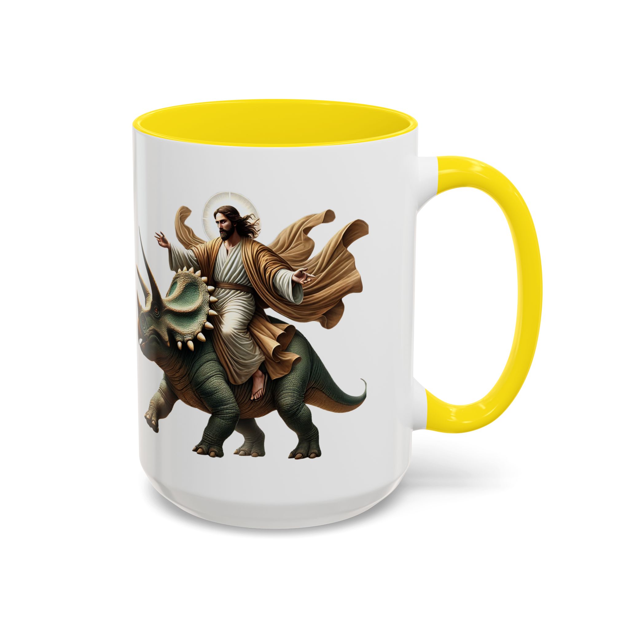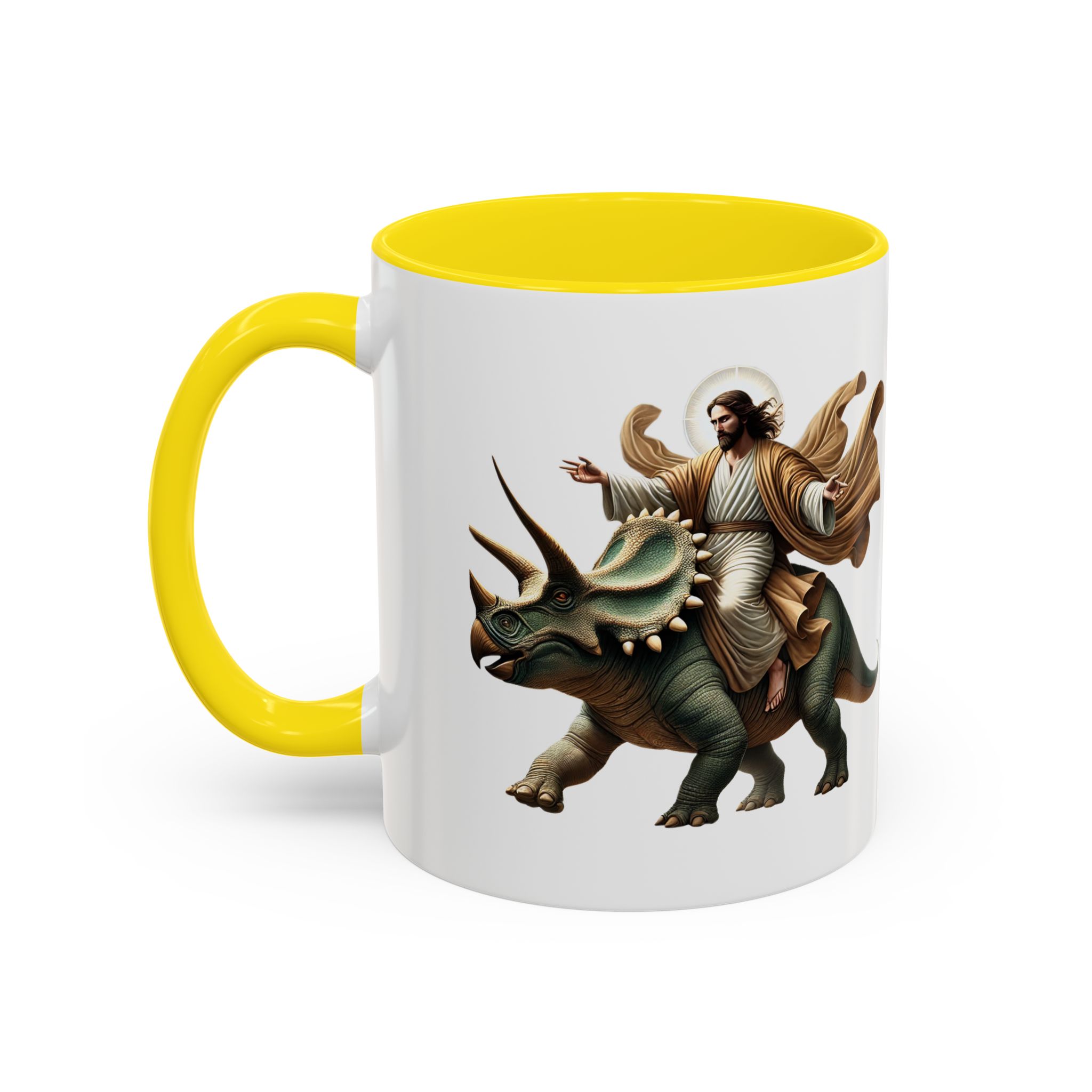 Funny Mug Jurassic gift coffee lover cup boho unique mug Jesus christ riding a triceratops office accessory dinosaure