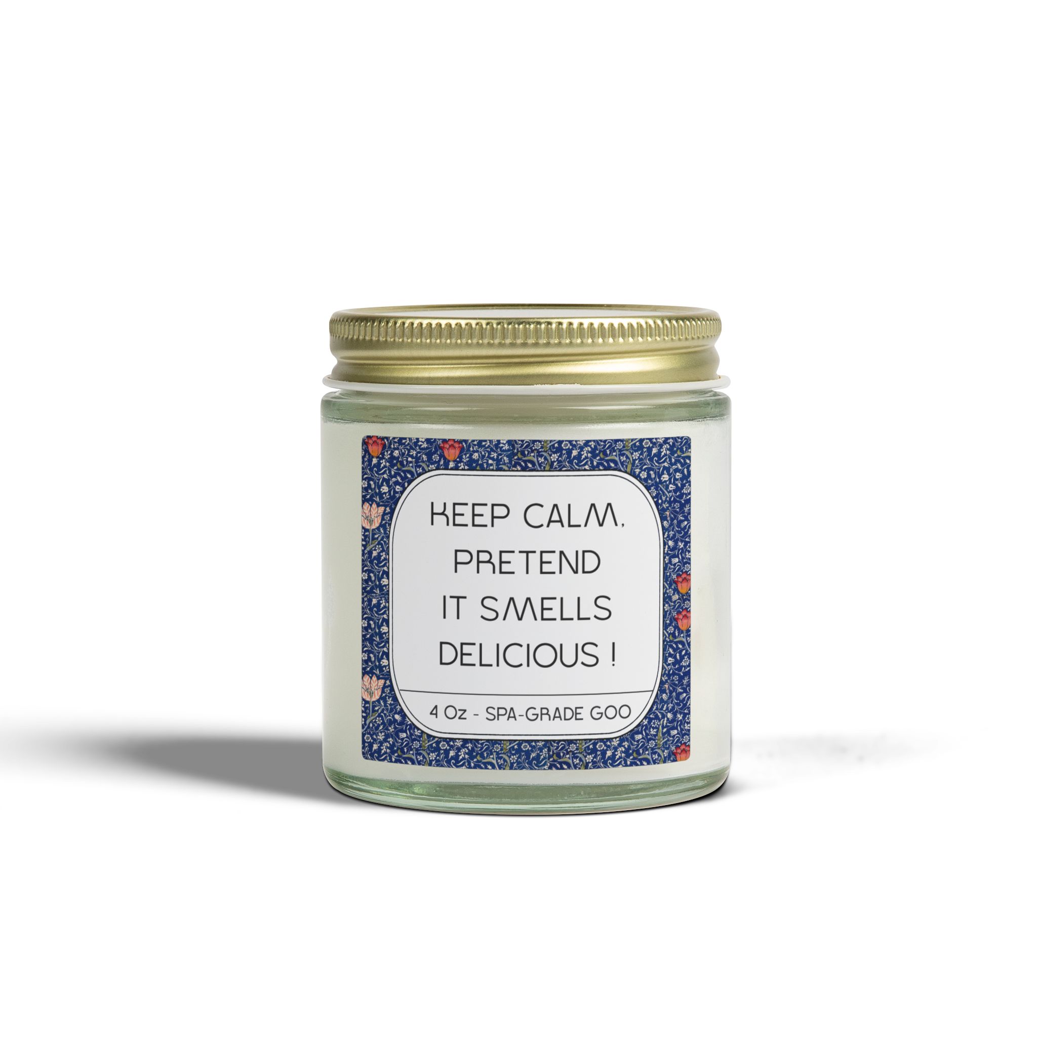 Enjoy this funny candle with the quote = Keep Calm & Pretend it smells Delicious ! written on it !