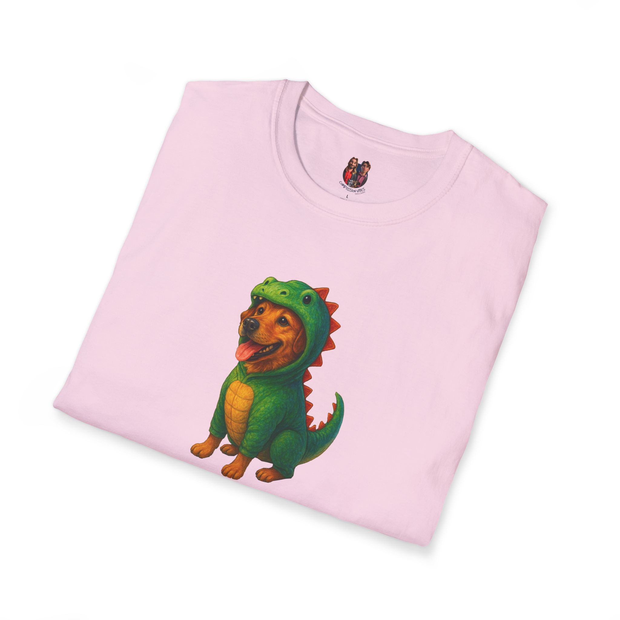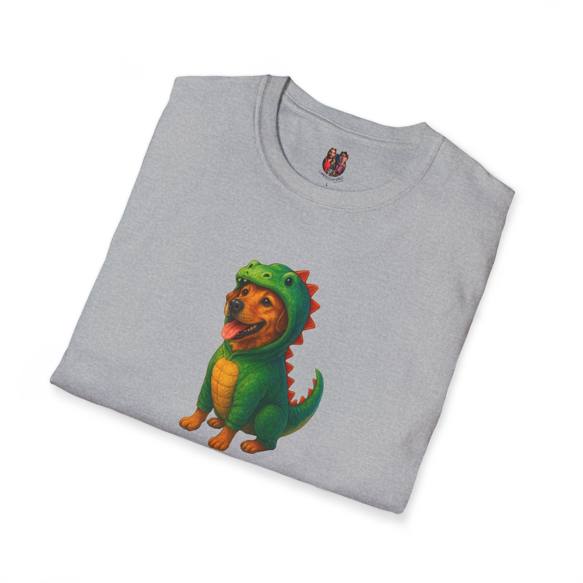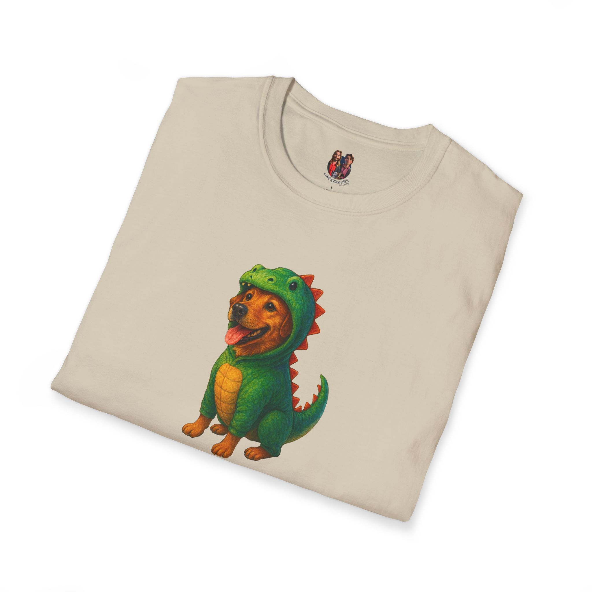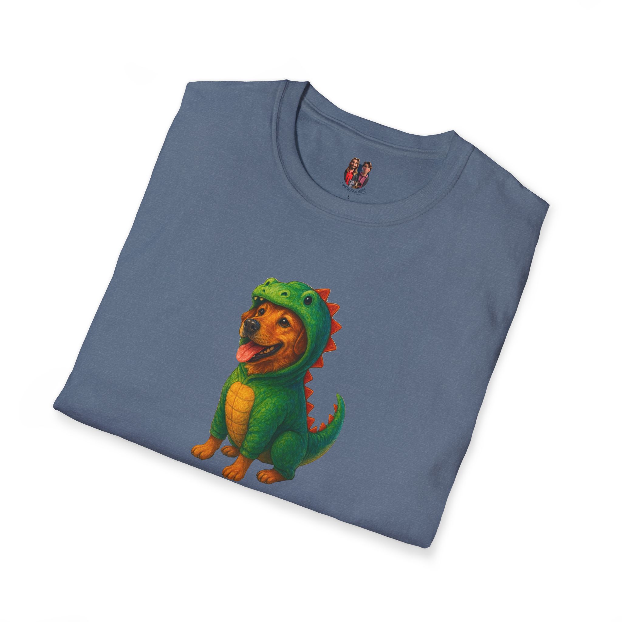 Unleash the ultimate cuteness with our oversized tee featuring an adorable dog dressed as a dinosaur!