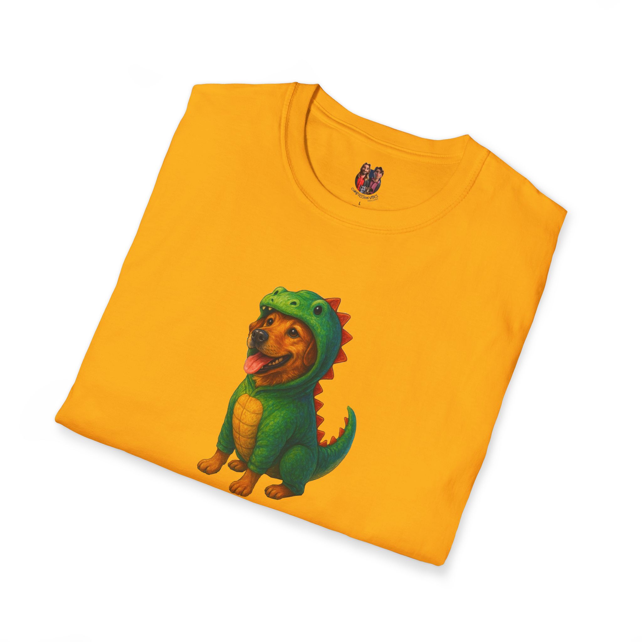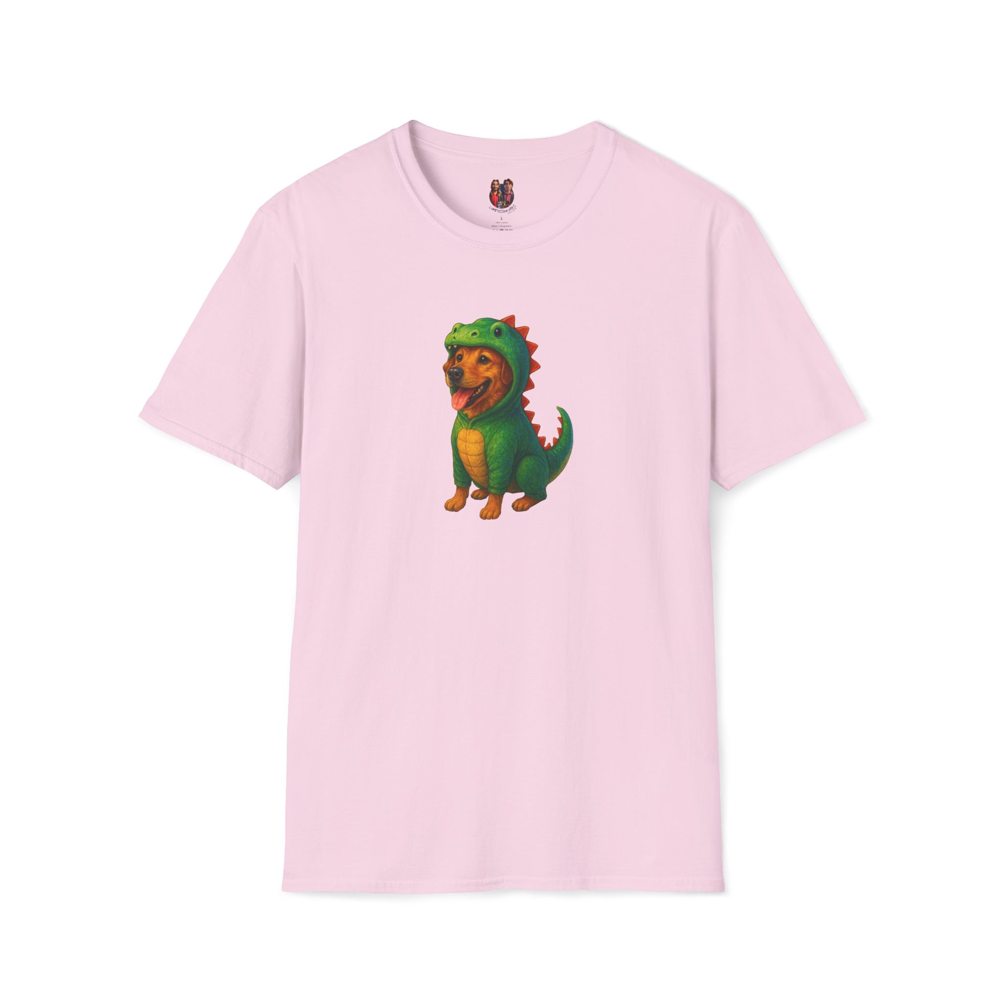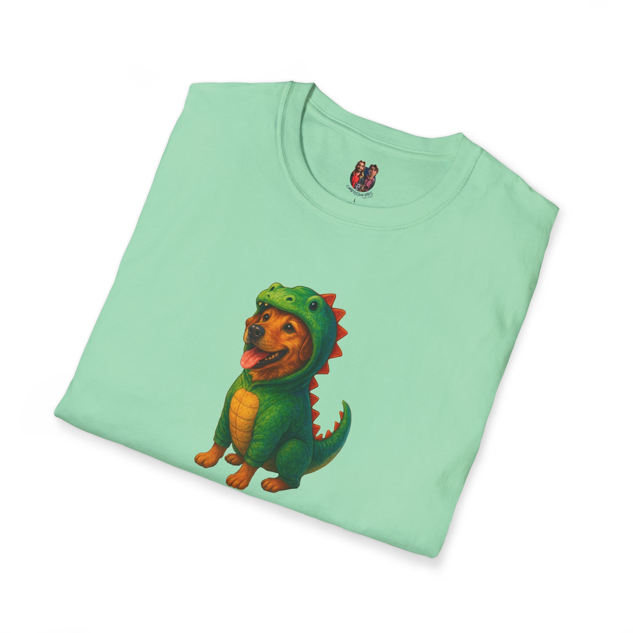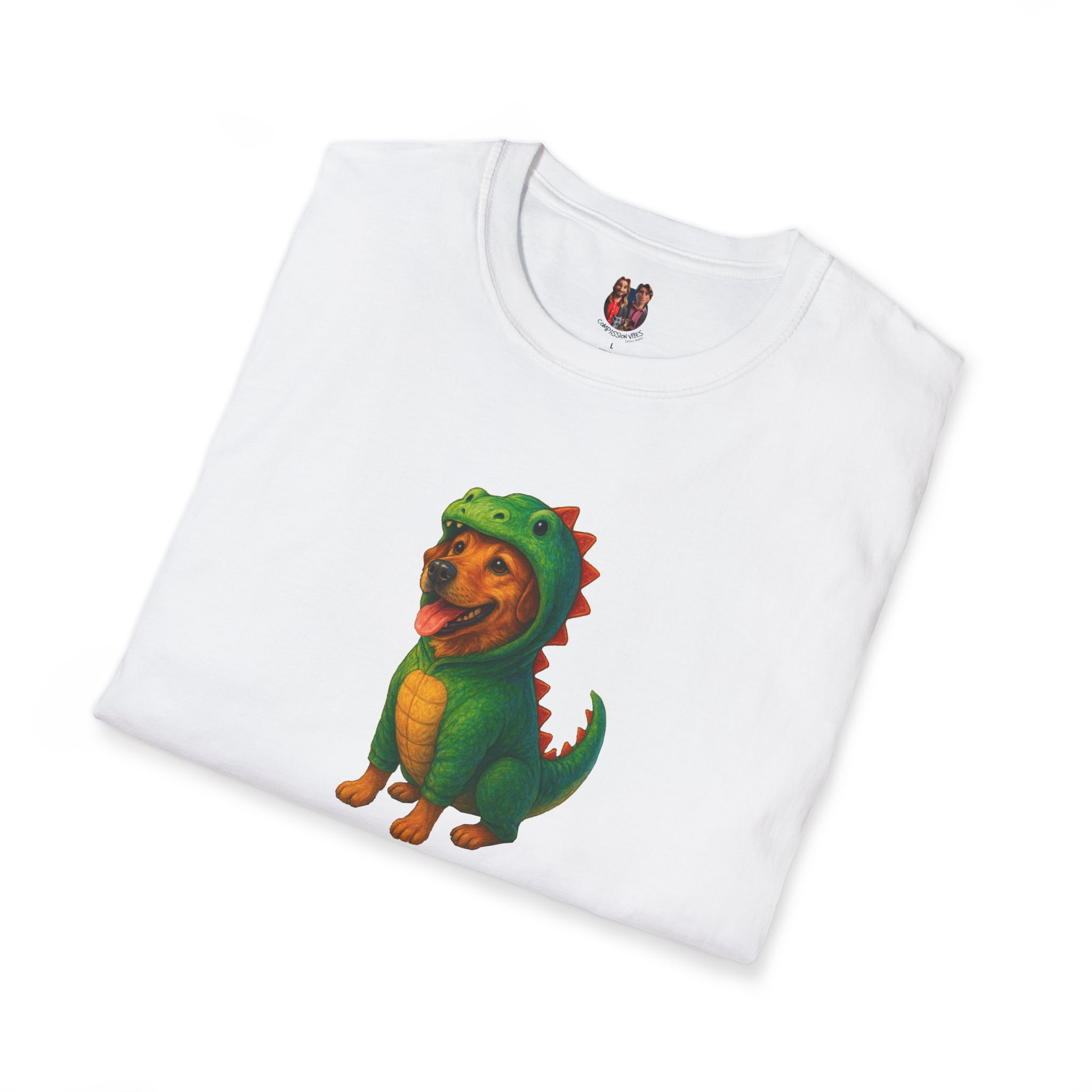 Unleash the ultimate cuteness with our oversized tee featuring an adorable dog dressed as a dinosaur!