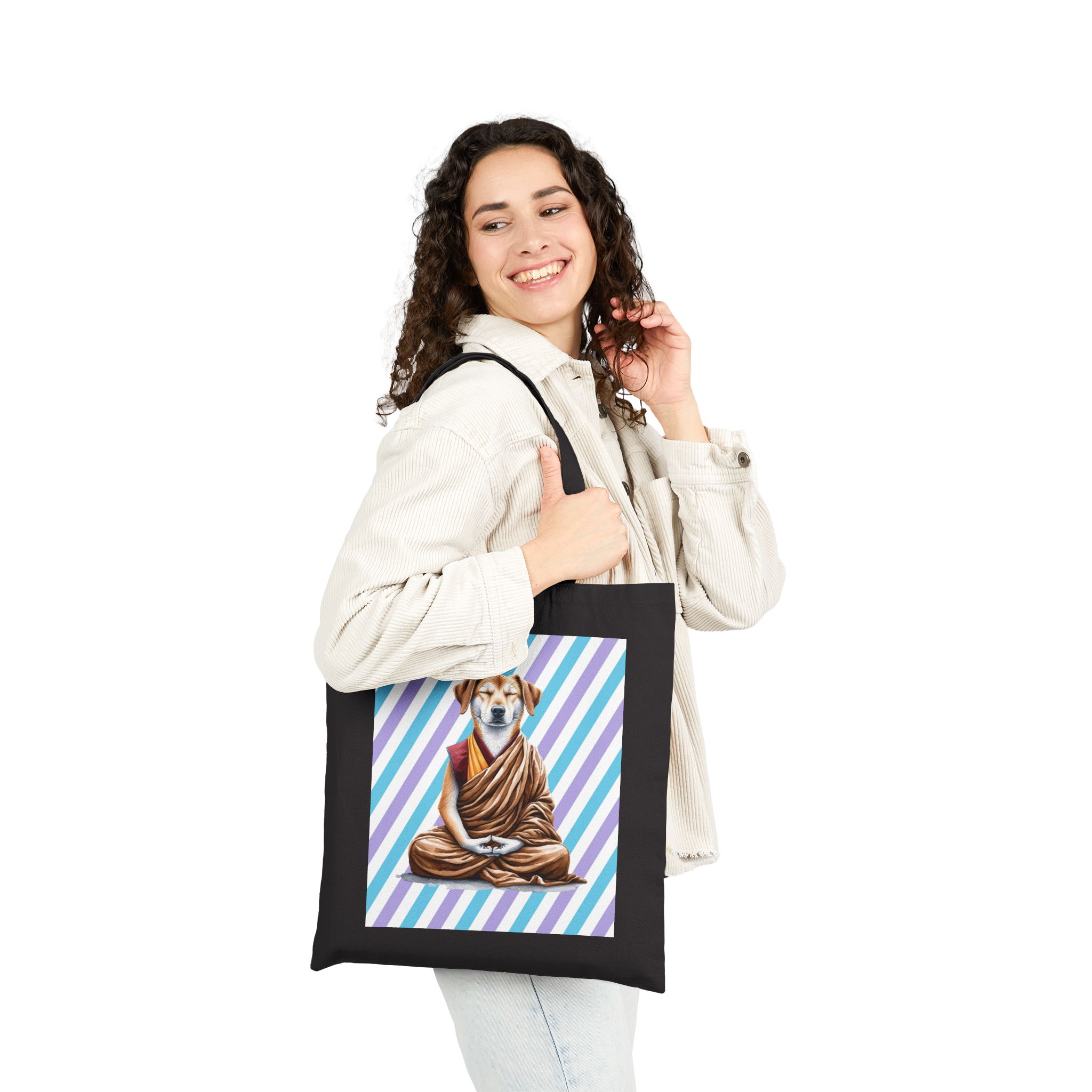 Good vibes Dog canvas tote bag meditation print yoga cute tote bag puppy yoga lover shoulder bag purse pet lover colorful handbag