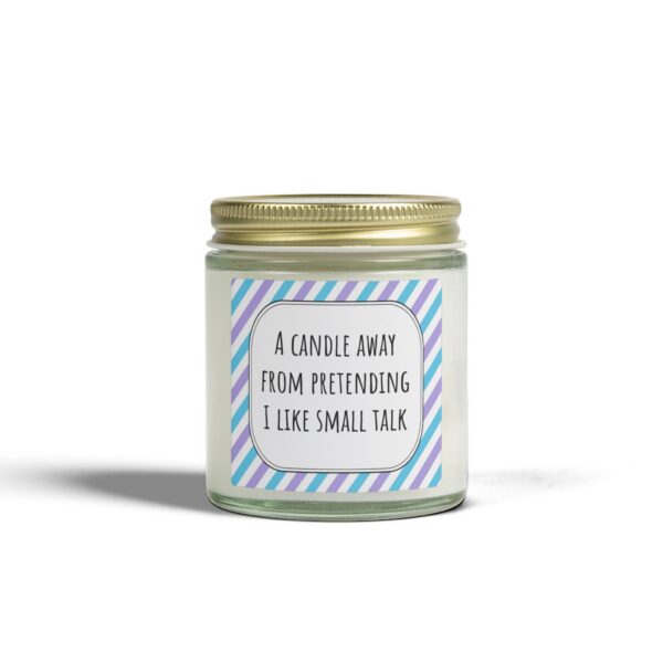 Enjoy this funny candle with the quote = A candle away from pretending I like small talk written on it !