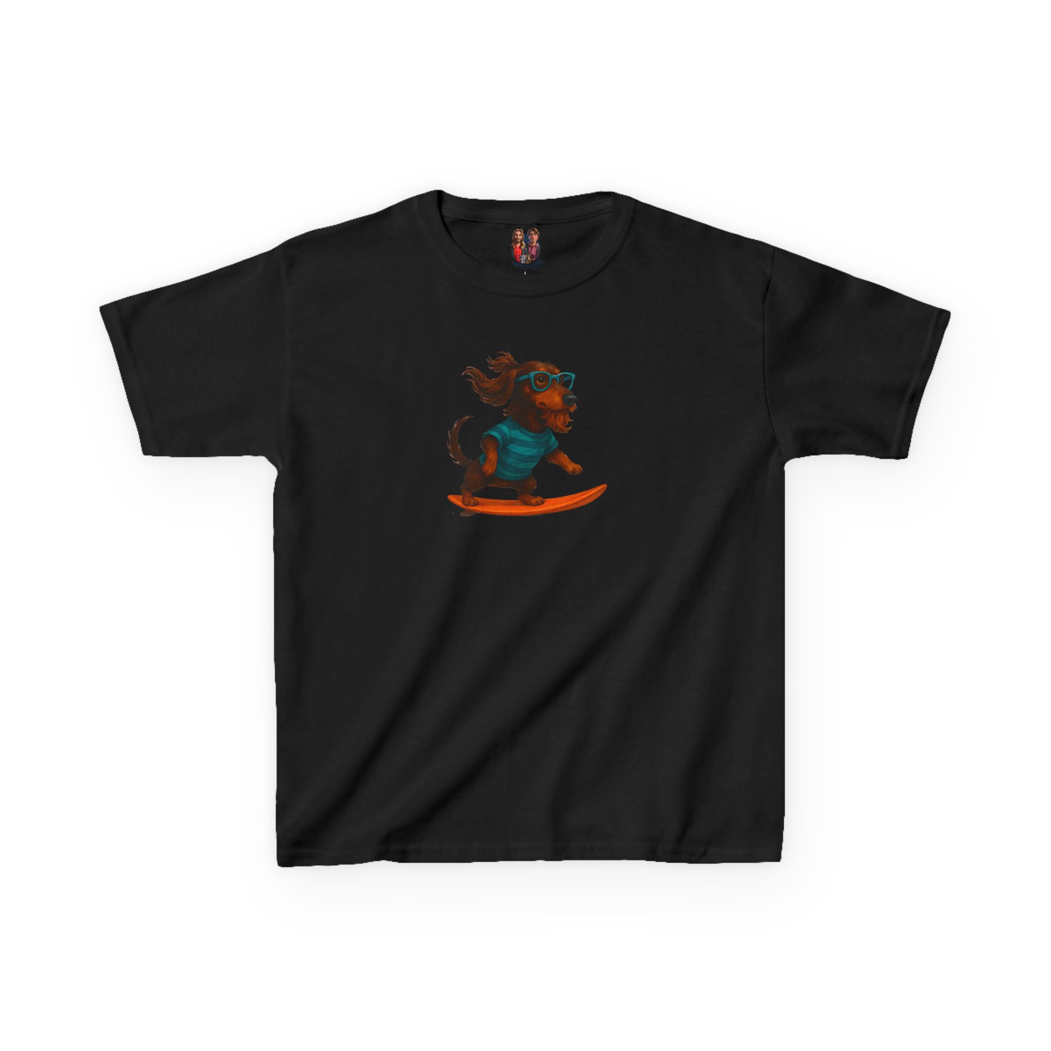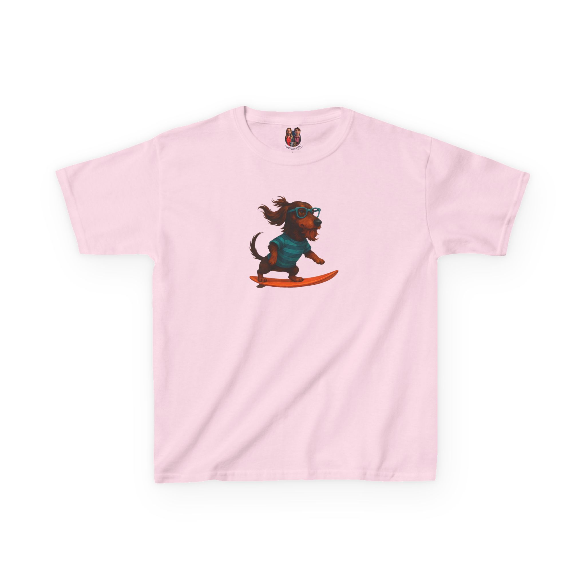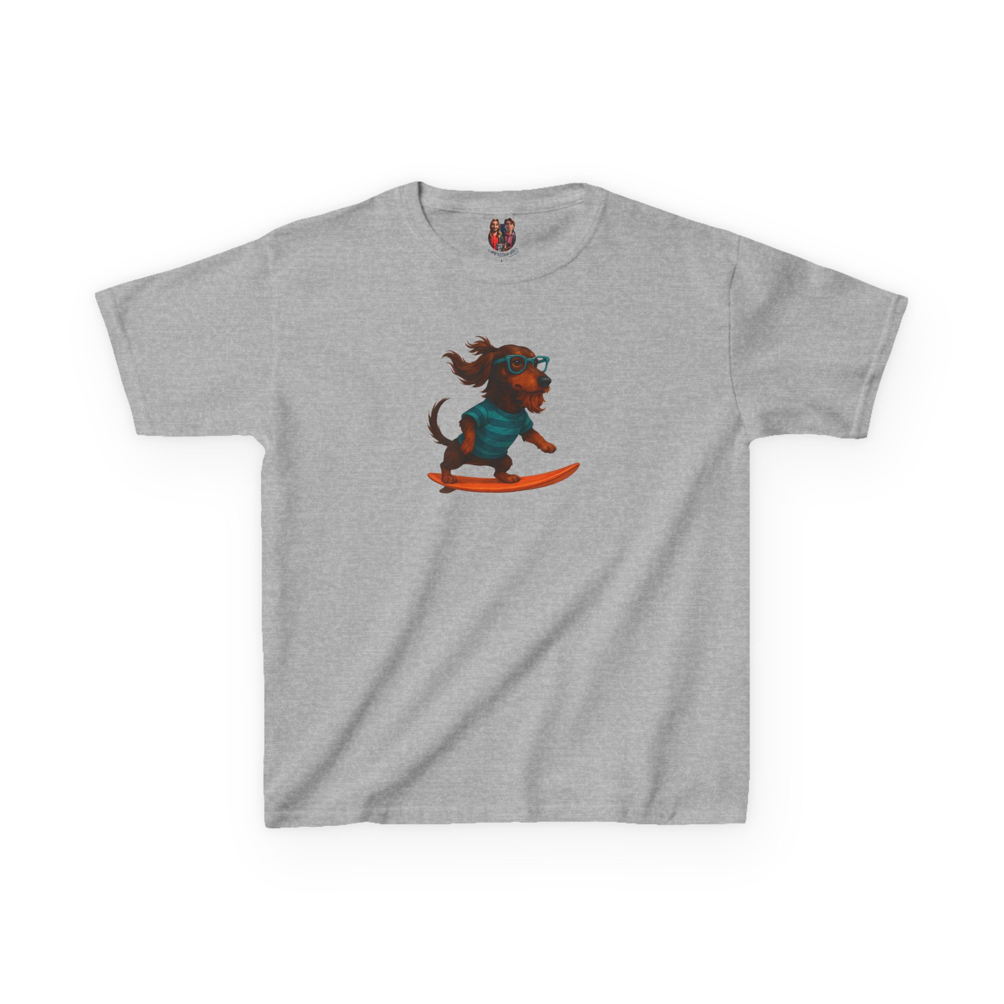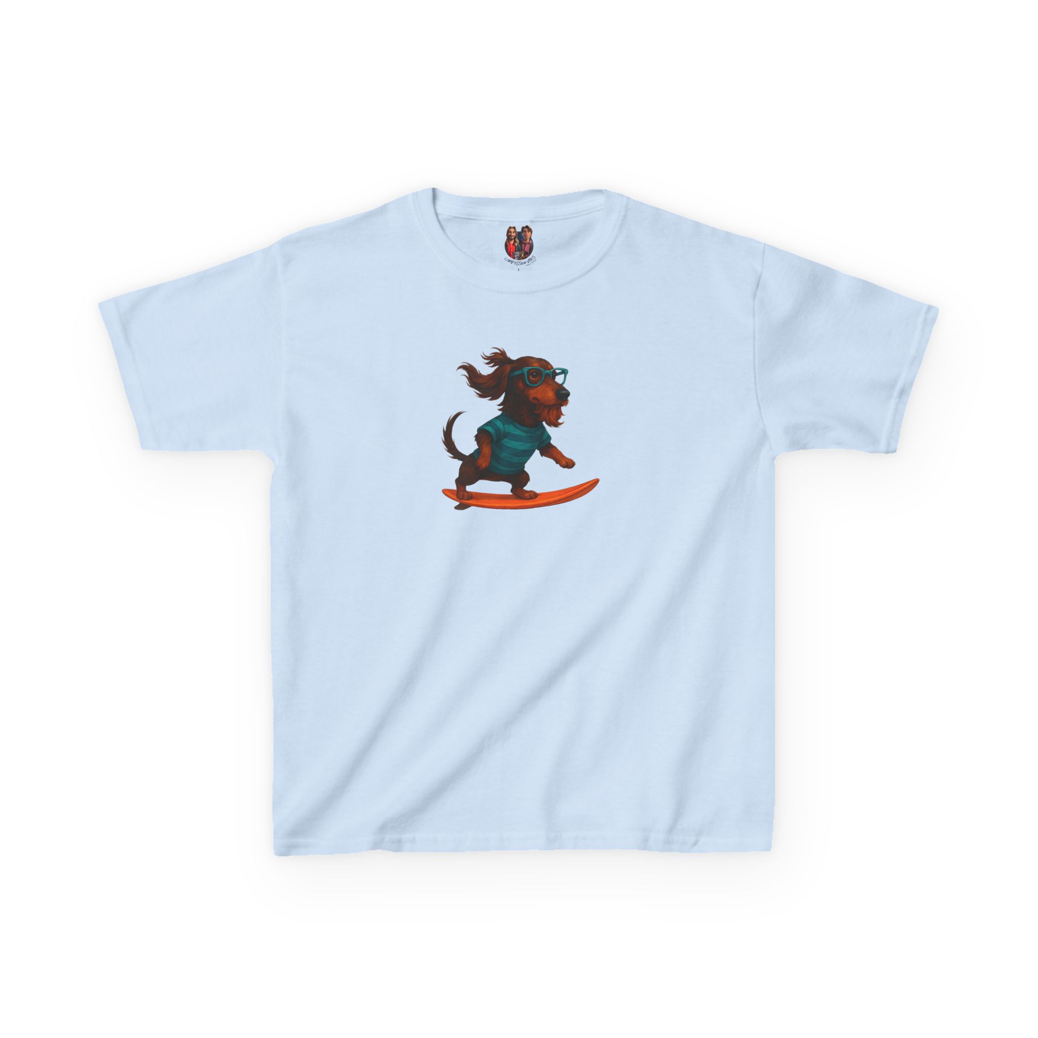 This oversised dog kids tee features cool surf kids tee artwork and surf lover child tshirt style, blending dog lover child tshirt charm, dog print kids tee, and surf print child tshirt color.