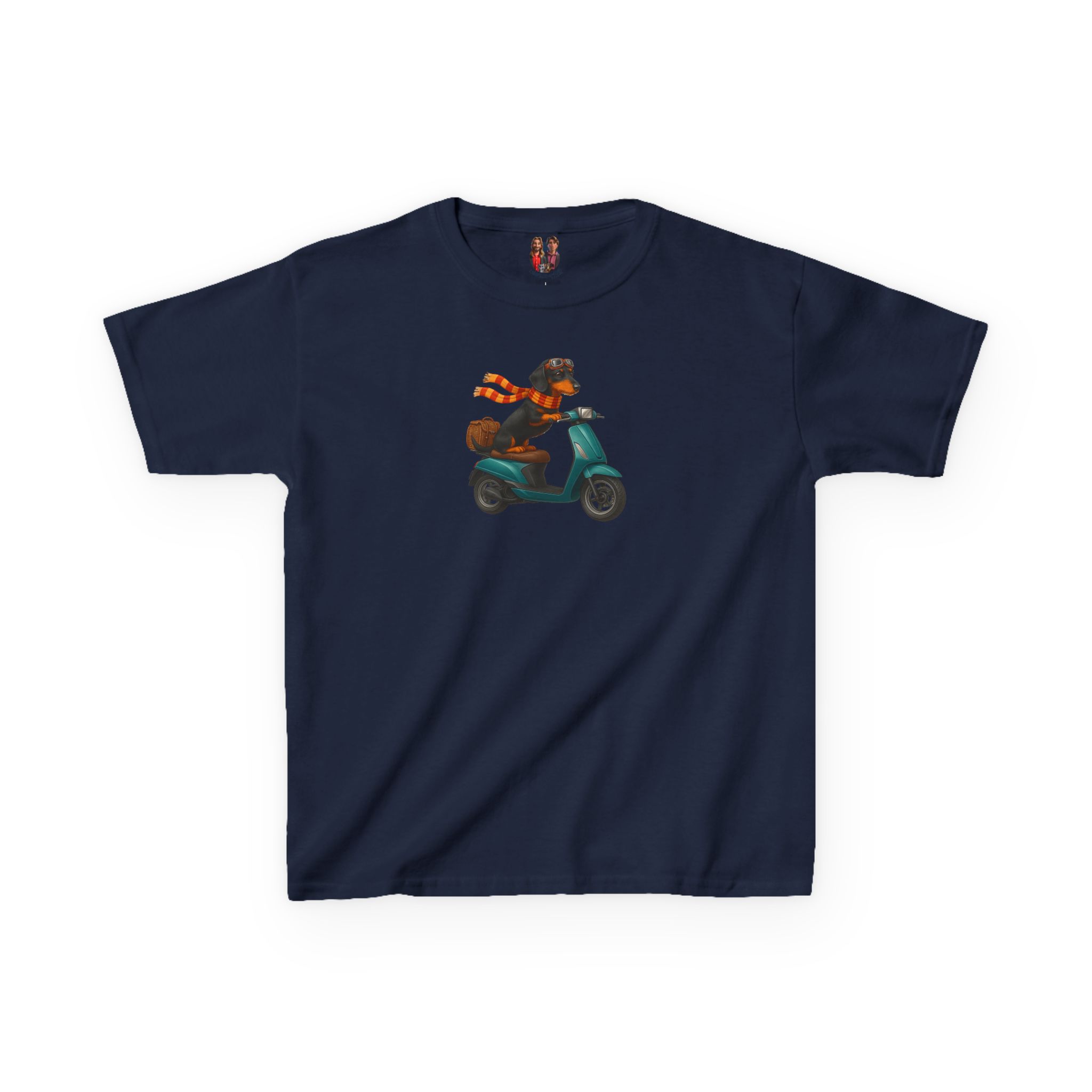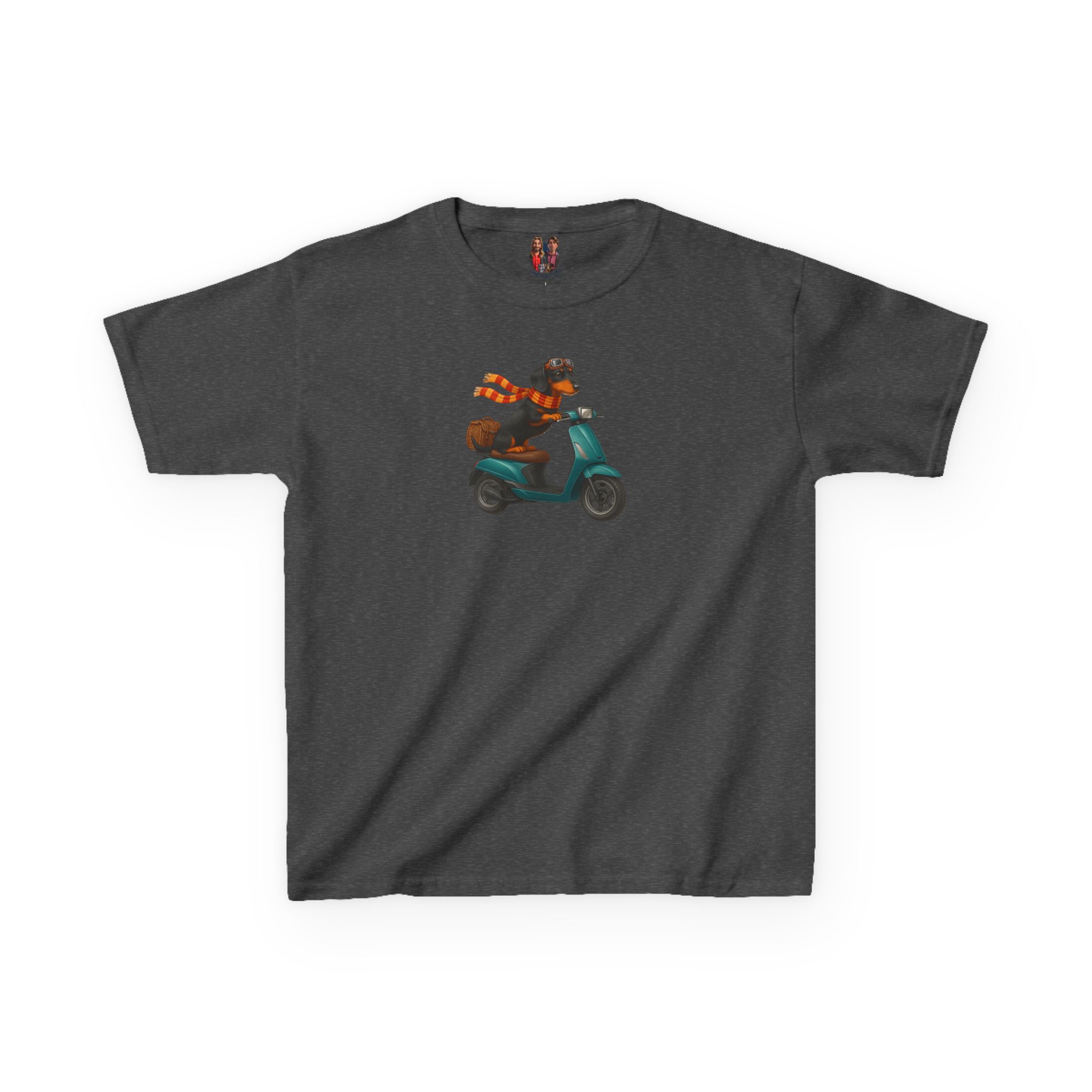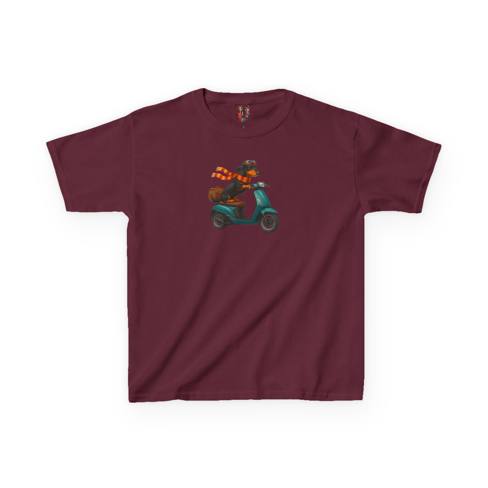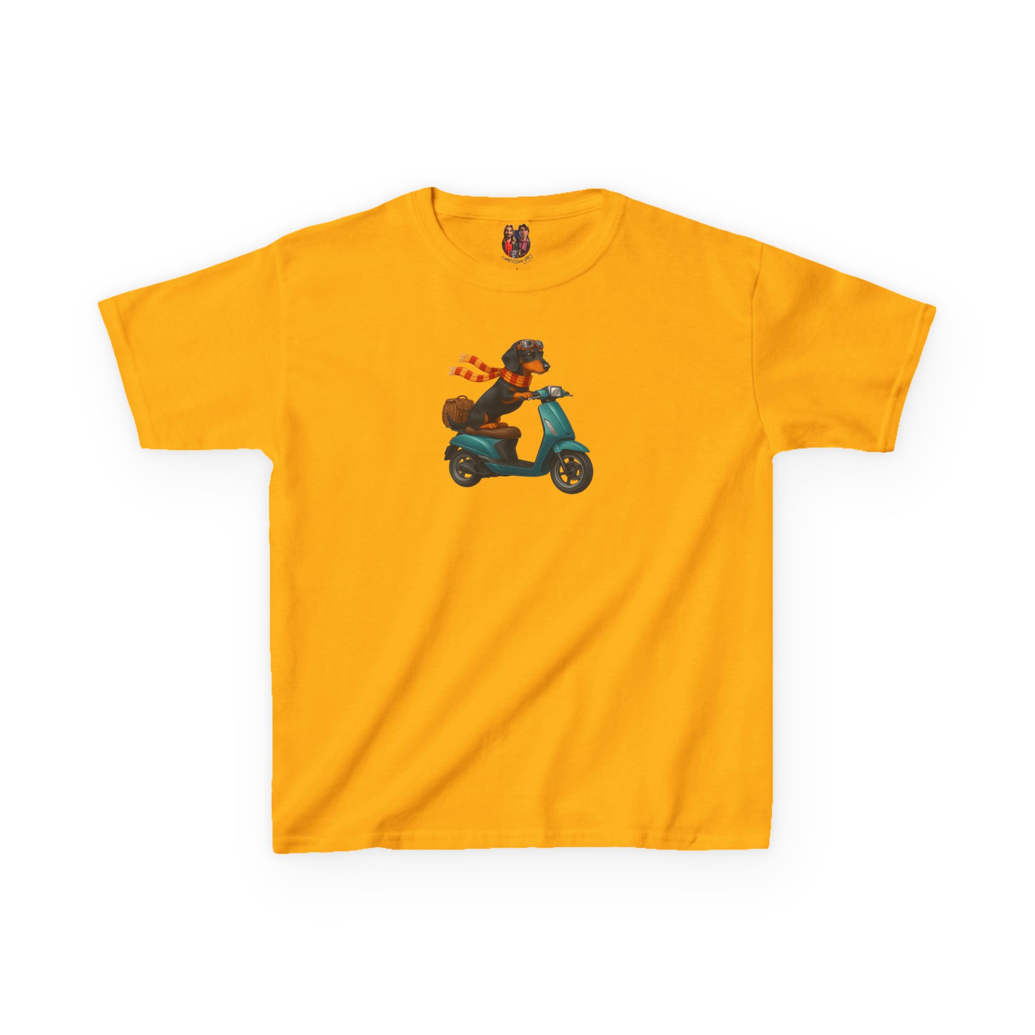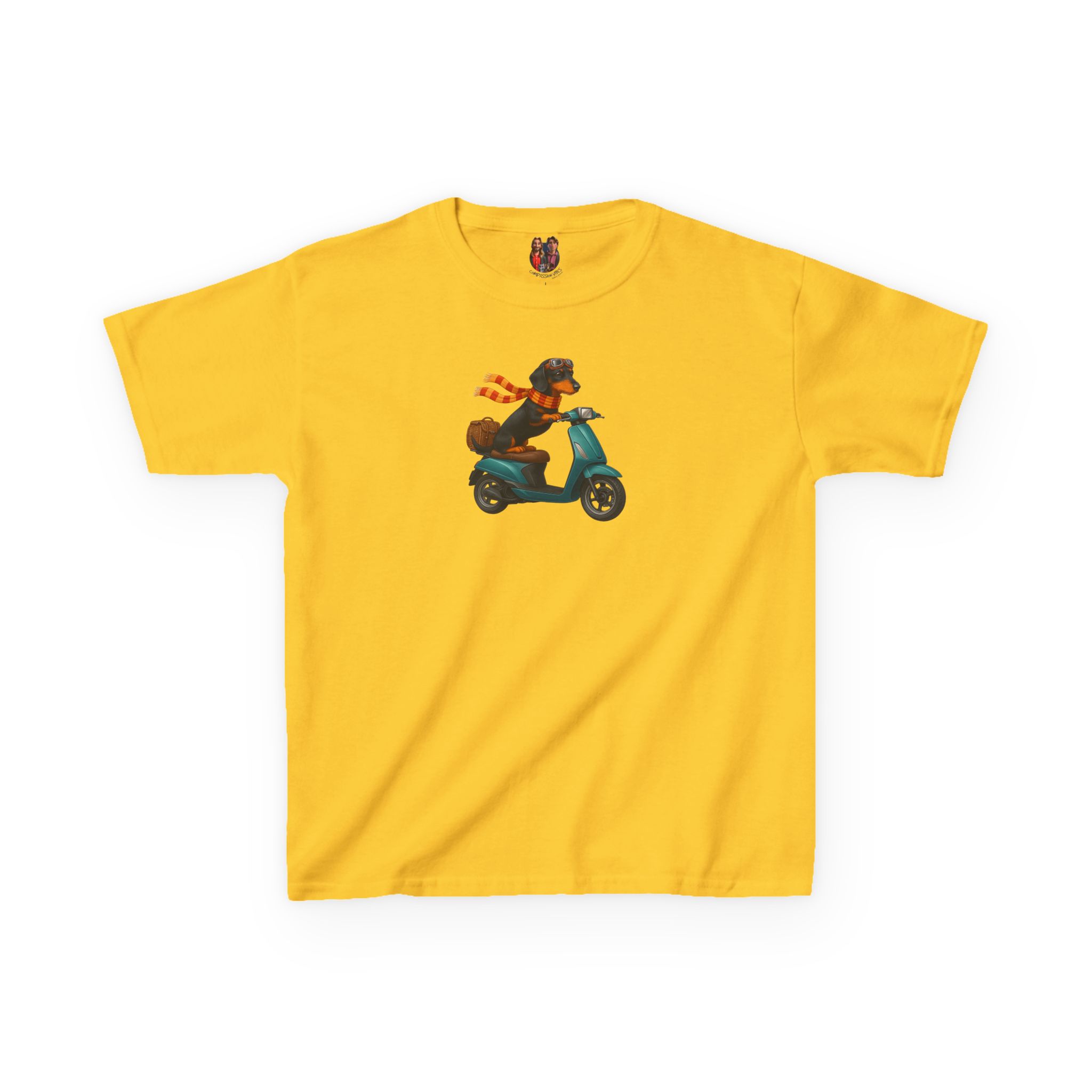 This funny dog kids tee, starring a fearless funny dachshund, races into fashion as a dog scooter kids tee.