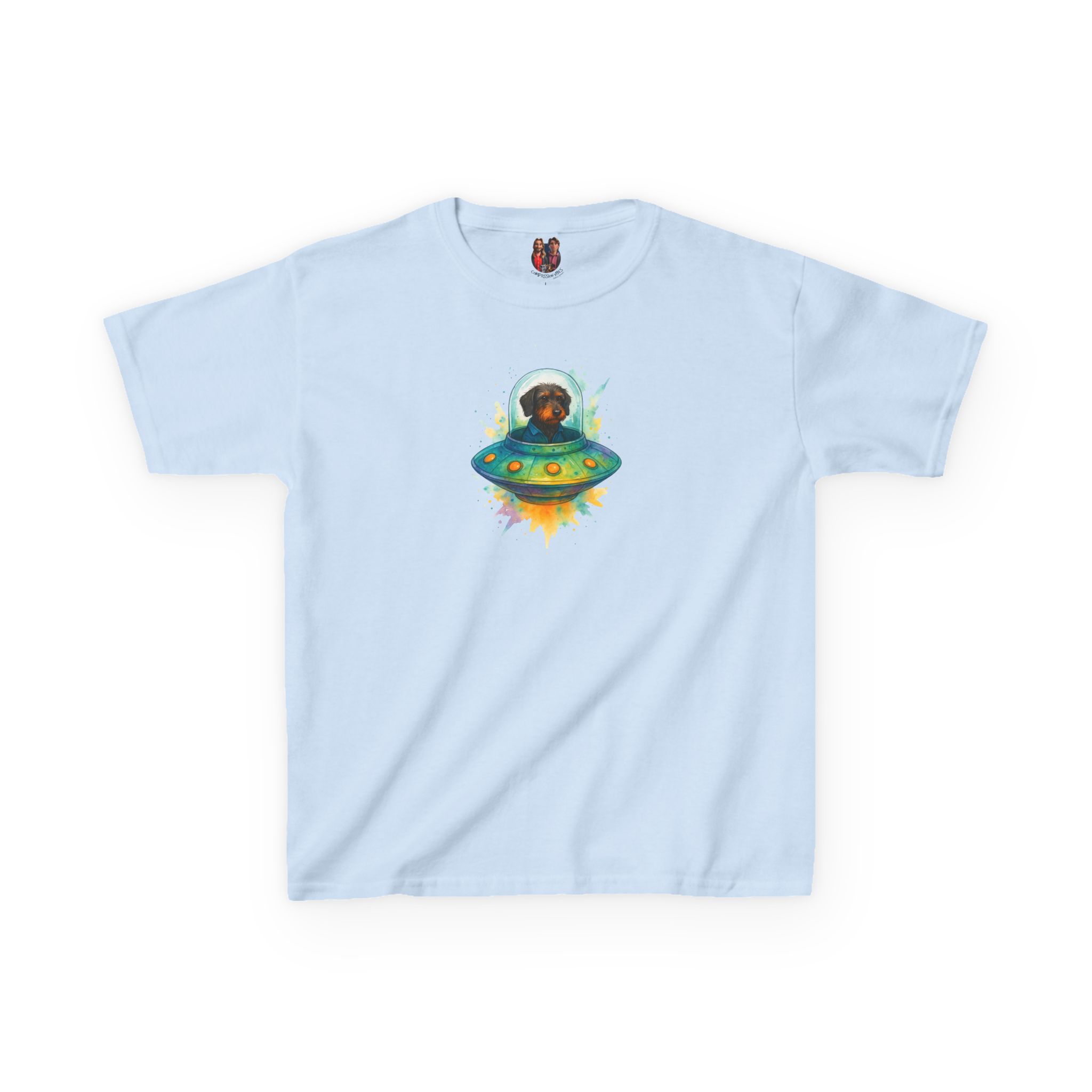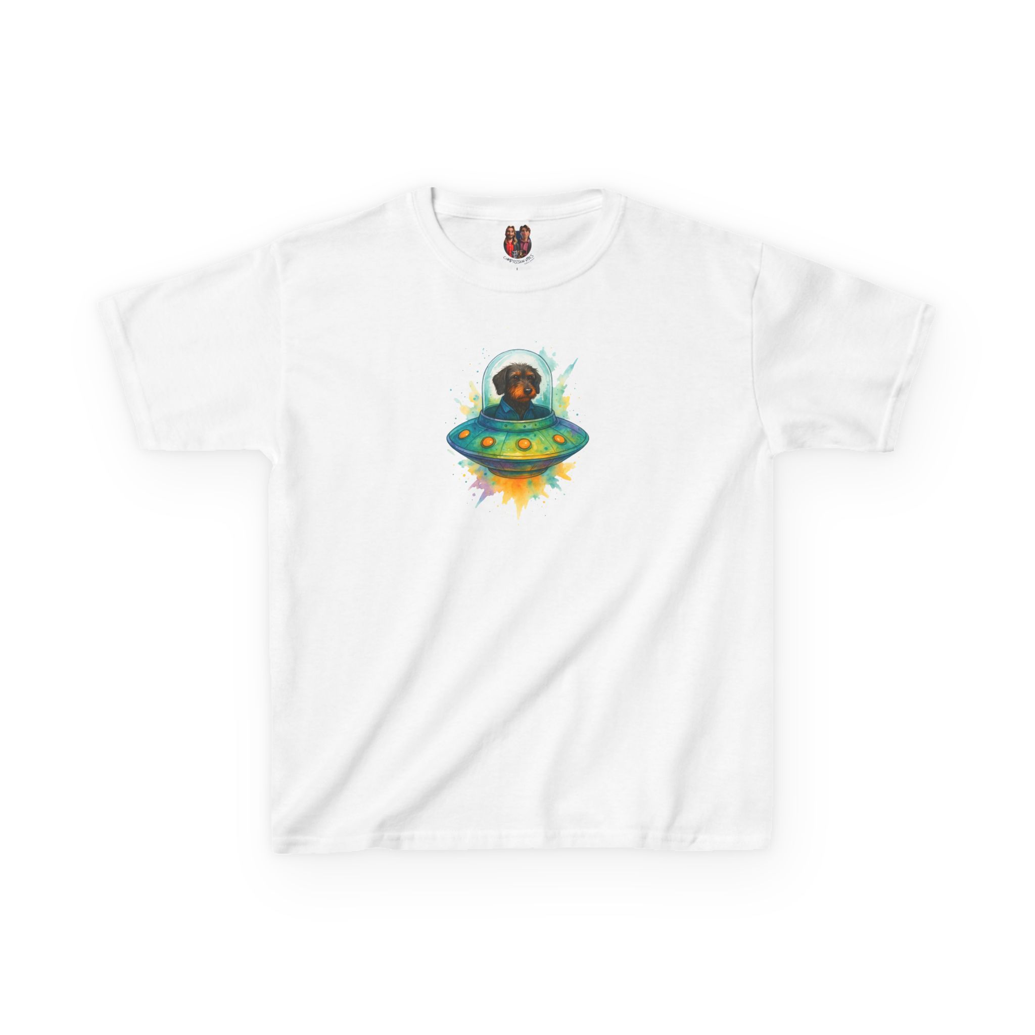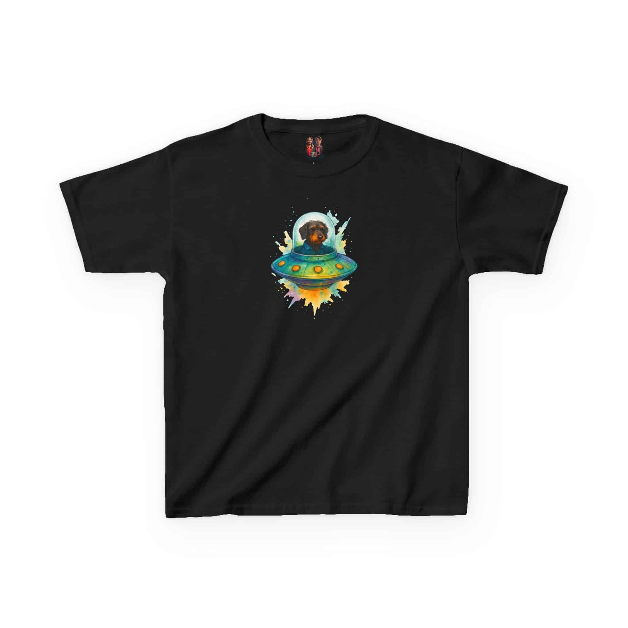 Featuring a unique dog print made for every dog lover, this shirt combines sci-fi humor, eco kidswear, and adventure fashion.
