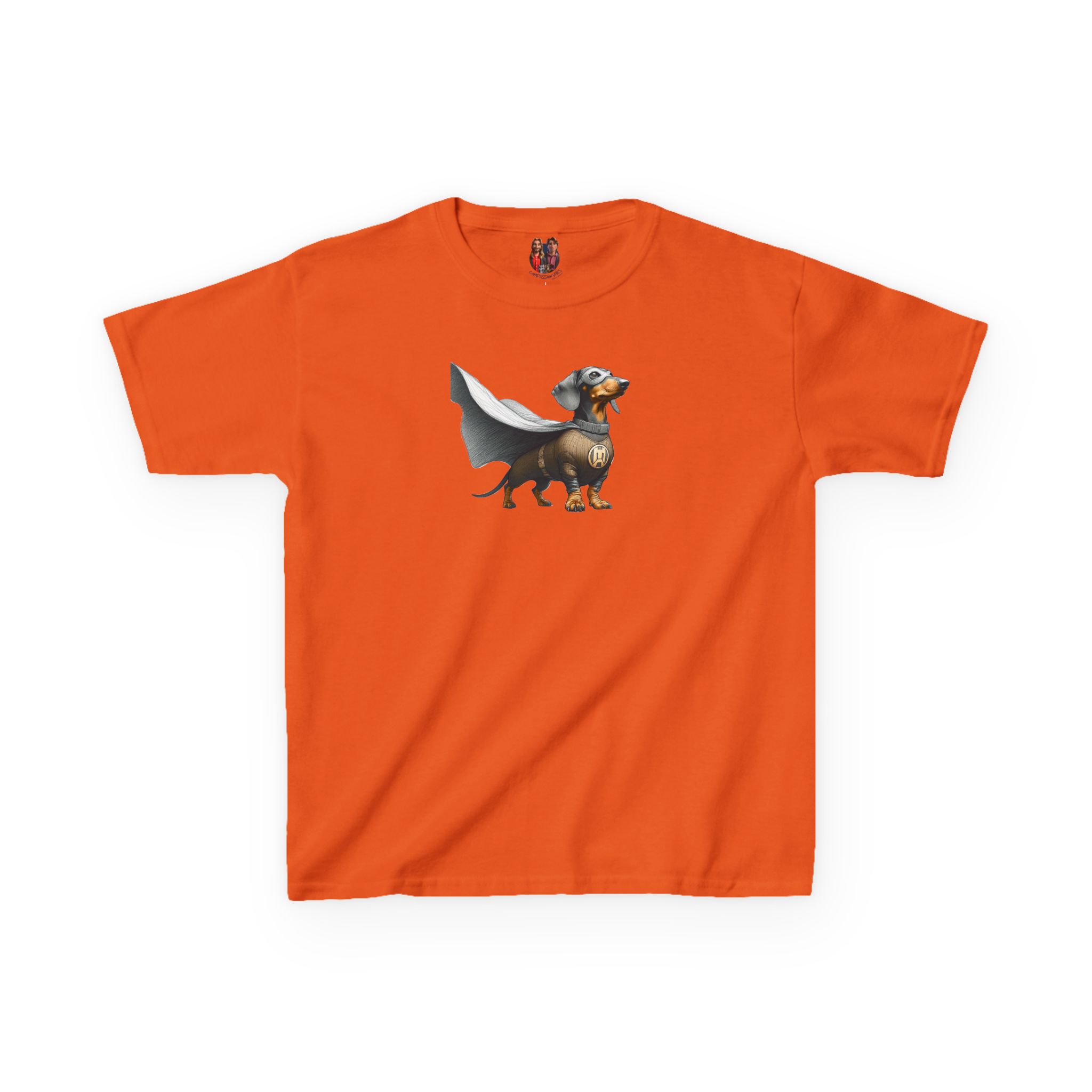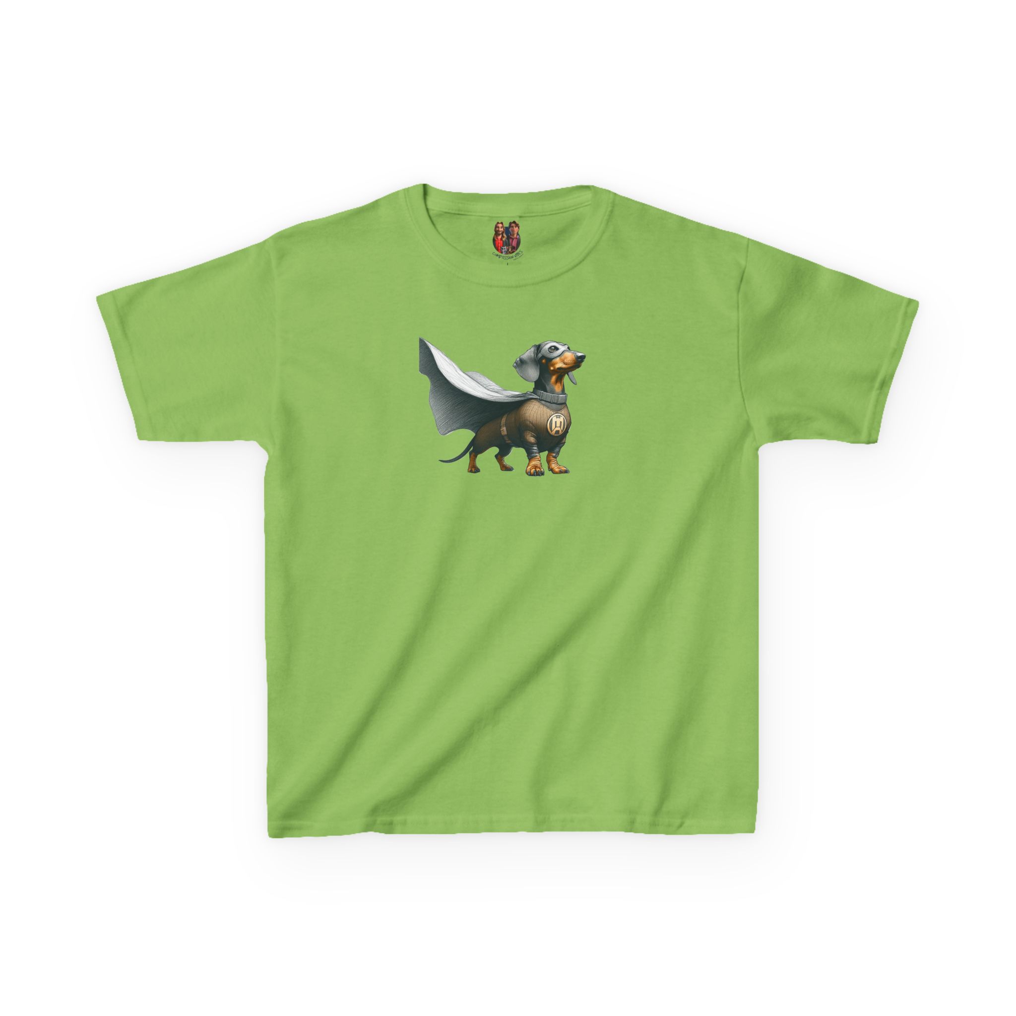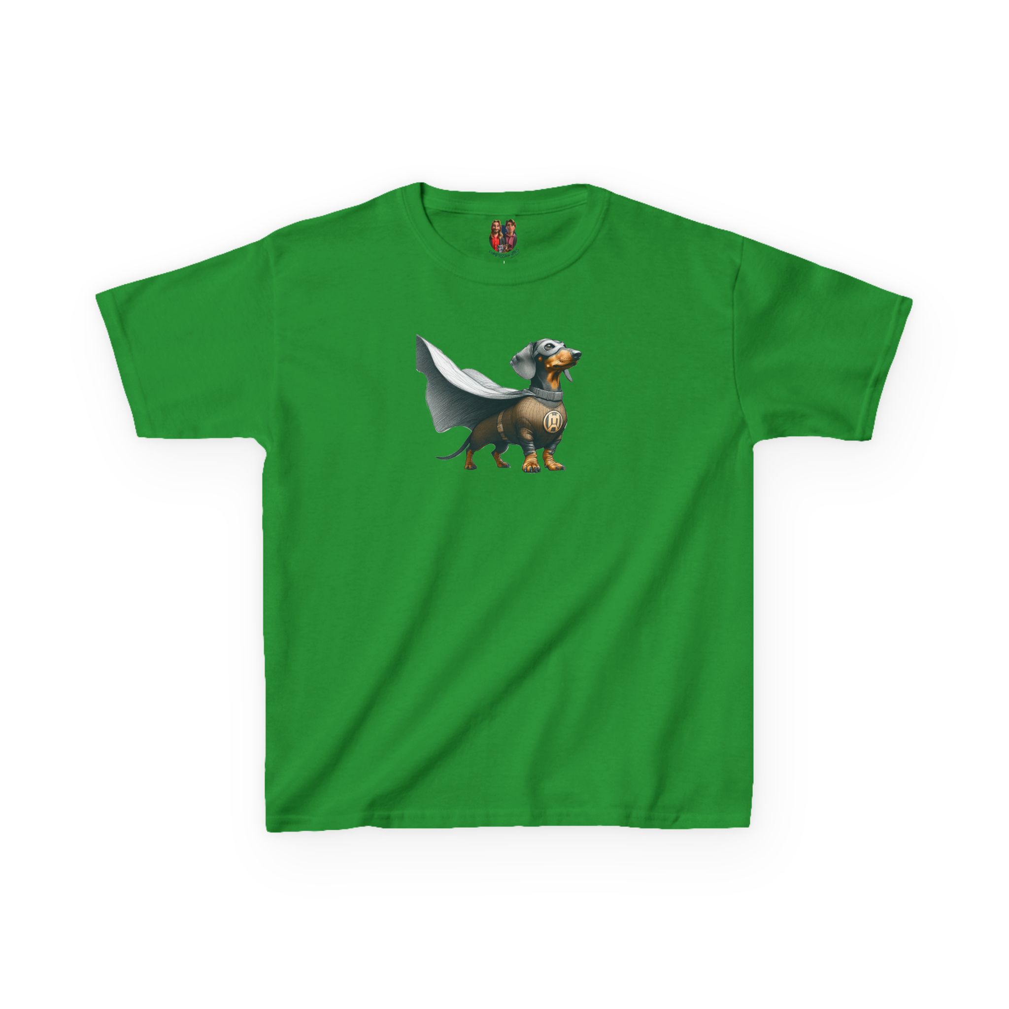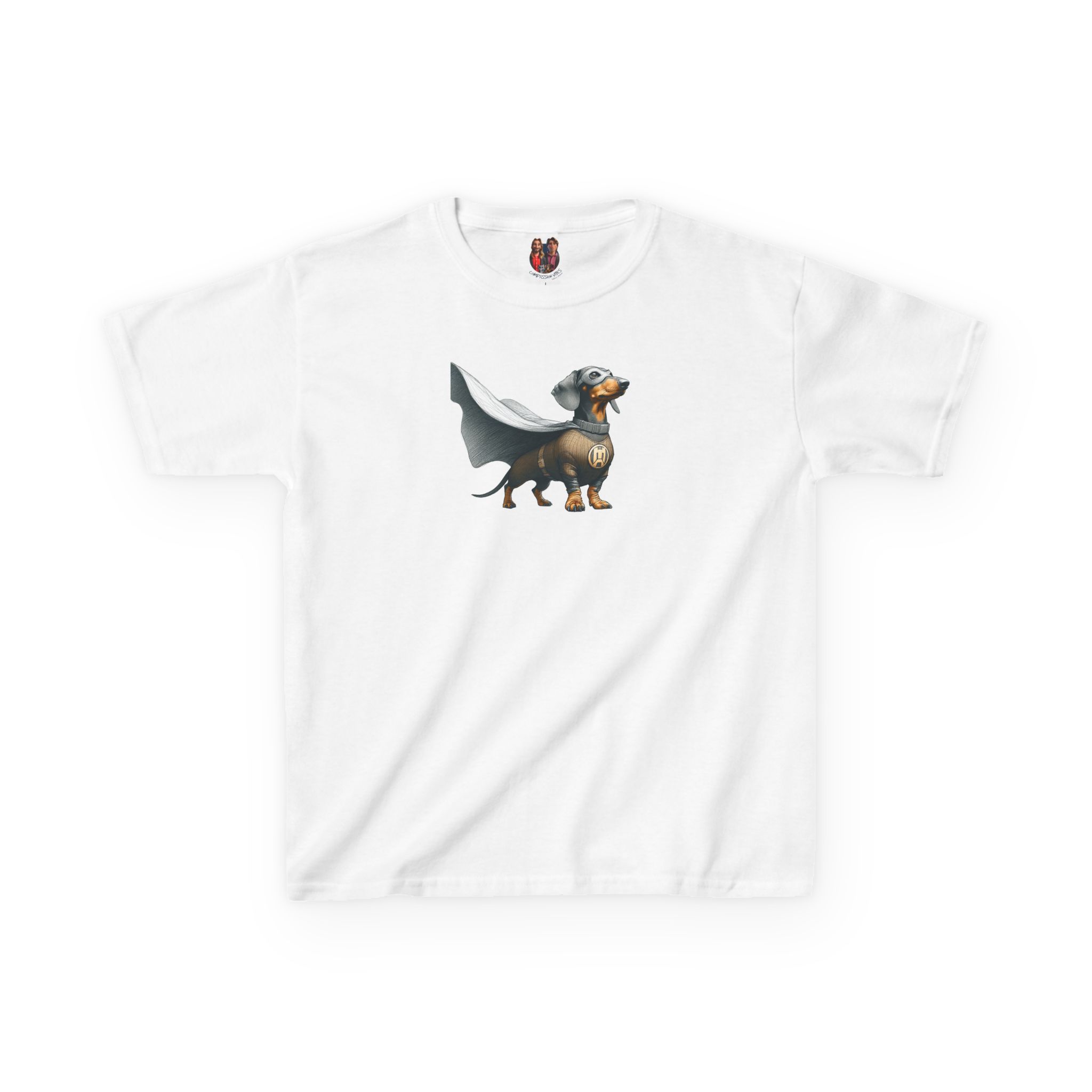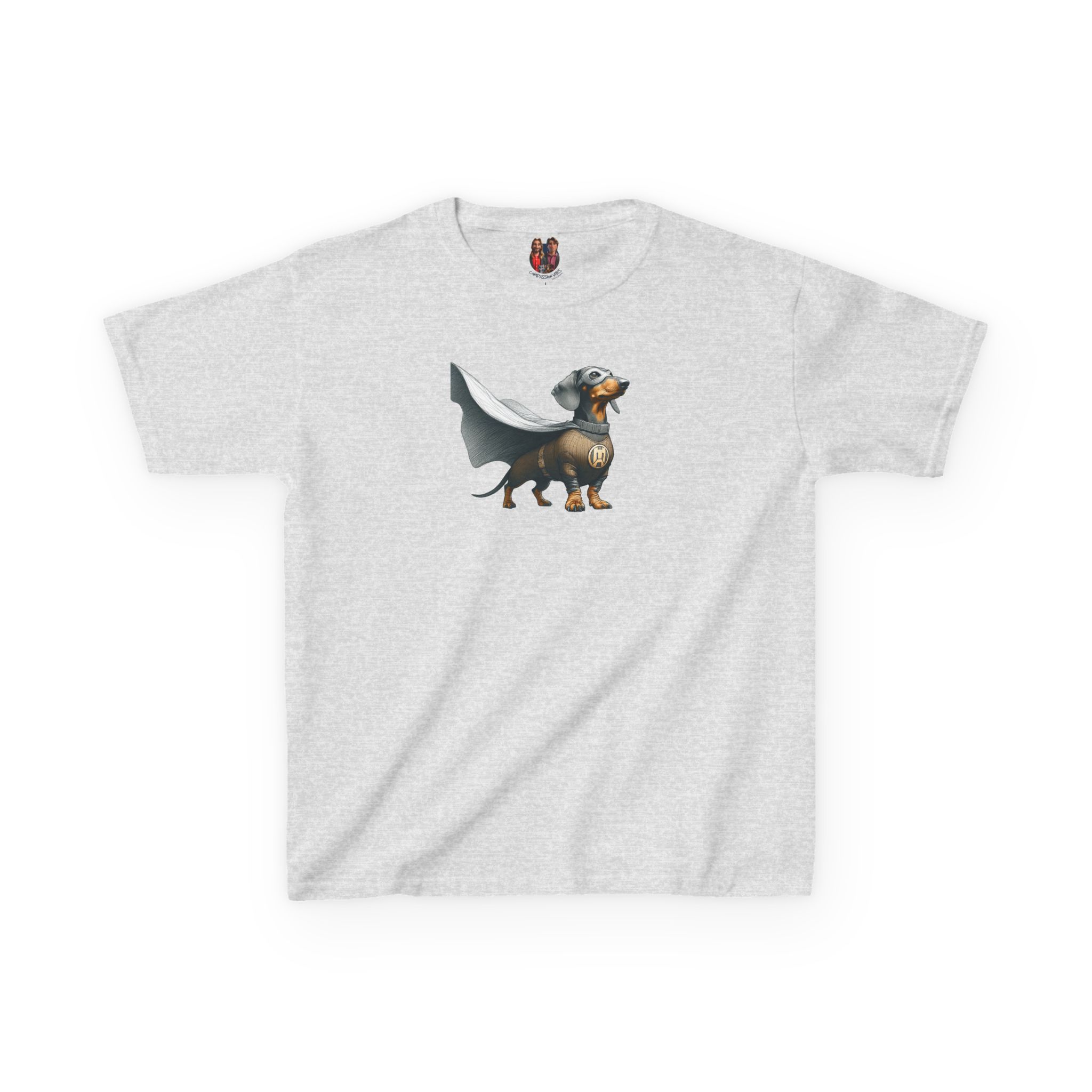 The dog hero child tshirt features a playful dog super hero graphic on an oversized kids tee base.