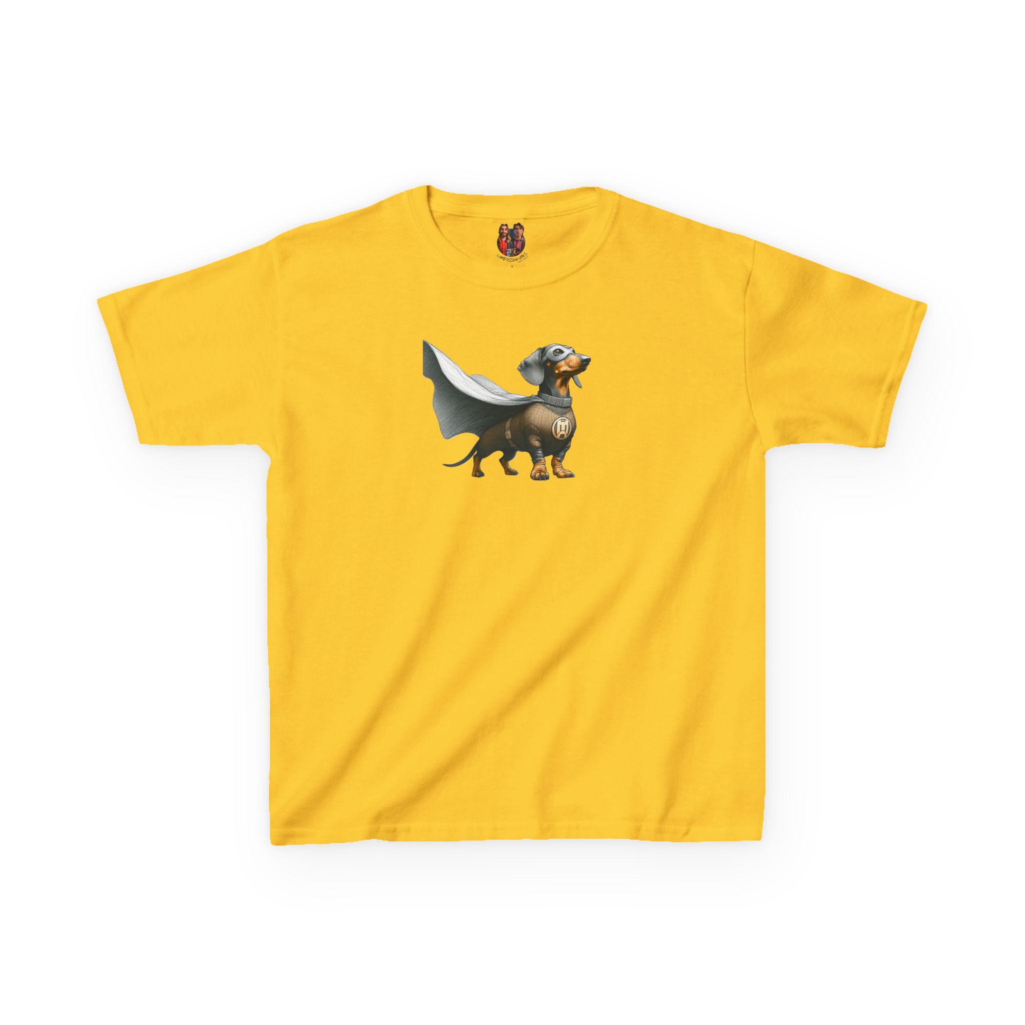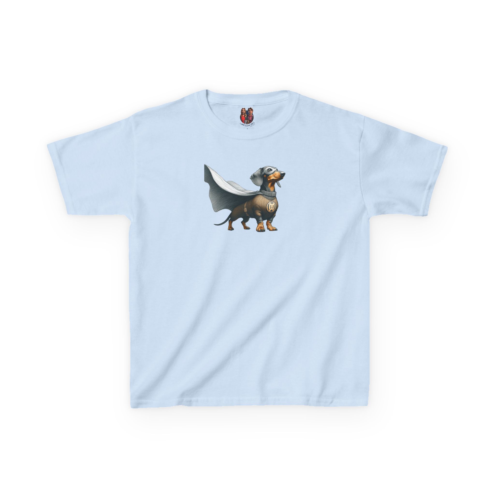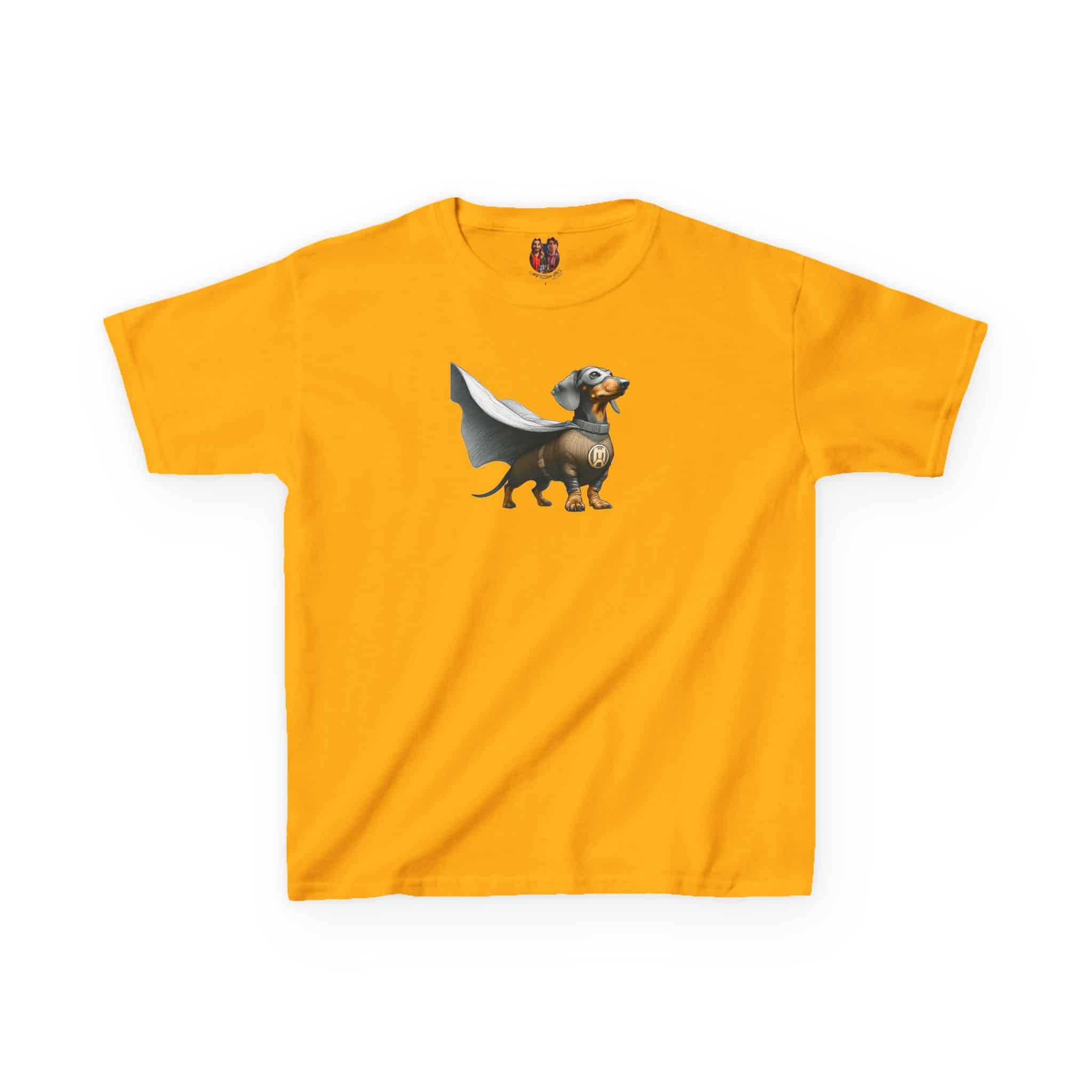 This funny dog kids tee continues the saga of the funny dachshund in a fantasy child tshirt universe.