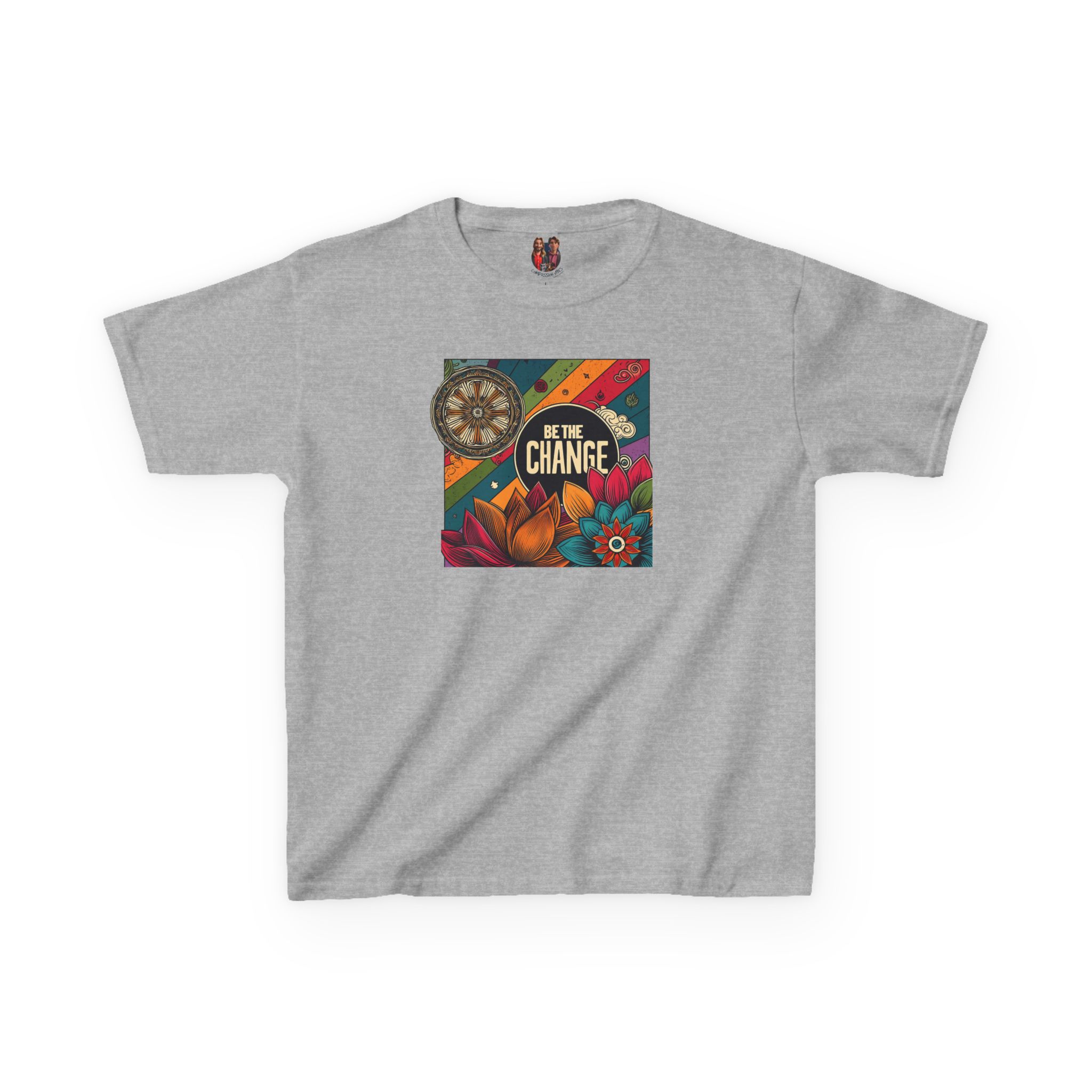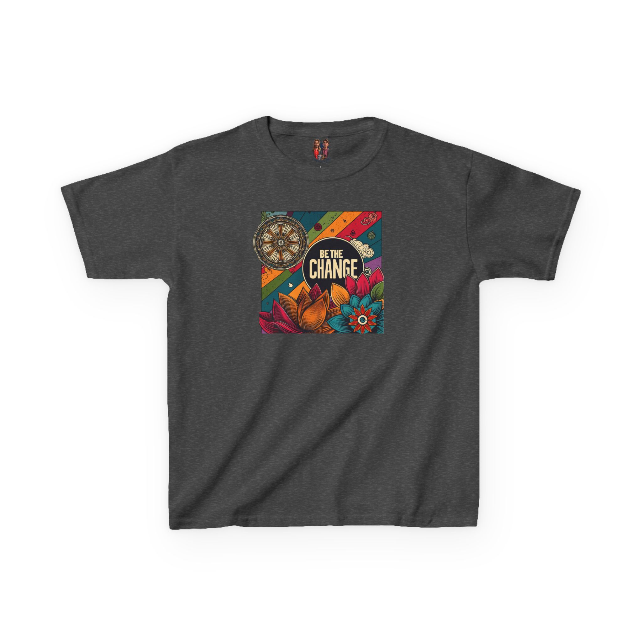 The kids heavy cotton tee is perfect for everyday use. The fabric is 100% cotton for solid colors. Polyester is included for heather-color variants. These fabrics are prime materials for printing. The shoulders have twill tape for improved durability. The collar is curl resistant due to ribbed knitting. There are no seams along the sides.