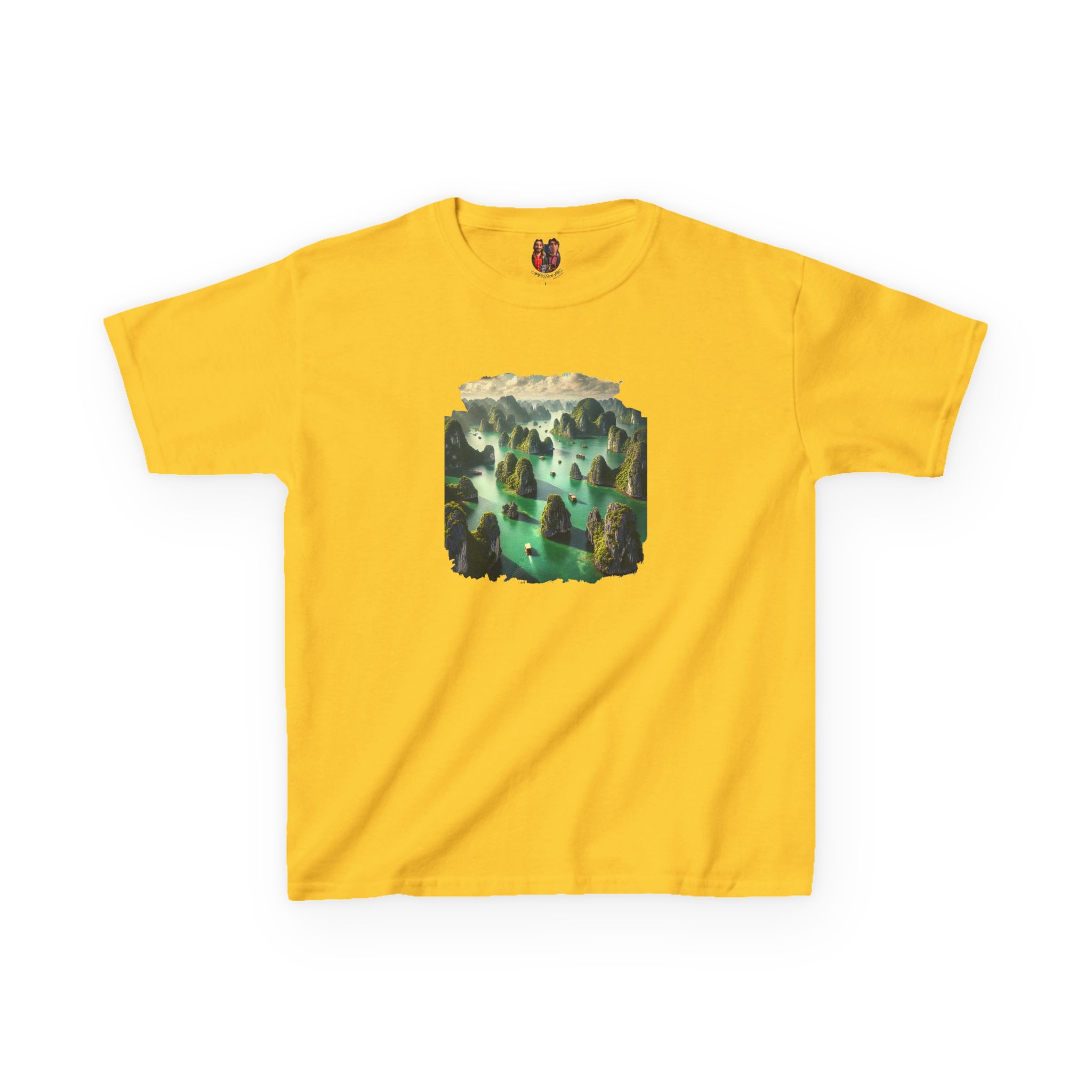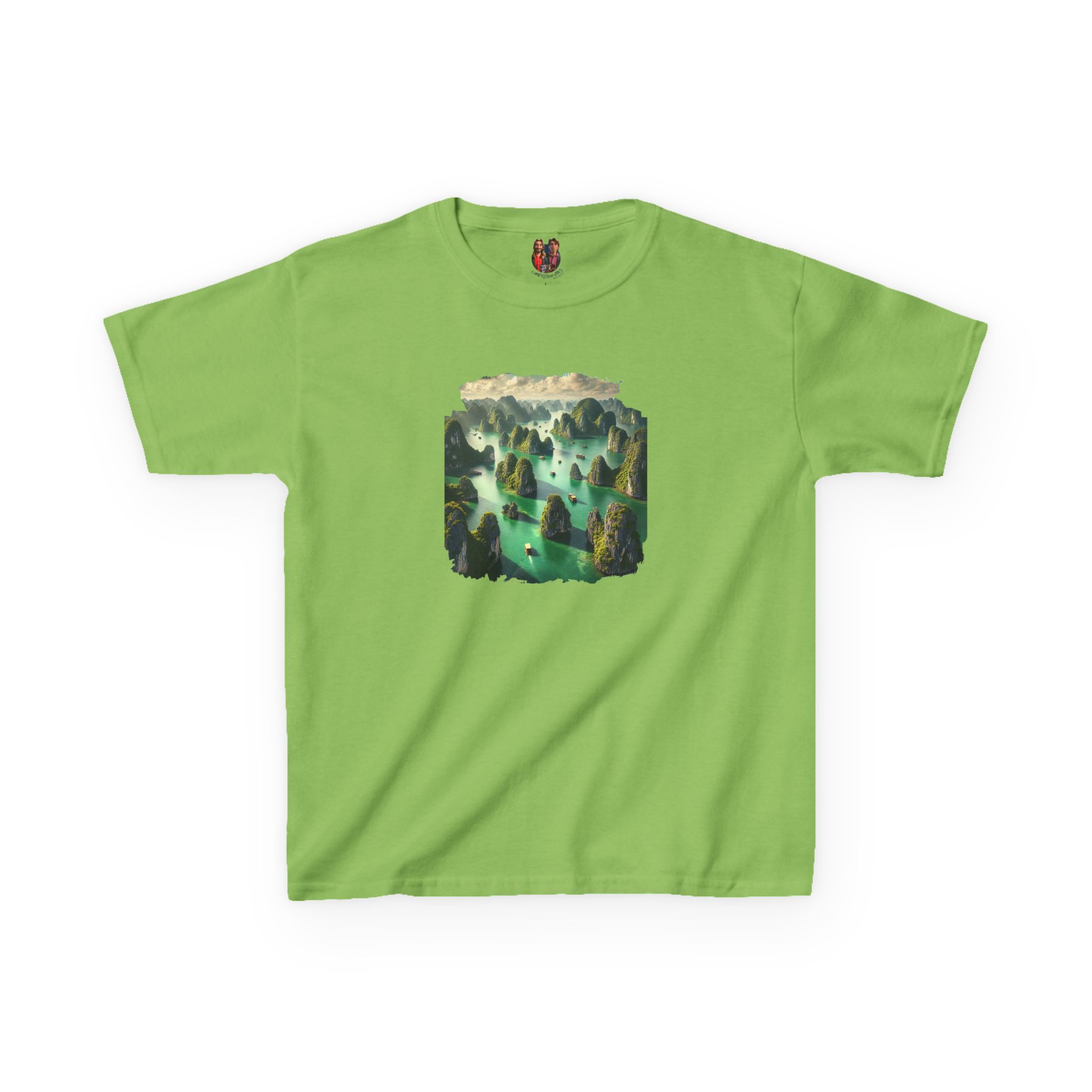 This ha long bay kids tee, a stunning landscape child tshirt, mixes nature graphic kids tee art and nature print with nature oversized child tshirt softness.