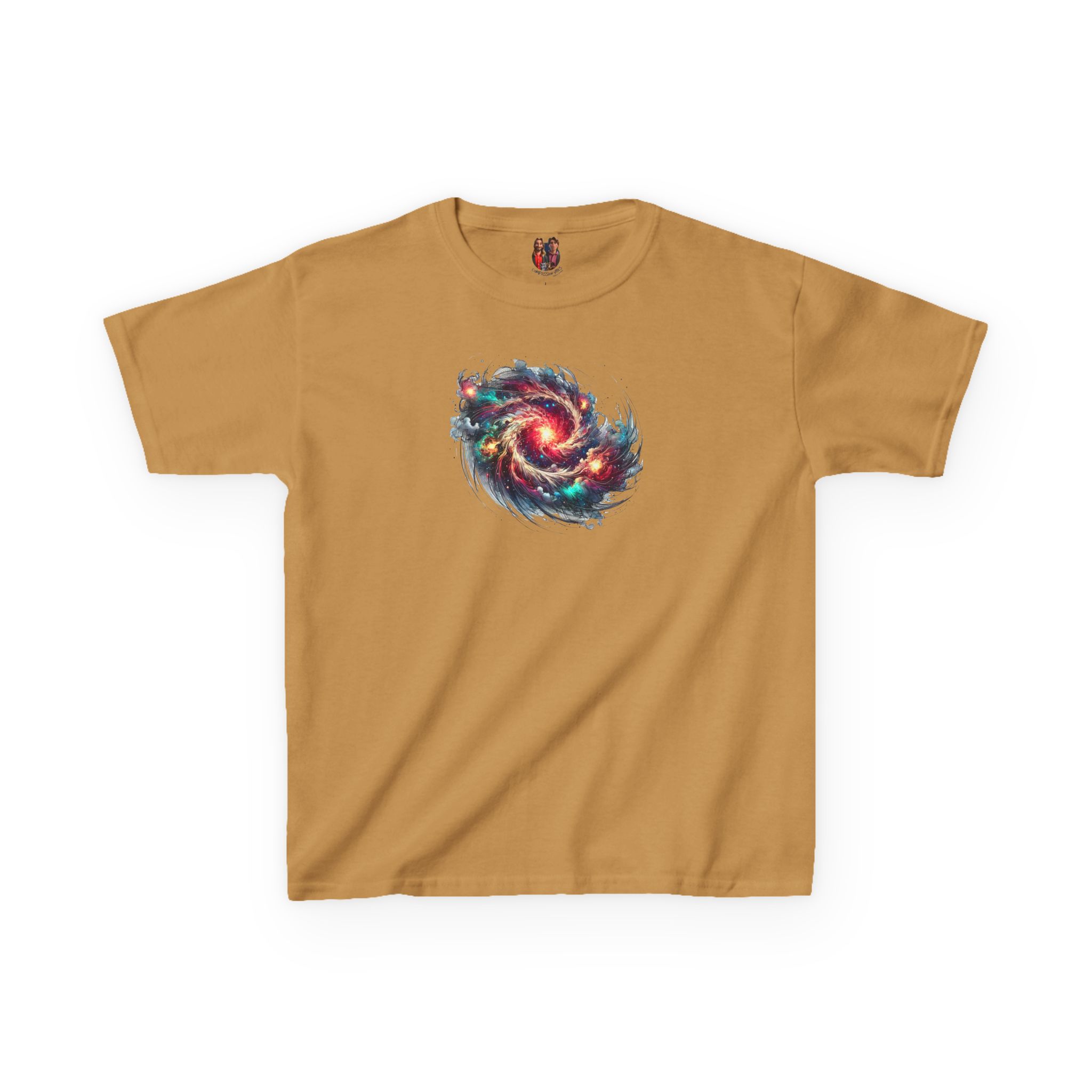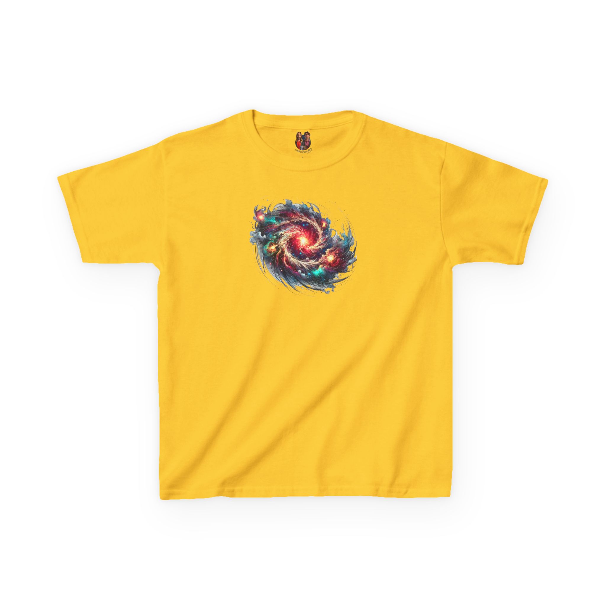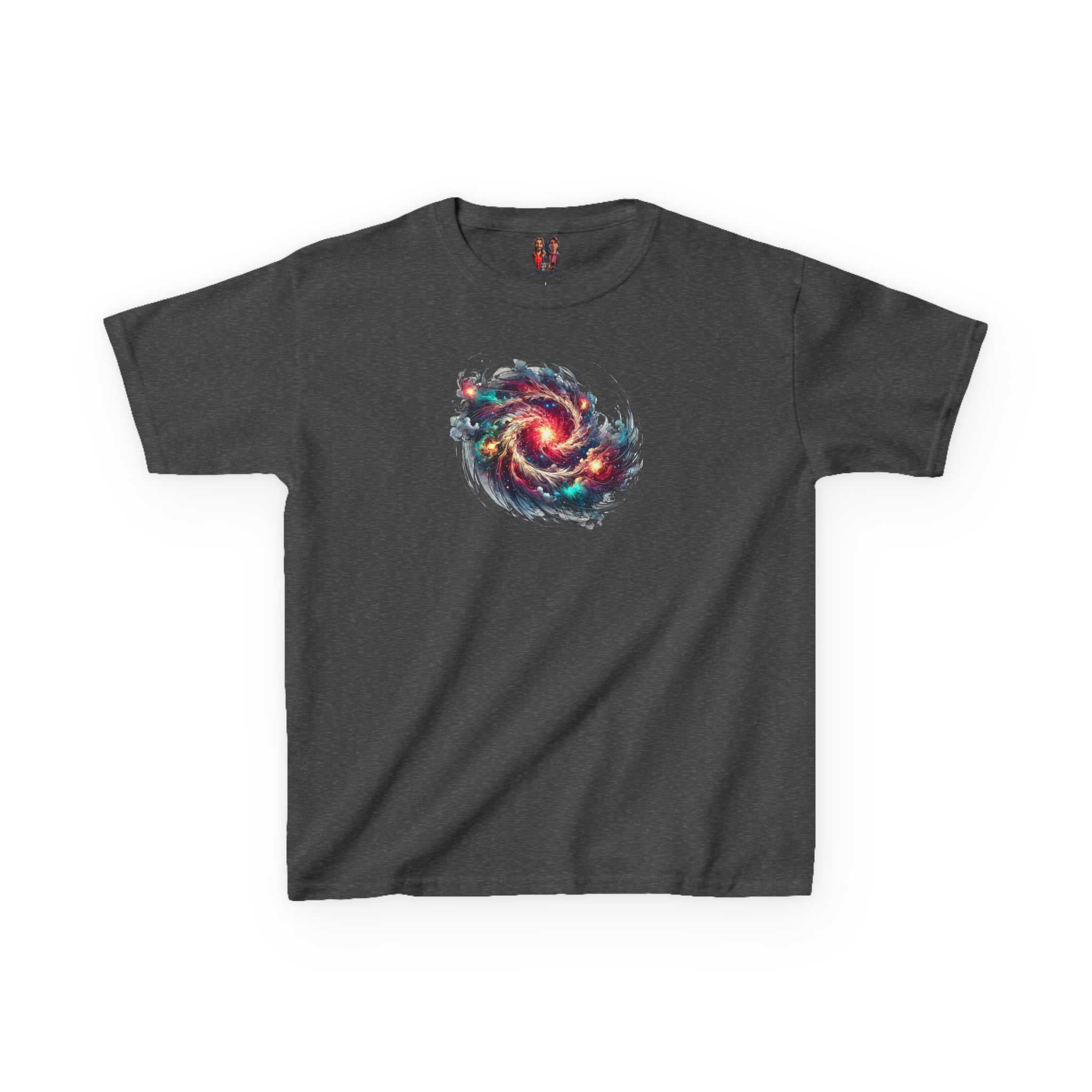 The kids heavy cotton tee is perfect for everyday use. The fabric is 100% cotton for solid colors. Polyester is included for heather-color variants. These fabrics are prime materials for printing. The shoulders have twill tape for improved durability. The collar is curl resistant due to ribbed knitting. There are no seams along the sides.