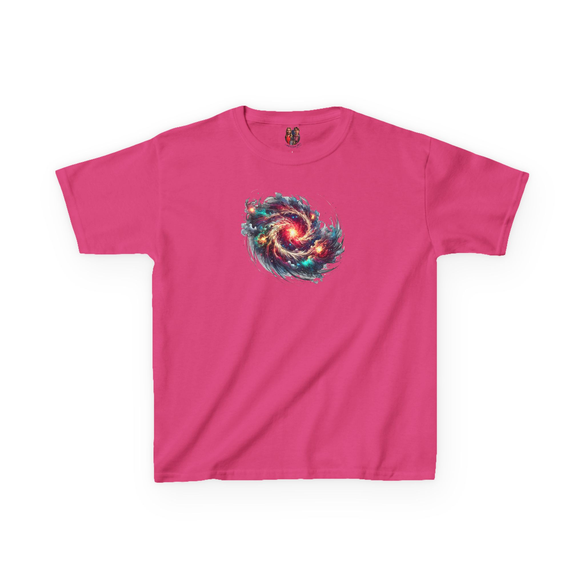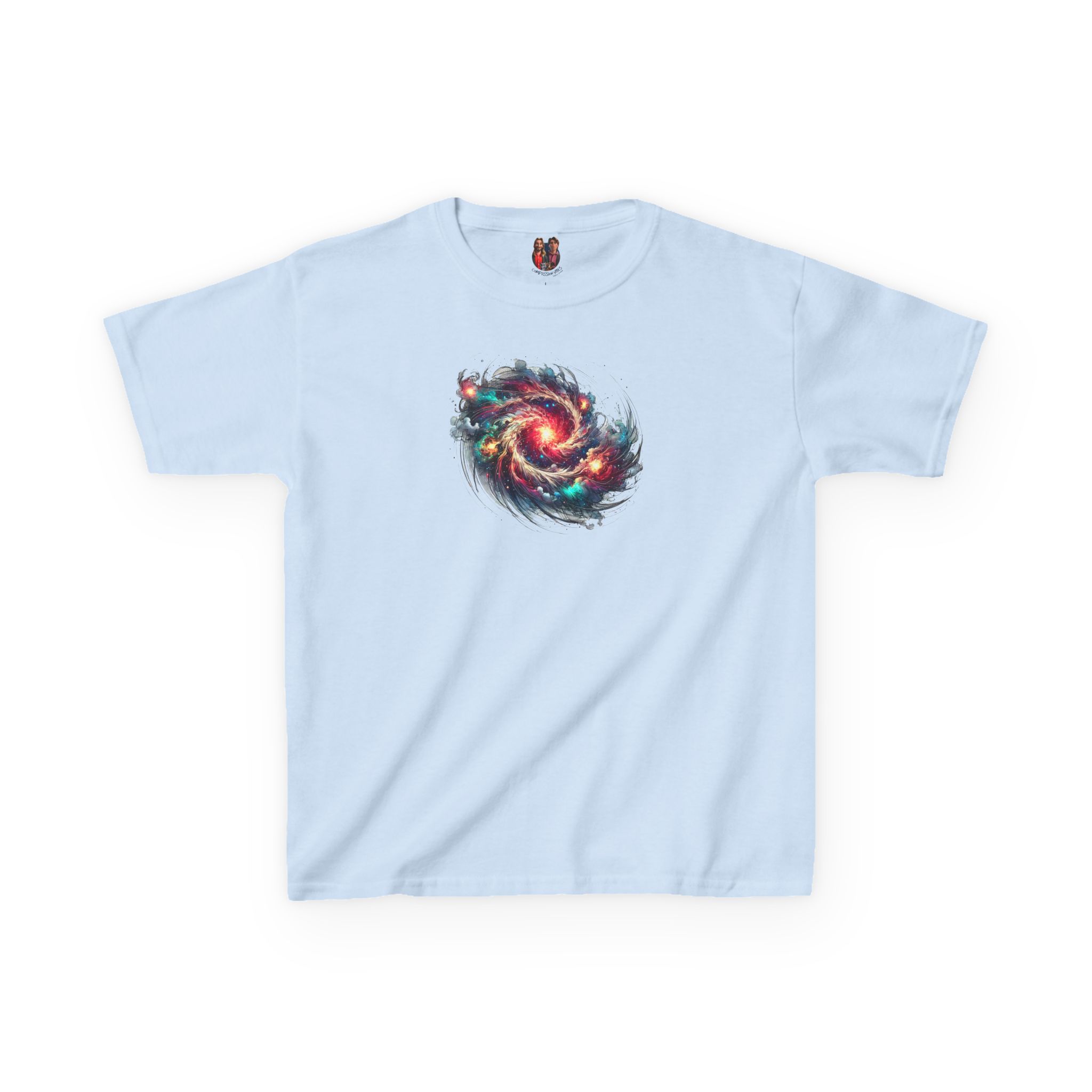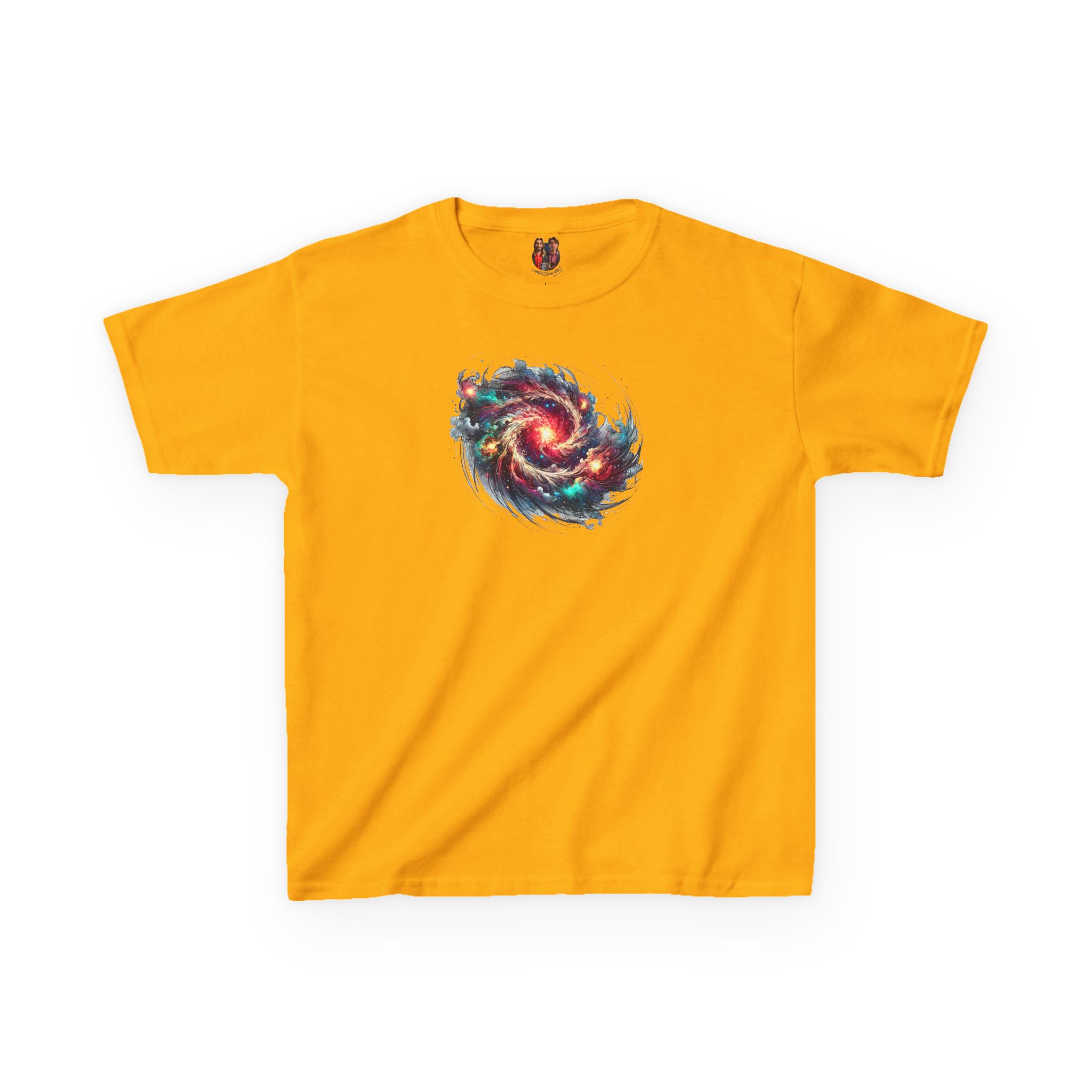 The kids heavy cotton tee is perfect for everyday use. The fabric is 100% cotton for solid colors. Polyester is included for heather-color variants. These fabrics are prime materials for printing. The shoulders have twill tape for improved durability. The collar is curl resistant due to ribbed knitting. There are no seams along the sides.