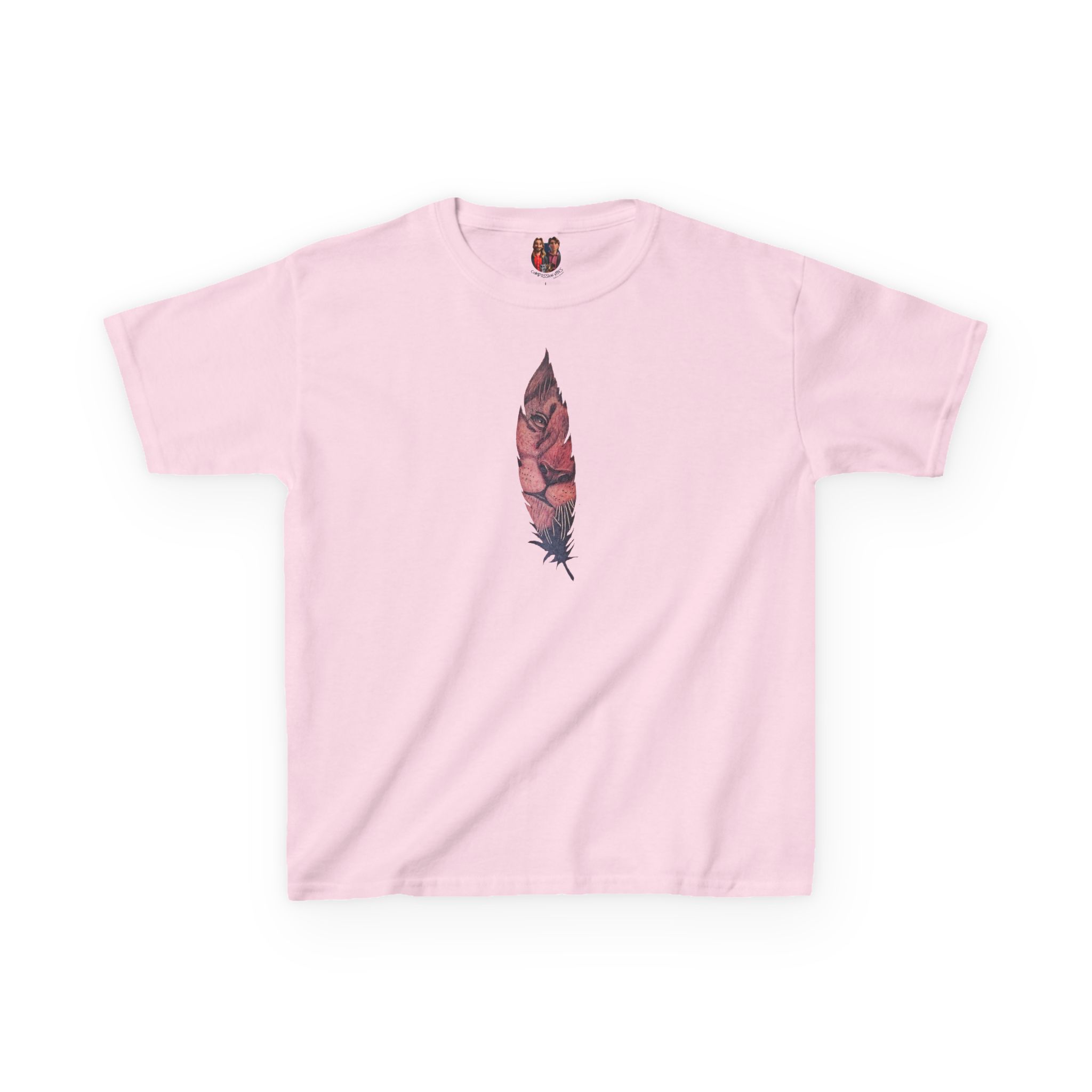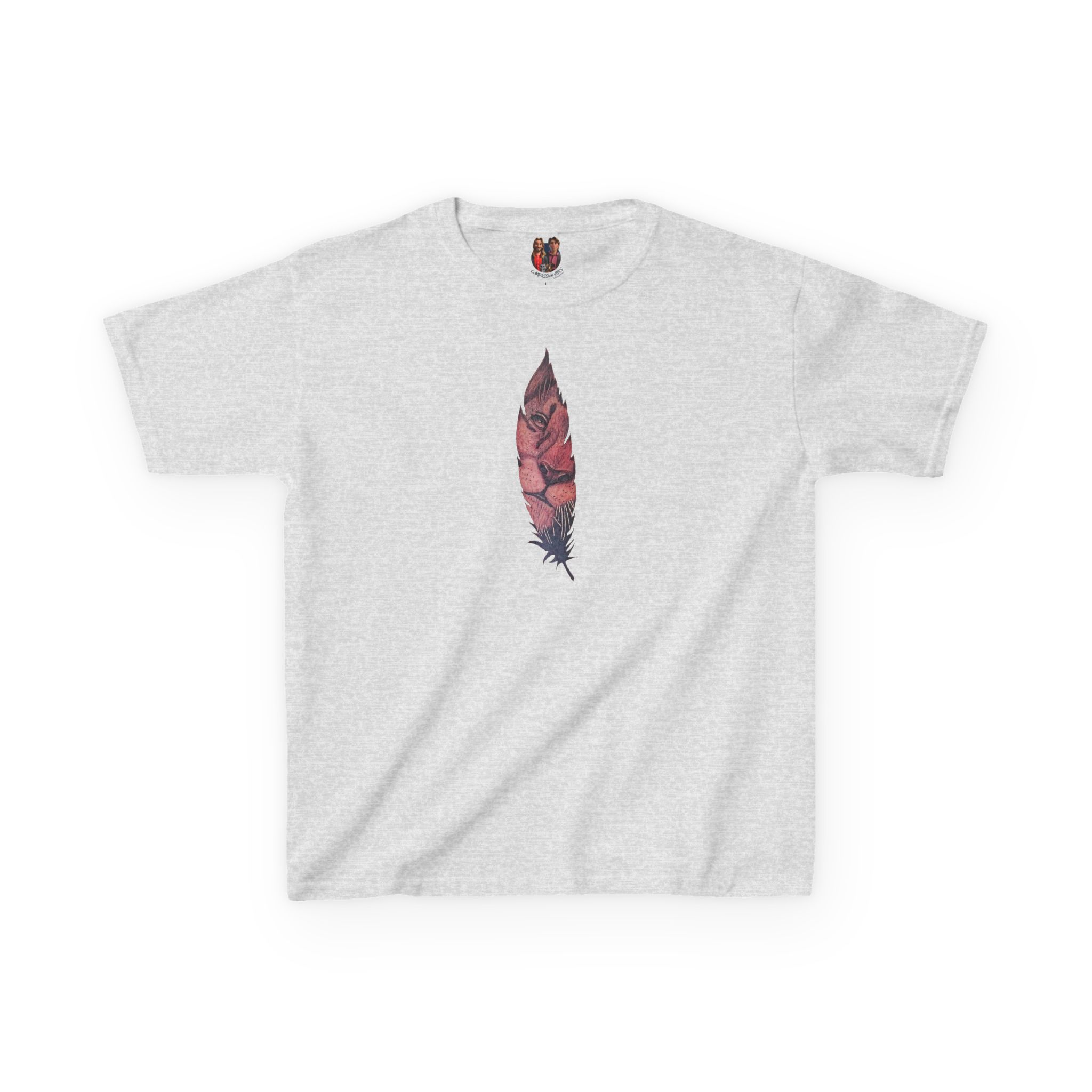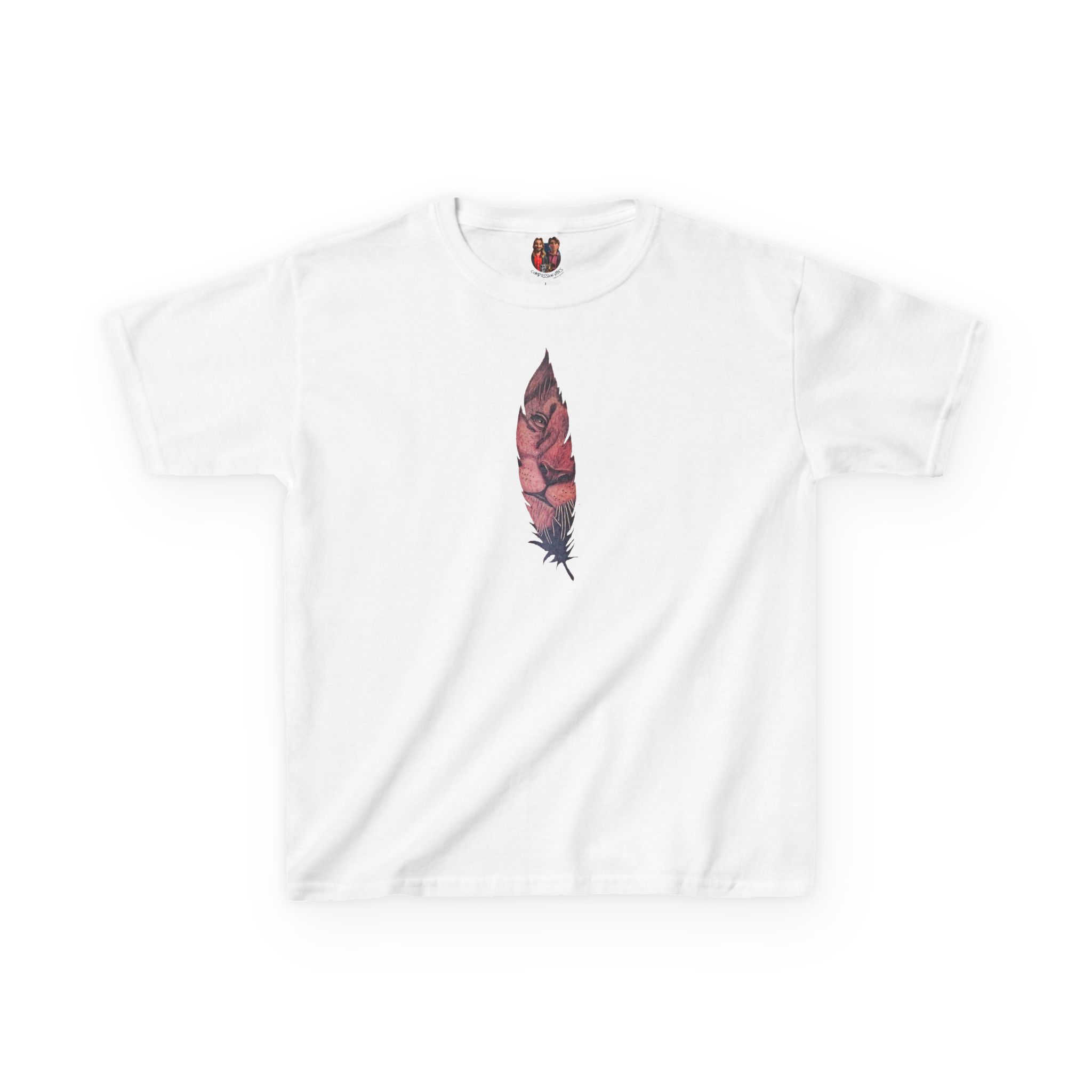 The lion tee symbolizes strength, and the feather tshirt adds a natural touch.