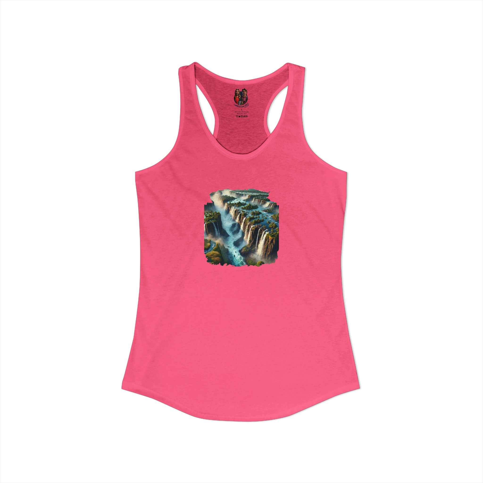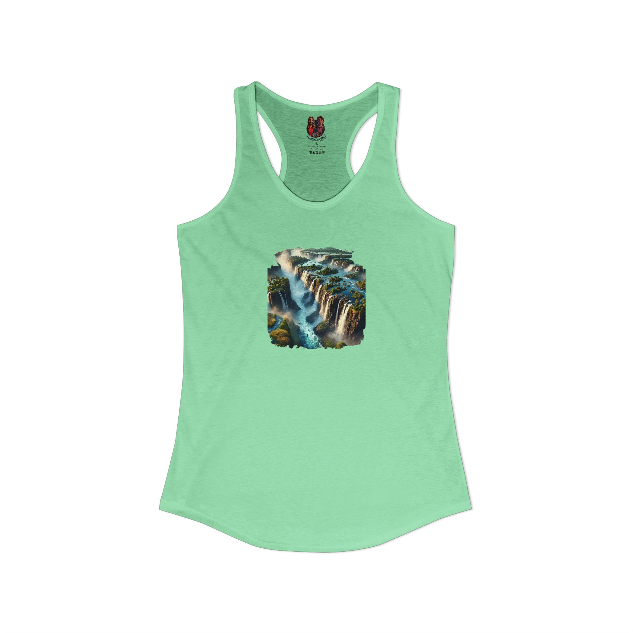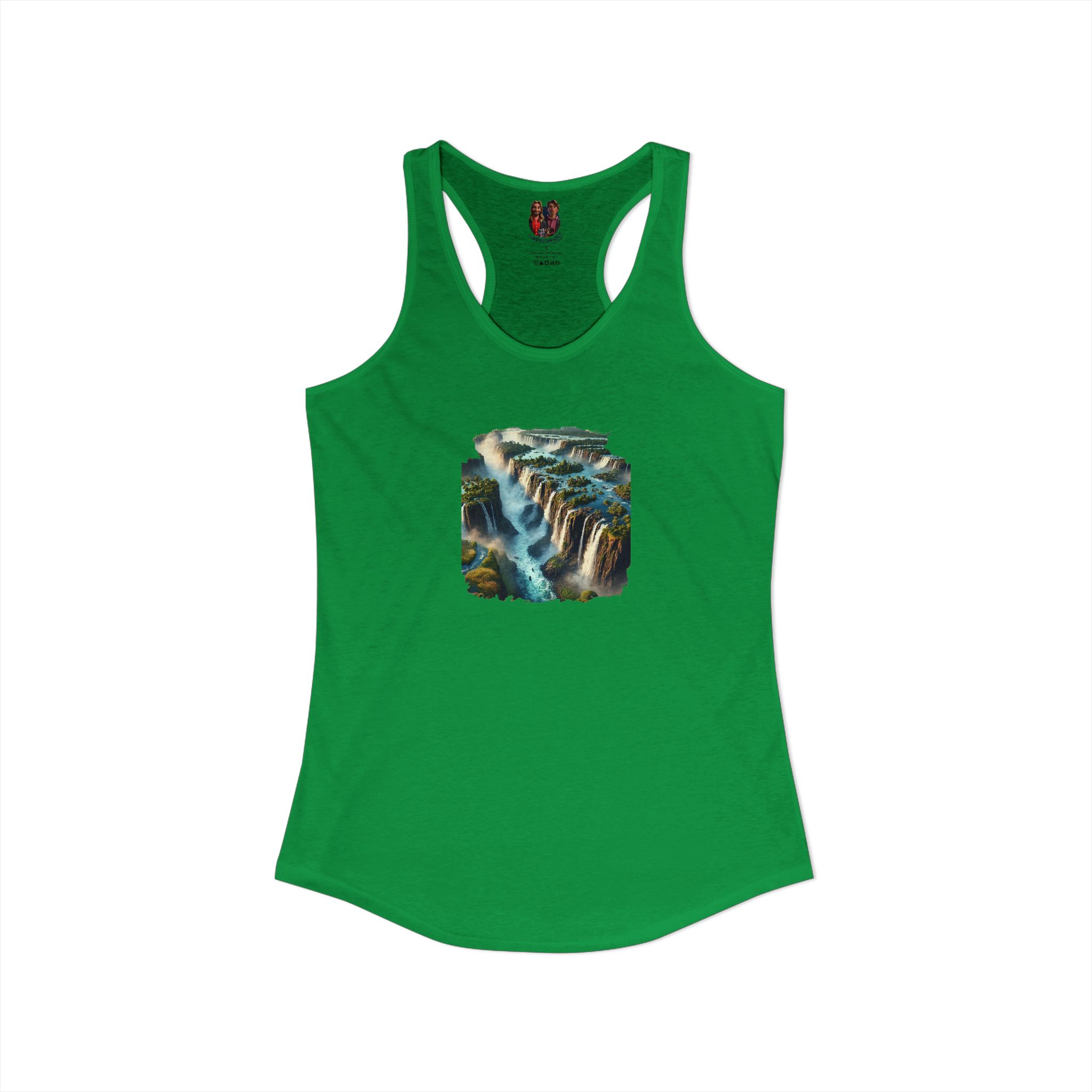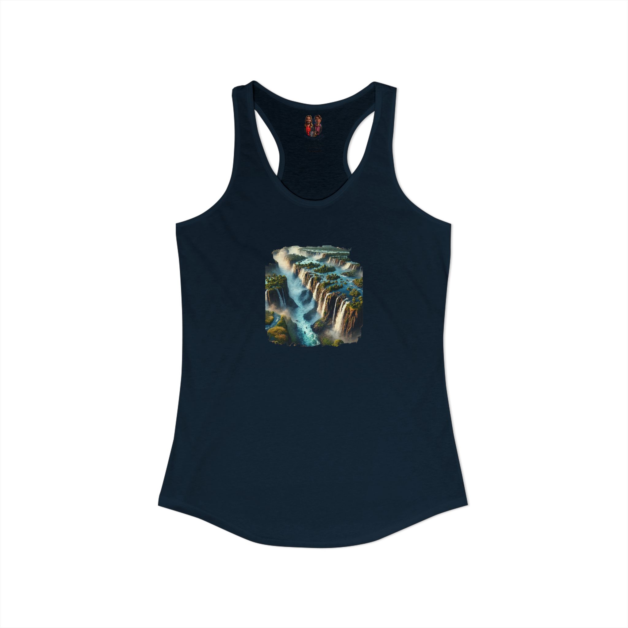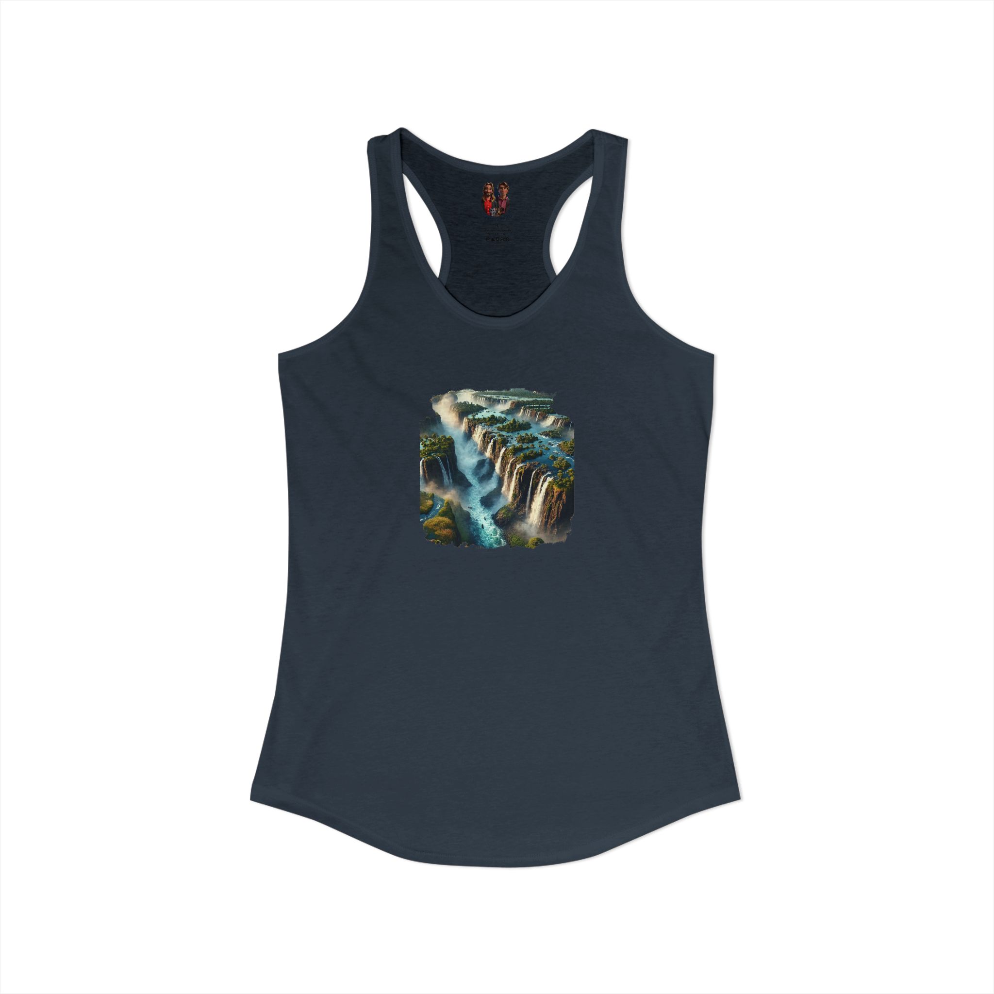 A high-quality print of this slim fit tank-top will turn heads. Bystanders won’t be disappointed – the racerback cut looks good on any woman’s shoulders.