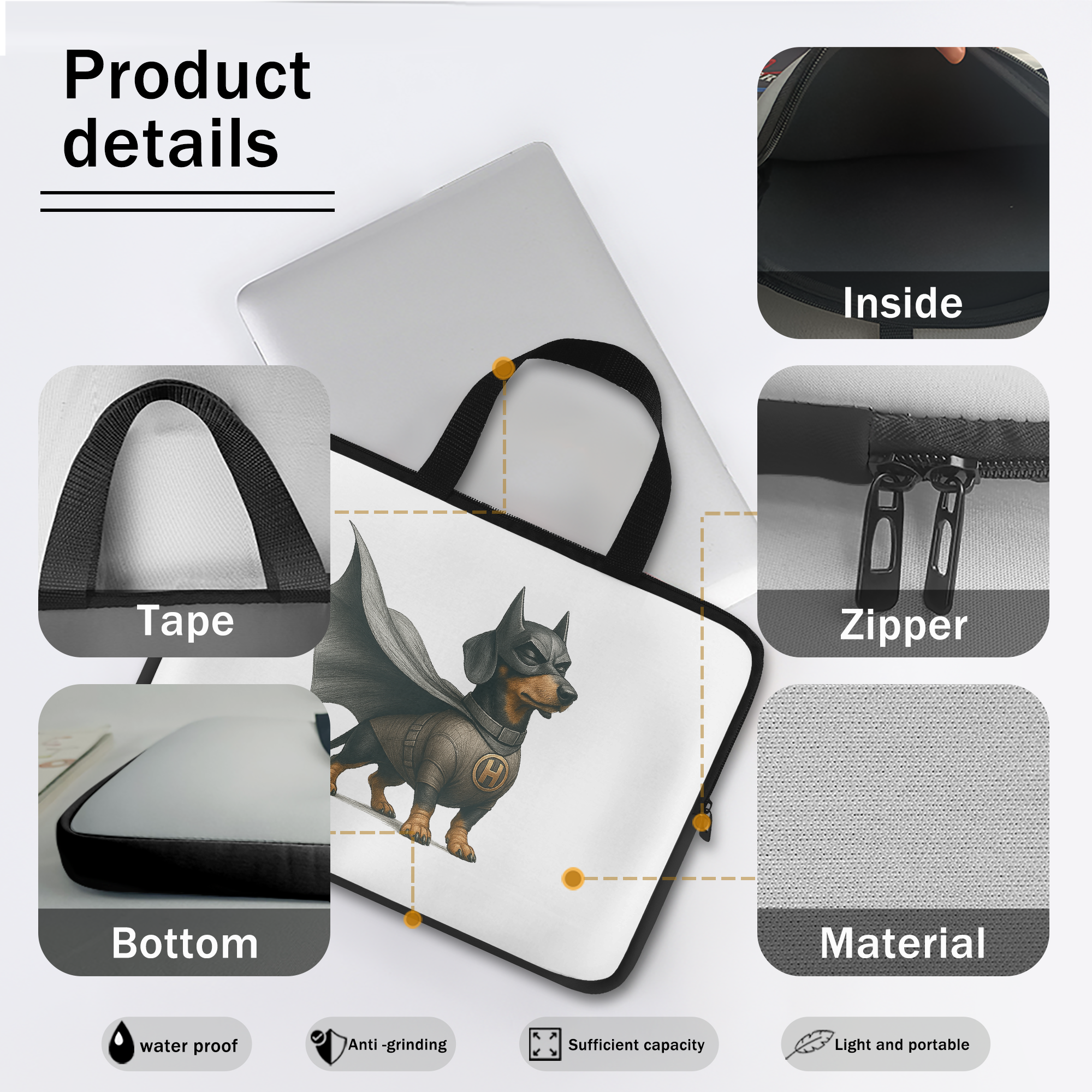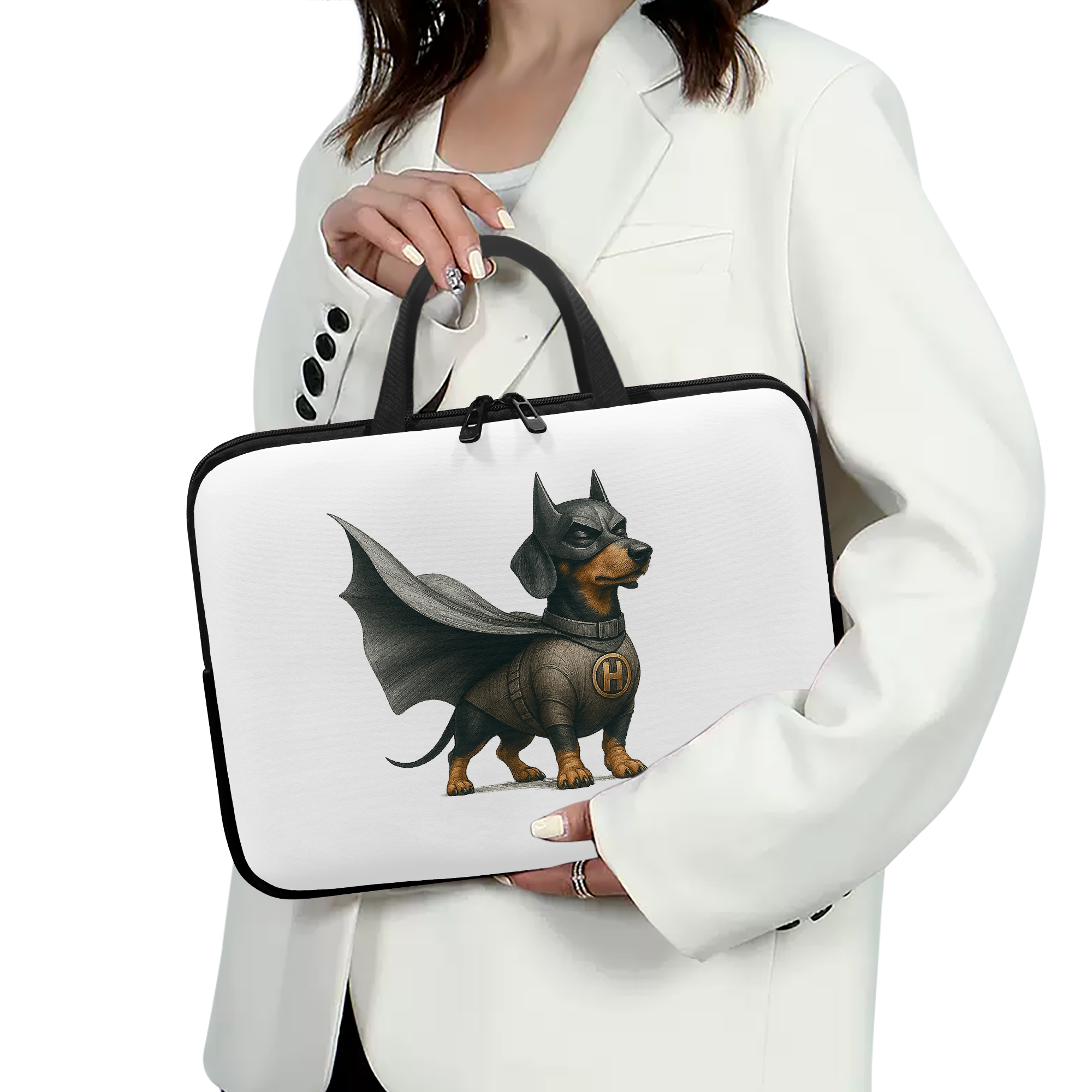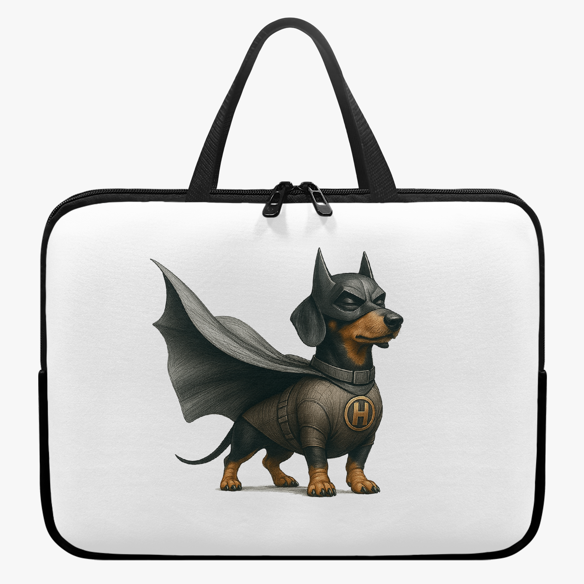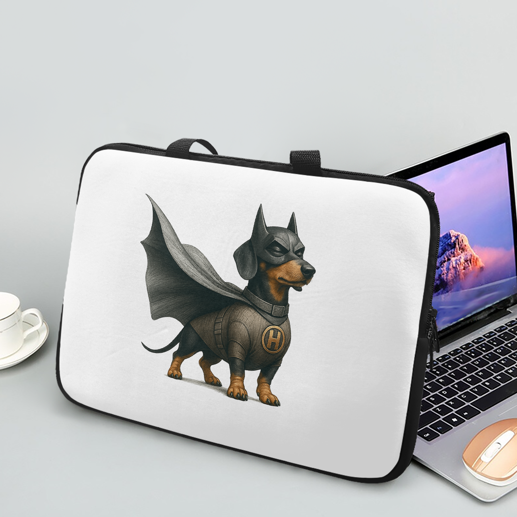 As a fantasy PC accessory and dog hero PC accessory, it features a bold dog super hero design, oversized laptop sleeve protection, and cute dog shirt charm.