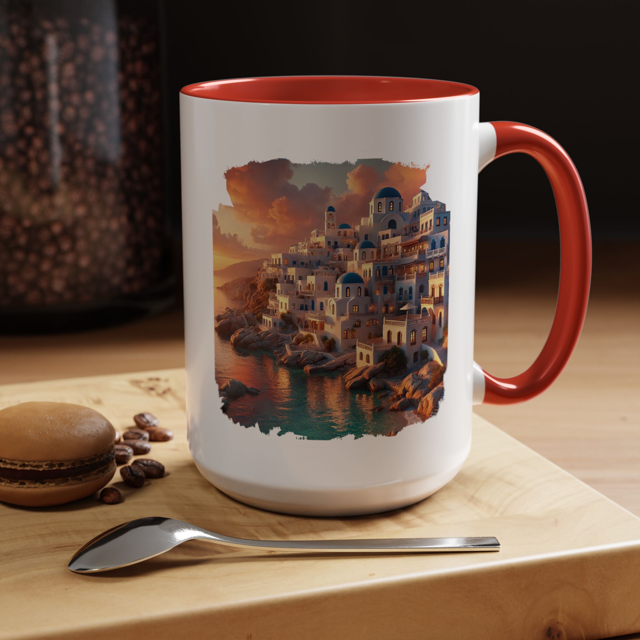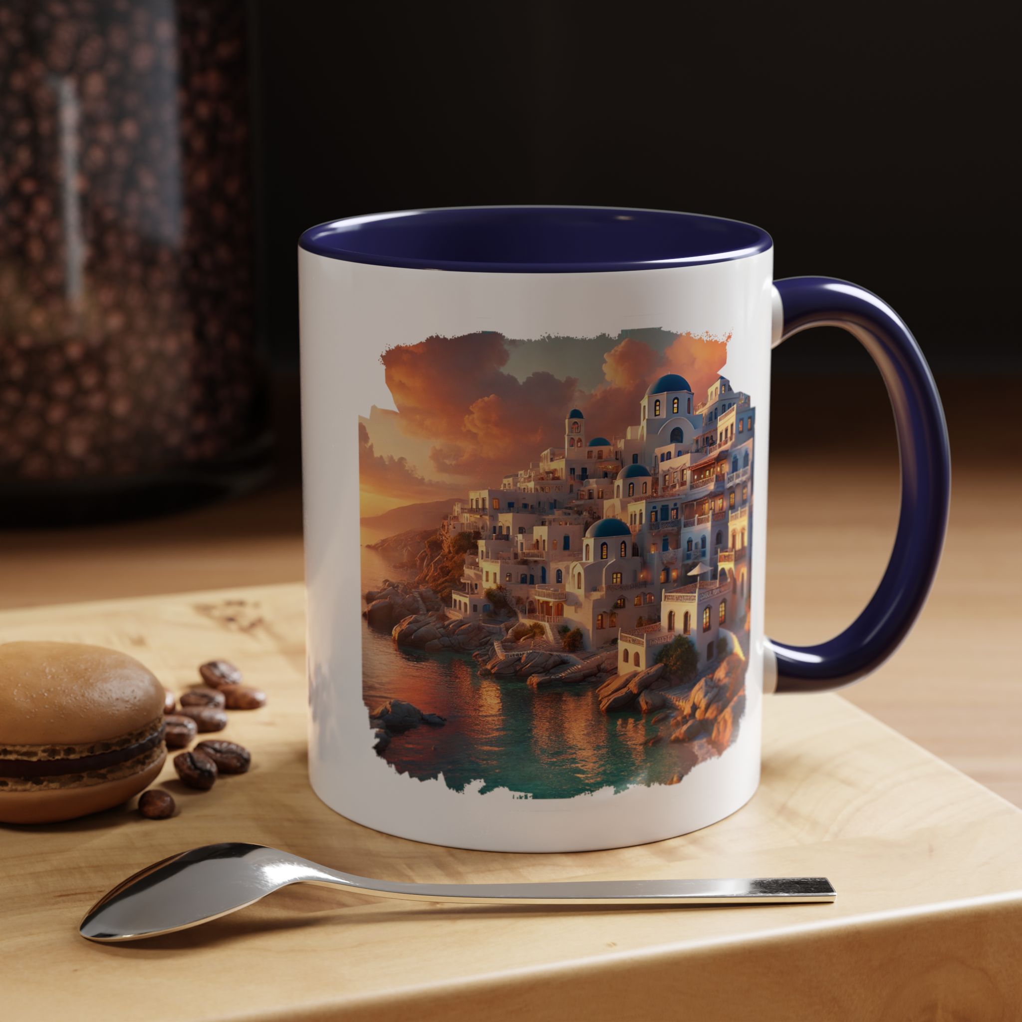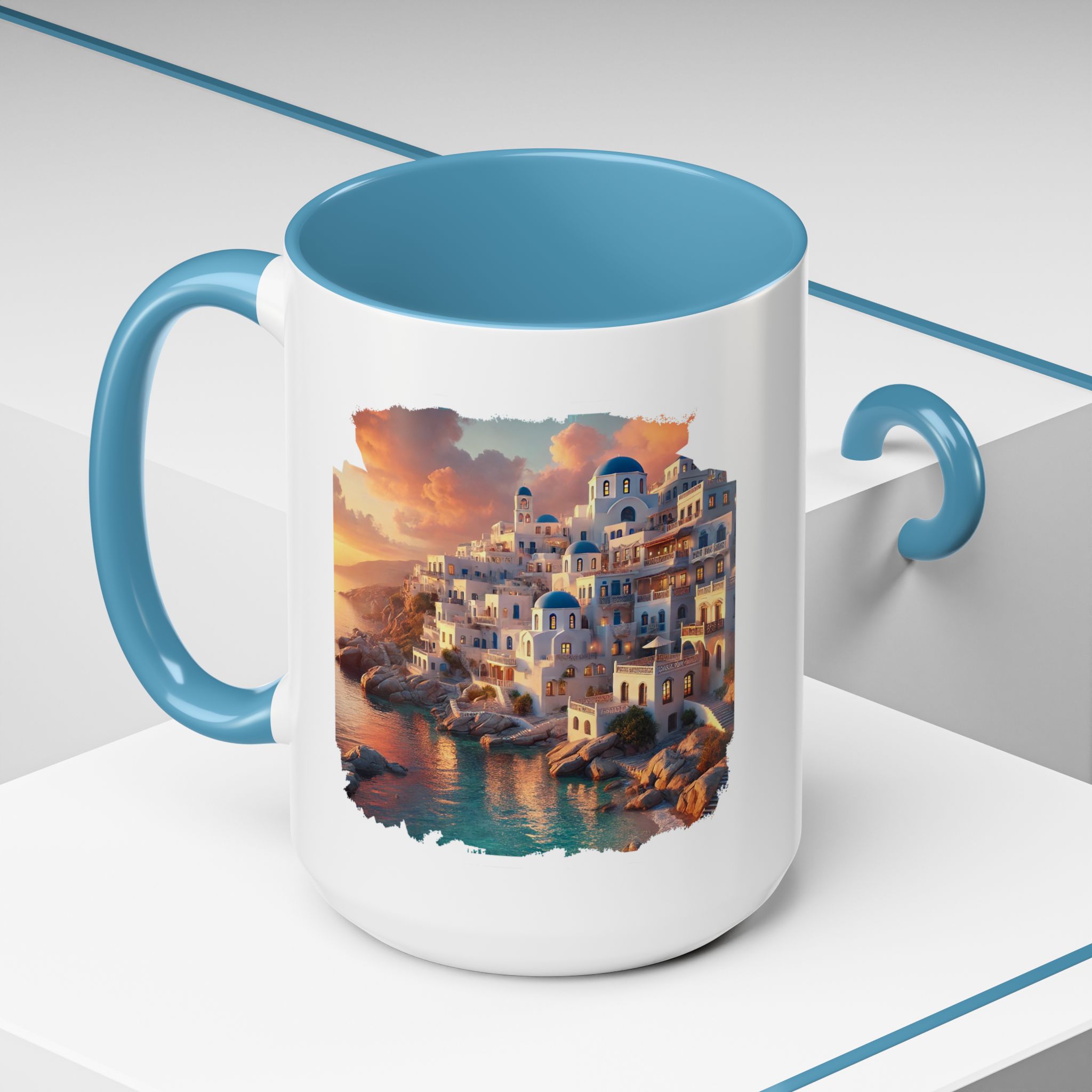 With nods to mug Santorini caldera and mug greece, it reflects a soft modern aesthetic that pairs well with any setting.