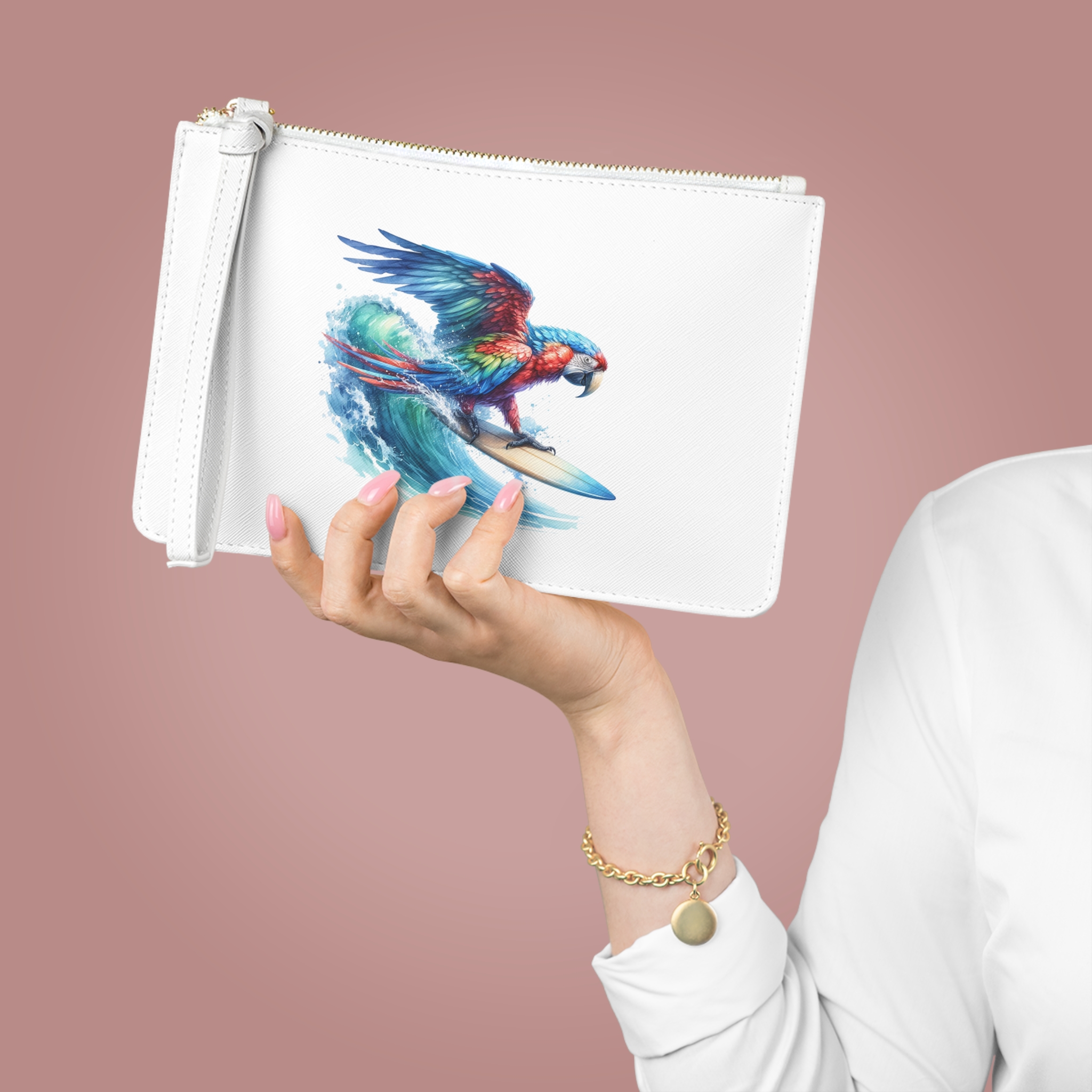 Soyez le premier à laisser votre avis sur “Parrot funny clutch bag surf evening bag boho Bird surfer Clutch bag gift for her free spirit purse cool handbag”