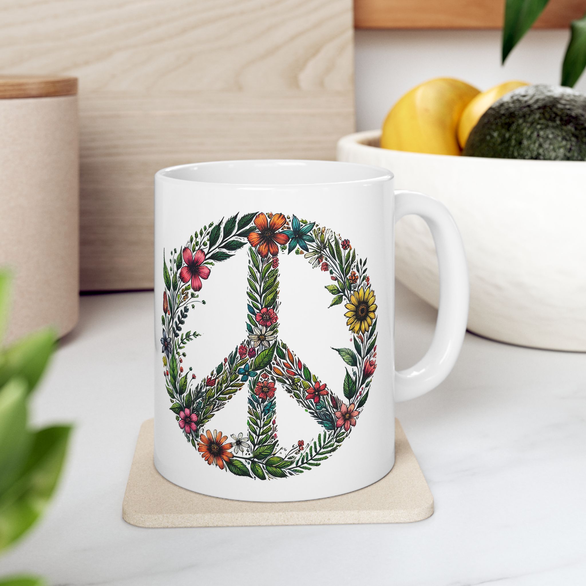 This flower coffee mug will appeal to those who see peace tea mug and peace love cup as part of what defines their personal style.