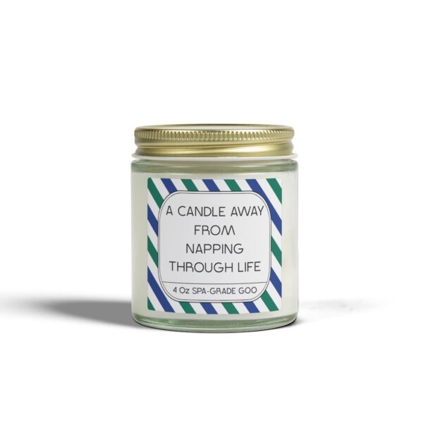 Enjoy this funny candle with the quote = A candle away from napping through life written on it !
