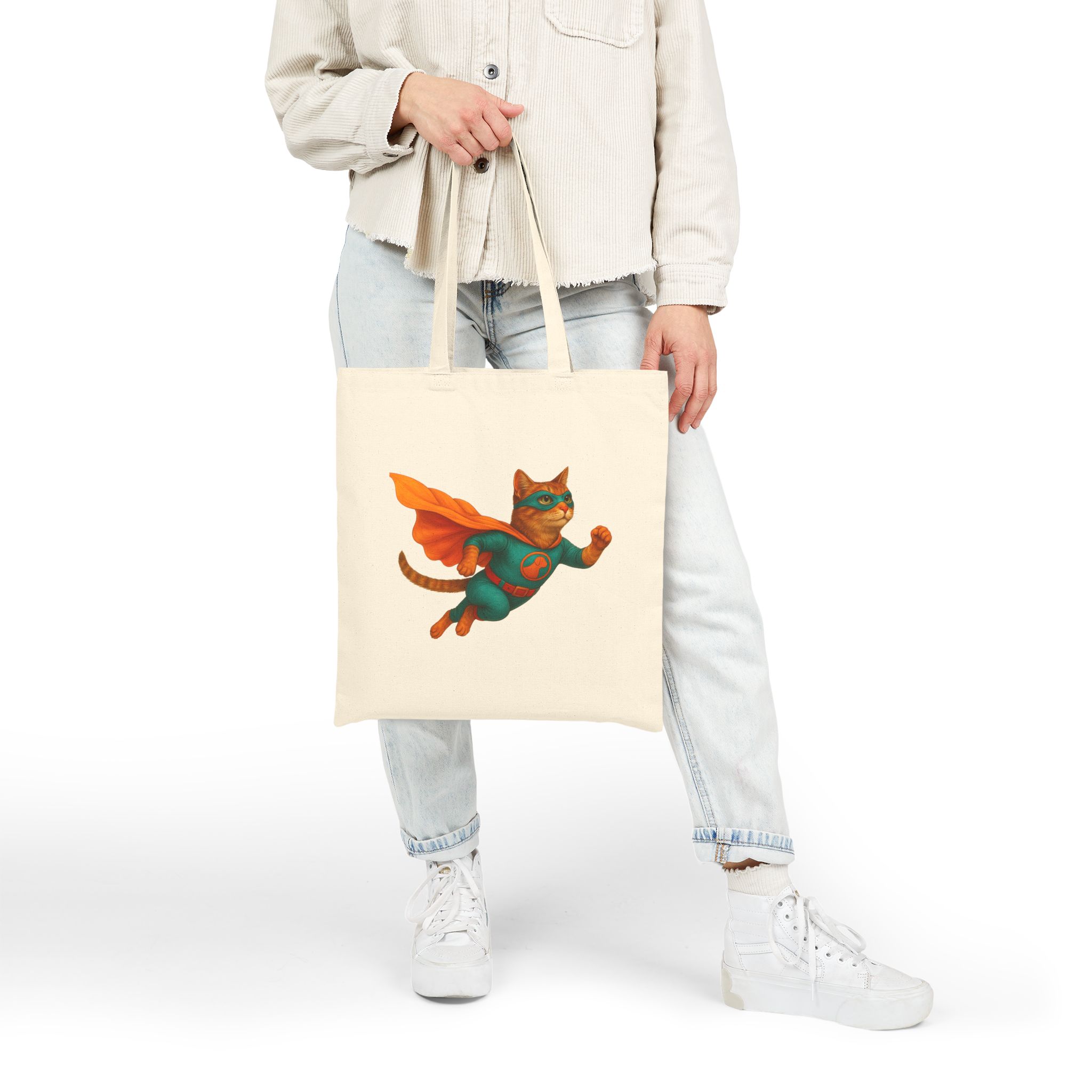 superhero tote bag cat canvas tote bag funny handbag fantasy purse kitten lover cool cat shoulder bag