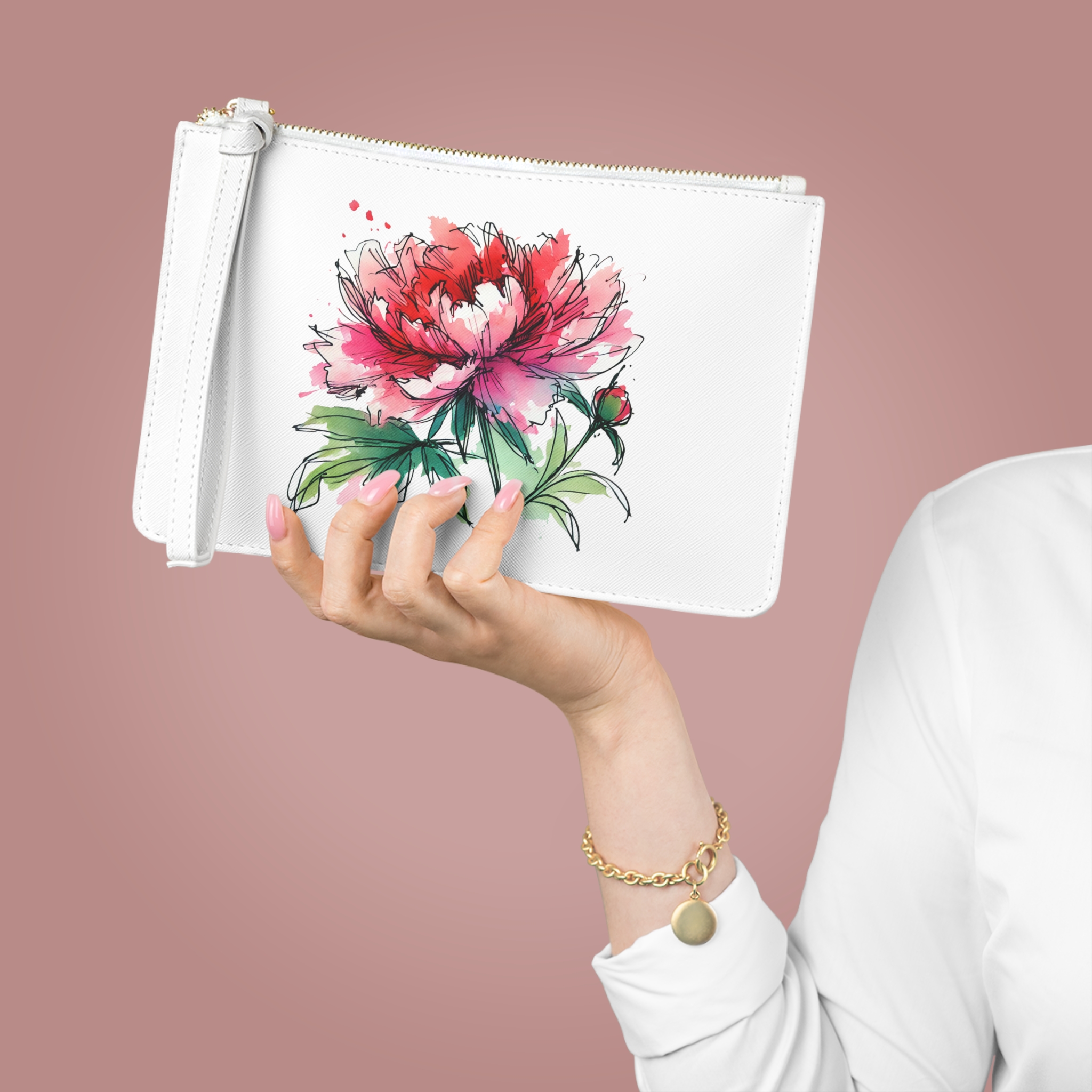 Every detail of this floral graphic pouch contributes to expressing subtle individuality.