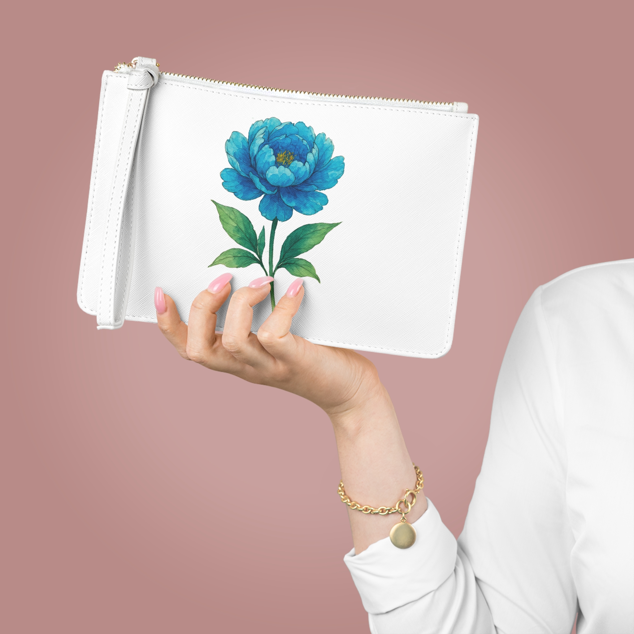 Every detail of this floral pouch contributes to expressing subtle individuality.