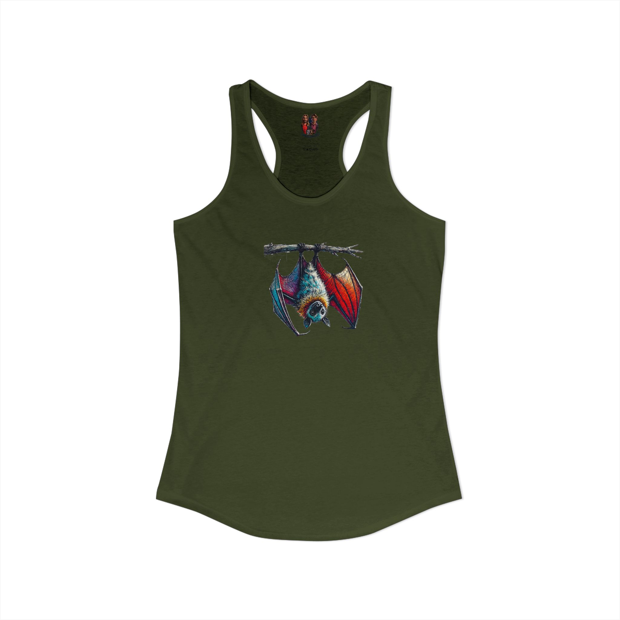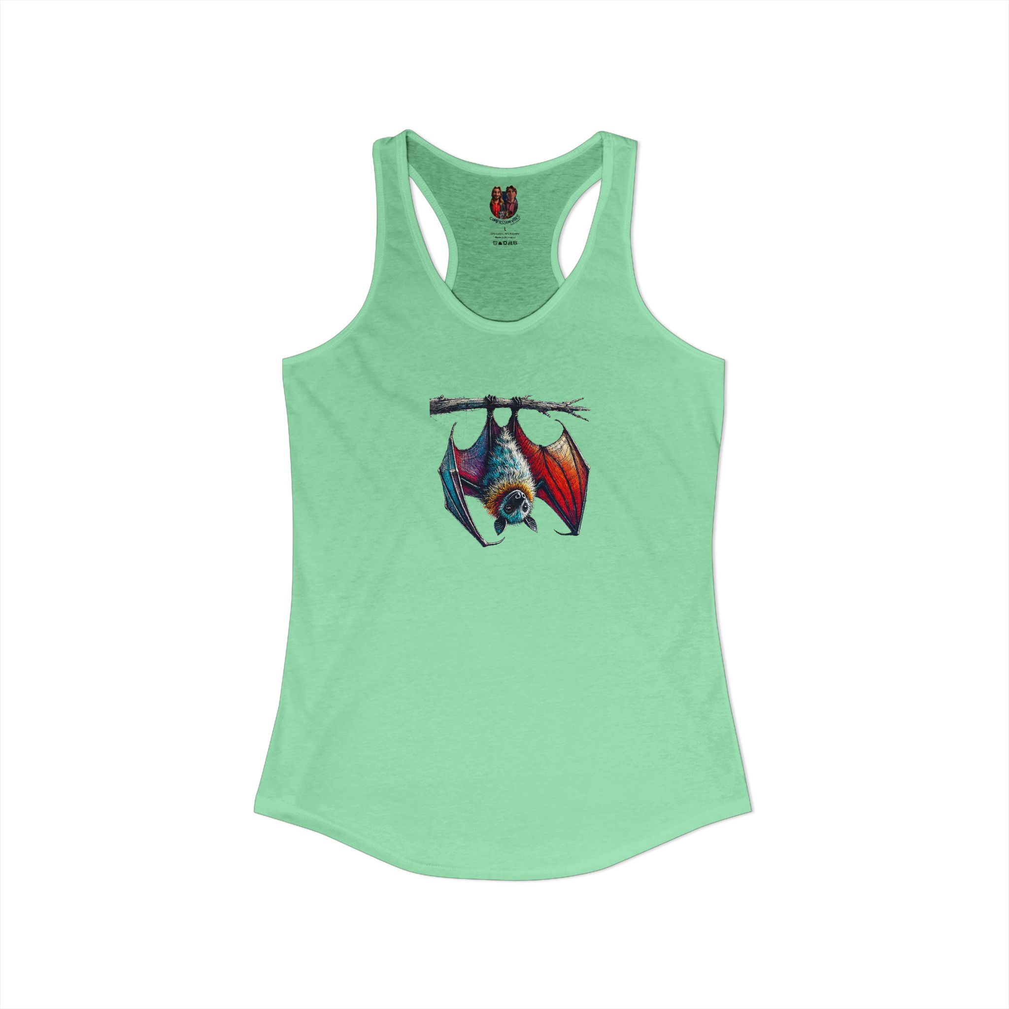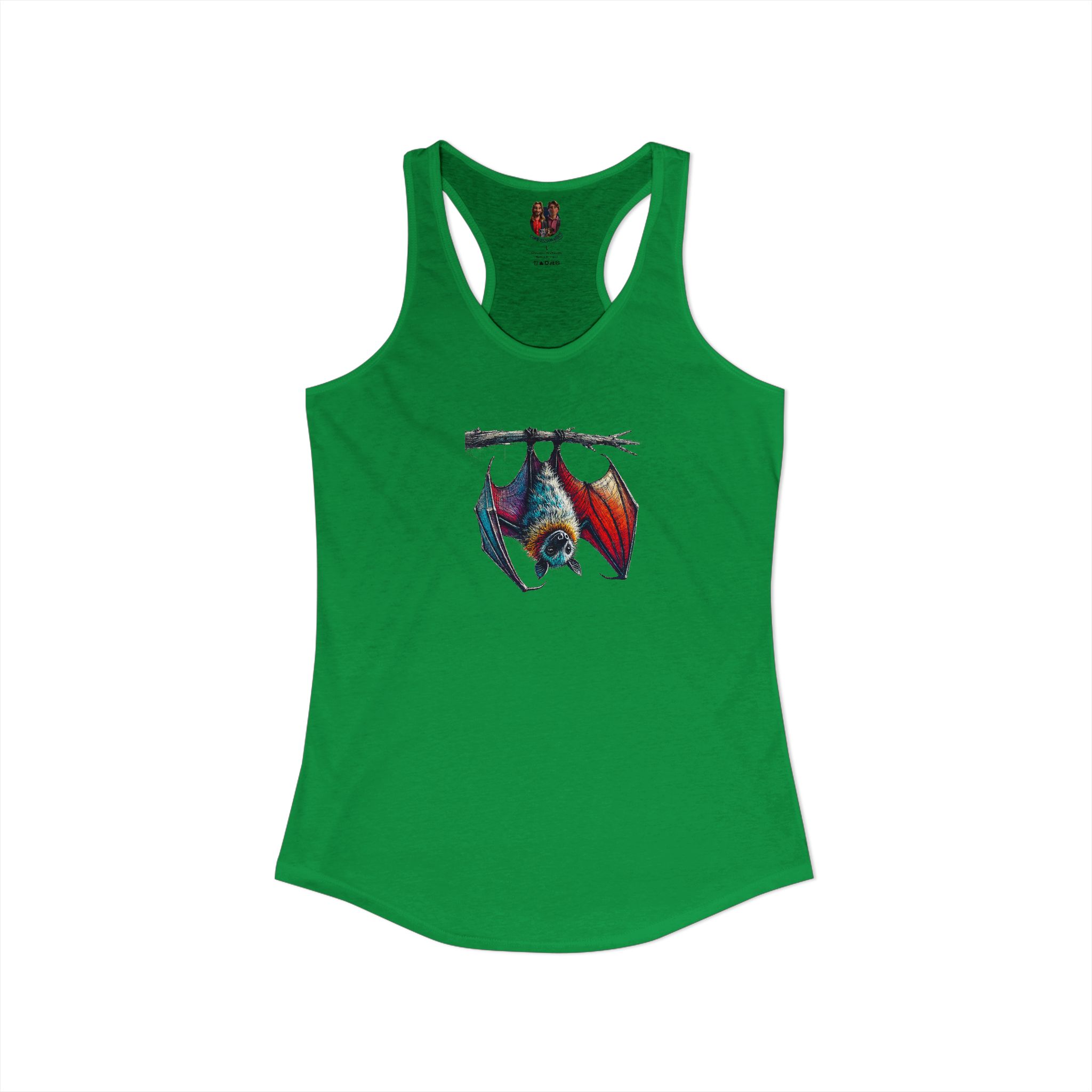 Women bat racerback tank top creative animal print design with an original look