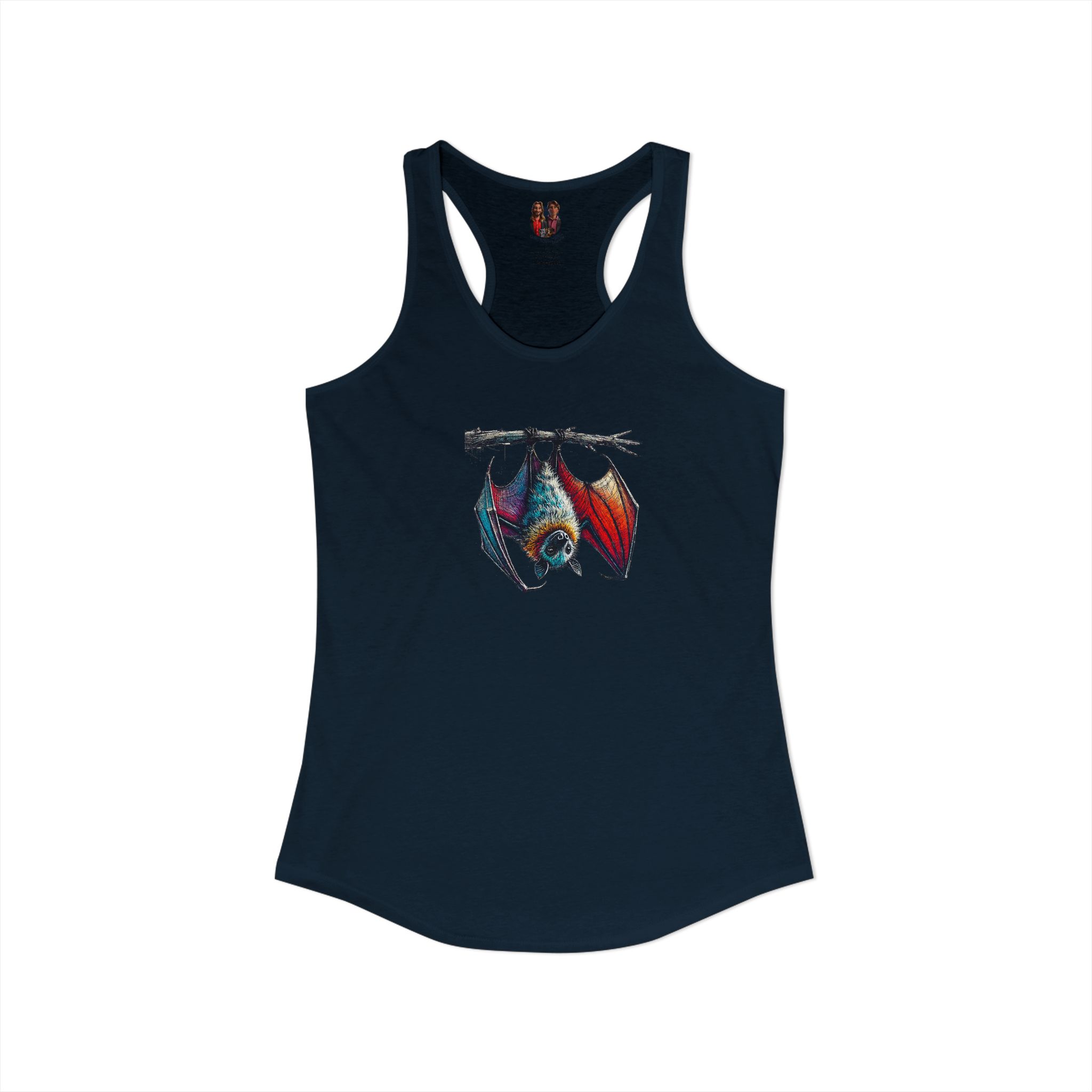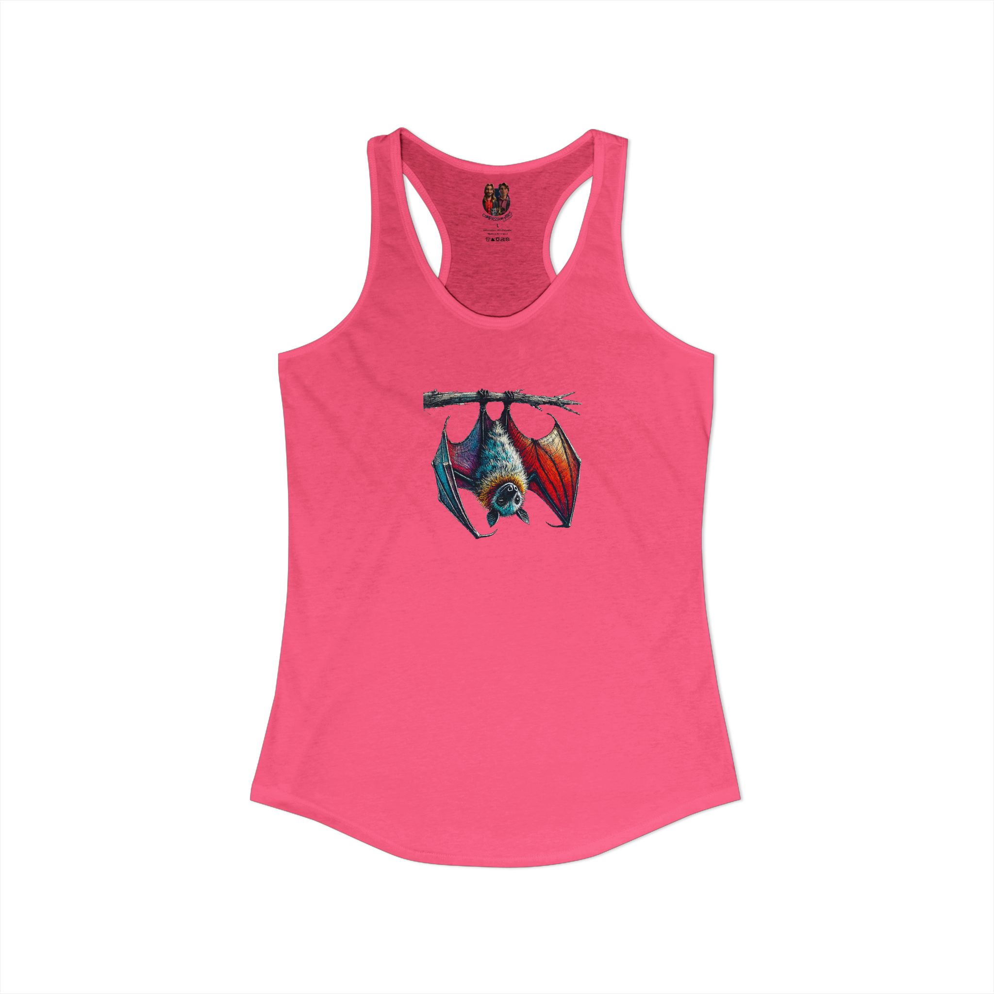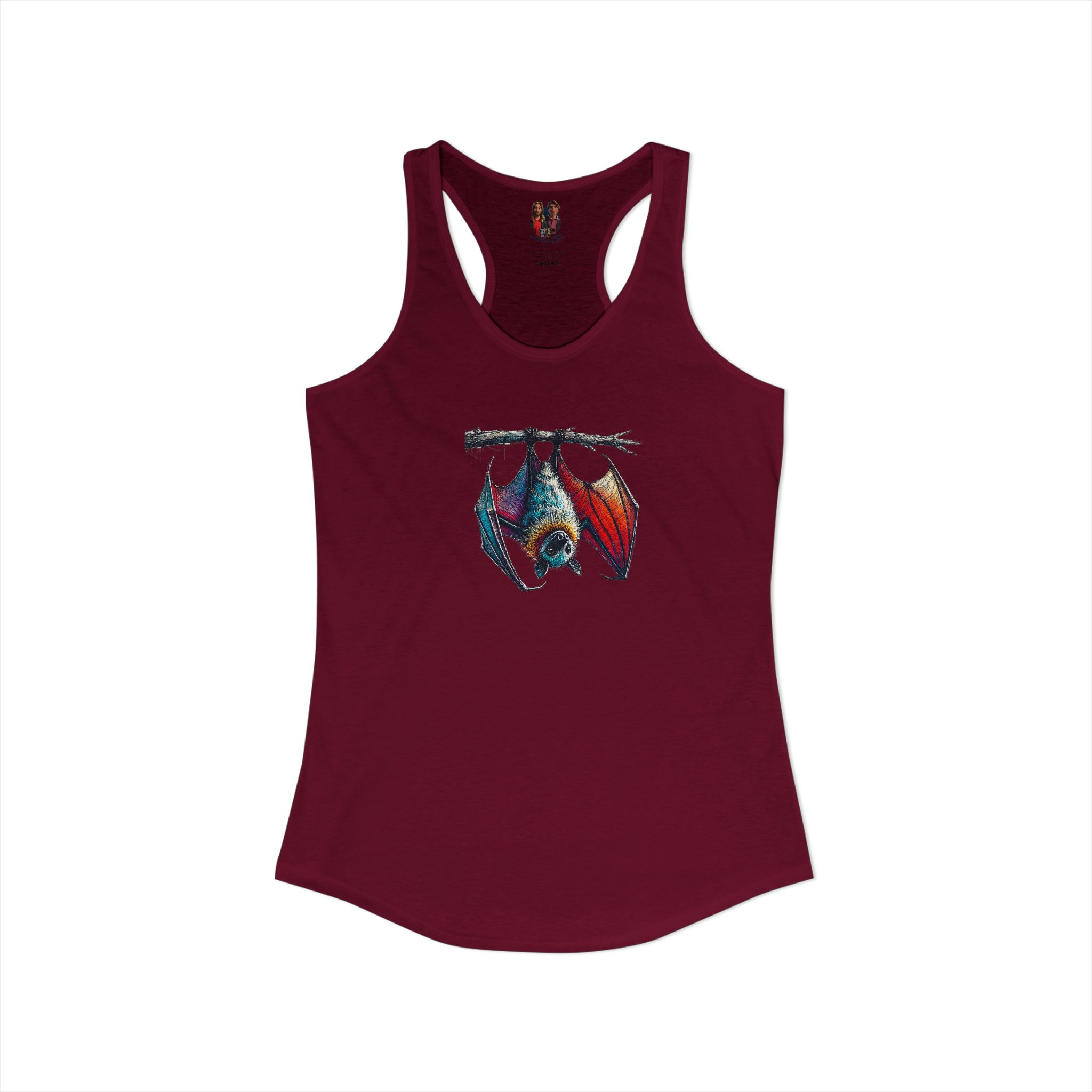 Women bat racerback tank top creative animal print design with an original look